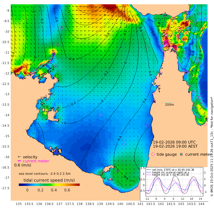 26cm/s -95T +3cm/s rms + 7cm/s -42T. ARA-GOC87 57m 11cm/s -84T +3cm/s rms + 2cm/s -2T. ARA-GOC87 60m 24cm/s -105T +2cm/s rms + 3cm/s 61T. ARA-GOC87 47m -112cm Daru -109cm Bobo Island -32cm Meer Island Barge -58cm Bramble Cay -92cm Unnamed Cay -91cm Pearce Cay -78cm Stephens Island -86cm Merrie England Shoals -111cm Mutacomal Reef -73cm Darnley Island Barge -33cm East Cay -95cm Yorke Island Barge -93cm Rennel Island -96cm Aureed Island -98cm Dungeness Reef -117cm Zagai Island -106cm Yam Island -82cm Dauan Island -94cm Saibai Island -72cm Phipi Reef -112cm Warrior Reef - West -69cm Mabuiag Island Barge -89cm Half Way Island -110cm Coconut Island -100cm Dugong Islet -107cm Poll Island -99cm Kirkcaldie Reef -106cm Suarji Island -114cm Sue Islet 19cm Hawkesbury Island -89cm Alert Patches -95cm Twin Island -4cm Badu Island -102cm St Pauls (Moa Island) -14cm Kubin (Moa Island) -65cm Ince Point -44cm Thursday Island -50cm Nardana Patches -12cm Turtle Head 3cm Round Island 31cm Goods Island 57cm Booby Island 45cm White Rocks Area 40cm Carpentaria -86cm Papou Point 37cm Bampfield Head 60cm Crab Island 52cm Red Wallis Island 17cm Packe Island -114cm Harrington Reef 45cm Herald Camp -33cm Sharp Point -8cm Red Island Point -51cm Possession Island -102cm Alpha Rock -106cm Frederick Point -123cm Wyborn Reef Light -125cm Tetley Island -39cm Triangle Reef -116cm Turtle Head Island -30cm Maclennan Cay -4cm Raine Island -86cm Mcsweeny Reef -73cm Collette Reef -35cm Shadwell Reef -77cm Hannibal Island -57cm Round Point 62cm Vrilya Point -44cm Cape Grenville -38cm Hicks Island -38cm Sir Charles Hardy Island -13cm Harvey Island -29cm Kay Reef -16cm Rocky Island -7cm Chapman Island -8cm Ham Reef -16cm Jubilee Reef -12cm Night Island -7cm Unnamed Reef No. 3 -15cm Morris Island -9cm 1st 3 Mile Opening -11cm Creech Reef -18cm Fife Island -6cm Eden Reef -11cm Stanley Island -17cm Normanby River -11cm Yabooma Island -32cm Hutchison River -14cm Elcho Island -8cm North West Crocodile Island -68cm Cape Wessel -48cm Stevens Island -103cm Guluwuru Island -26cm Hopeful Bay -52cm Auster Point -48cm Two Island Bay -66cm Cadell Strait -192cm Mallison Island -83cm Melville Bay (Gove Harbour) -93cm Truant Island -66cm Cape Arnhem -51cm Cape Grey -27cm Hawk Island -7cm Milner Bay (Groote Eylandt) 6cm Cape Beatrice 22cm West Island 33cm Centre Island 54cm Mornington Island 49cm West Wellesley Islands 58cm Bountiful Island 88cm Albert River Mouth 76cm Sweers Island 97cm Karumba 69cm Nassau River Offshore 64cm Christmas Creek 63cm Archer River 45cm Boyd Point 65cm Weipa (Humbug Point) 52cm Pennefather River 62cm Cullen Point