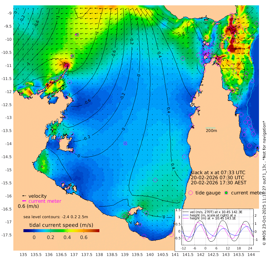34cm/s -84T +3cm/s rms + 7cm/s -42T. ARA-GOC87 57m 6cm/s 179T +3cm/s rms + 2cm/s -2T. ARA-GOC87 60m 37cm/s -96T +2cm/s rms + 3cm/s 61T. ARA-GOC87 47m -99cm Daru -107cm Bobo Island -76cm Meer Island Barge -96cm Bramble Cay -105cm Unnamed Cay -111cm Pearce Cay -104cm Stephens Island -103cm Merrie England Shoals -96cm Mutacomal Reef -96cm Darnley Island Barge -81cm East Cay -97cm Yorke Island Barge -97cm Rennel Island -96cm Aureed Island -87cm Dungeness Reef -56cm Zagai Island -46cm Yam Island -7cm Dauan Island -1cm Saibai Island -25cm Phipi Reef -49cm Warrior Reef - West 2cm Mabuiag Island Barge -93cm Half Way Island -87cm Coconut Island -90cm Dugong Islet -69cm Poll Island -65cm Kirkcaldie Reef -54cm Suarji Island -62cm Sue Islet 33cm Hawkesbury Island -38cm Alert Patches -41cm Twin Island 22cm Badu Island -36cm St Pauls (Moa Island) 11cm Kubin (Moa Island) -13cm Ince Point 1cm Thursday Island -3cm Nardana Patches 12cm Turtle Head 17cm Round Island 34cm Goods Island 62cm Booby Island 46cm White Rocks Area 84cm Carpentaria -32cm Papou Point 37cm Bampfield Head 67cm Crab Island 67cm Red Wallis Island 35cm Packe Island -99cm Harrington Reef 53cm Herald Camp 0cm Sharp Point 17cm Red Island Point -22cm Possession Island -41cm Alpha Rock -66cm Frederick Point -101cm Wyborn Reef Light -92cm Tetley Island -62cm Triangle Reef -117cm Turtle Head Island -68cm Maclennan Cay -56cm Raine Island -98cm Mcsweeny Reef -90cm Collette Reef -68cm Shadwell Reef -102cm Hannibal Island -98cm Round Point 80cm Vrilya Point -81cm Cape Grenville -83cm Hicks Island -74cm Sir Charles Hardy Island -25cm Harvey Island -74cm Kay Reef -67cm Rocky Island -58cm Chapman Island -53cm Ham Reef -62cm Jubilee Reef -56cm Night Island -52cm Unnamed Reef No. 3 -70cm Morris Island -64cm 1st 3 Mile Opening -62cm Creech Reef -69cm Fife Island -77cm Eden Reef -67cm Stanley Island -81cm Normanby River -169cm Yabooma Island -209cm Hutchison River -166cm Elcho Island -154cm North West Crocodile Island -133cm Cape Wessel -168cm Stevens Island -151cm Guluwuru Island -146cm Hopeful Bay -148cm Auster Point -143cm Two Island Bay -195cm Cadell Strait -131cm Mallison Island -140cm Melville Bay (Gove Harbour) -147cm Truant Island -96cm Cape Arnhem -77cm Cape Grey -54cm Hawk Island -22cm Milner Bay (Groote Eylandt) -6cm Cape Beatrice 34cm West Island 41cm Centre Island 29cm Mornington Island 28cm West Wellesley Islands 2cm Bountiful Island 14cm Albert River Mouth -11cm Sweers Island 21cm Karumba 41cm Nassau River Offshore 48cm Christmas Creek 49cm Archer River 49cm Boyd Point 50cm Weipa (Humbug Point) 57cm Pennefather River 77cm Cullen Point