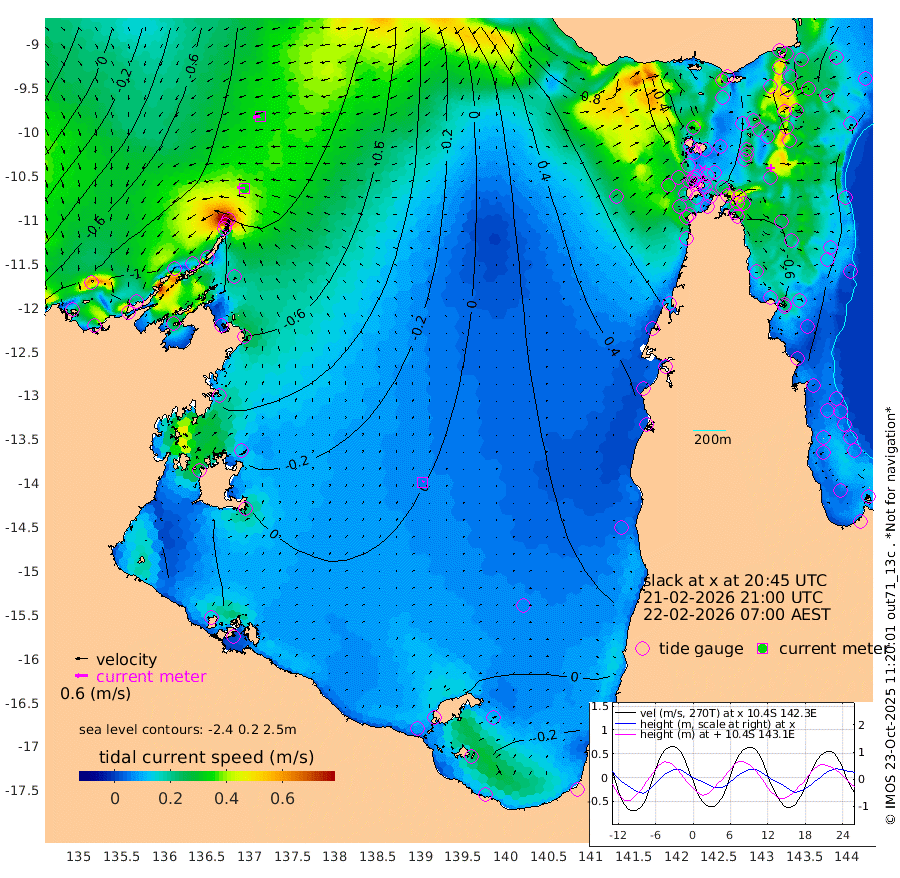 35cm/s -85T +3cm/s rms + 7cm/s -42T. ARA-GOC87 57m 6cm/s 40T +3cm/s rms + 2cm/s -2T. ARA-GOC87 60m 34cm/s -99T +2cm/s rms + 3cm/s 61T. ARA-GOC87 47m -74cm Daru -76cm Bobo Island -39cm Meer Island Barge -53cm Bramble Cay -59cm Unnamed Cay -71cm Pearce Cay -63cm Stephens Island -56cm Merrie England Shoals -61cm Mutacomal Reef -57cm Darnley Island Barge -41cm East Cay -61cm Yorke Island Barge -62cm Rennel Island -62cm Aureed Island -61cm Dungeness Reef -57cm Zagai Island -53cm Yam Island -45cm Dauan Island -30cm Saibai Island -47cm Phipi Reef -65cm Warrior Reef - West 0cm Mabuiag Island Barge -63cm Half Way Island -59cm Coconut Island -60cm Dugong Islet -53cm Poll Island -54cm Kirkcaldie Reef -26cm Suarji Island -44cm Sue Islet 44cm Hawkesbury Island -14cm Alert Patches -27cm Twin Island 26cm Badu Island -30cm St Pauls (Moa Island) 13cm Kubin (Moa Island) -5cm Ince Point 10cm Thursday Island 5cm Nardana Patches 20cm Turtle Head 36cm Round Island 48cm Goods Island 77cm Booby Island 70cm White Rocks Area 102cm Carpentaria -27cm Papou Point 90cm Bampfield Head 56cm Crab Island 67cm Red Wallis Island 30cm Packe Island -61cm Harrington Reef 58cm Herald Camp -8cm Sharp Point 17cm Red Island Point 5cm Possession Island -24cm Alpha Rock -44cm Frederick Point -62cm Wyborn Reef Light -59cm Tetley Island -32cm Triangle Reef -67cm Turtle Head Island -32cm Maclennan Cay -24cm Raine Island -56cm Mcsweeny Reef -48cm Collette Reef -32cm Shadwell Reef -54cm Hannibal Island -51cm Round Point 66cm Vrilya Point -35cm Cape Grenville -43cm Hicks Island -34cm Sir Charles Hardy Island -14cm Harvey Island -26cm Kay Reef -26cm Rocky Island -18cm Chapman Island -17cm Ham Reef -26cm Jubilee Reef -27cm Night Island -17cm Unnamed Reef No. 3 -28cm Morris Island -21cm 1st 3 Mile Opening -24cm Creech Reef -39cm Fife Island -31cm Eden Reef -24cm Stanley Island -34cm Normanby River -108cm Yabooma Island -141cm Hutchison River -111cm Elcho Island -107cm North West Crocodile Island -92cm Cape Wessel -119cm Stevens Island -126cm Guluwuru Island -93cm Hopeful Bay -93cm Auster Point -108cm Two Island Bay -174cm Cadell Strait -175cm Mallison Island -107cm Melville Bay (Gove Harbour) -111cm Truant Island -76cm Cape Arnhem -44cm Cape Grey -31cm Hawk Island 2cm Milner Bay (Groote Eylandt) 4cm Cape Beatrice 44cm West Island 51cm Centre Island 1cm Mornington Island 9cm West Wellesley Islands 8cm Bountiful Island -24cm Albert River Mouth -6cm Sweers Island -20cm Karumba -4cm Nassau River Offshore 4cm Christmas Creek 29cm Archer River 38cm Boyd Point 40cm Weipa (Humbug Point) 40cm Pennefather River 62cm Cullen Point