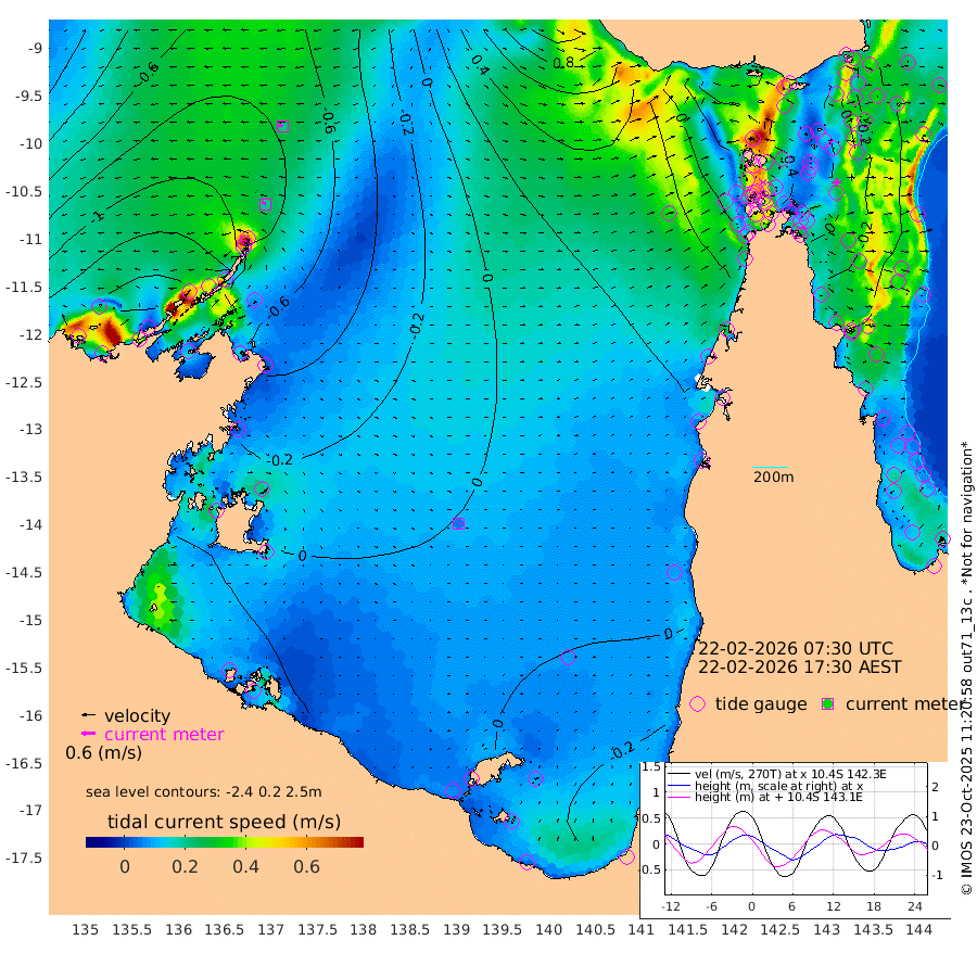 19cm/s -57T +3cm/s rms + 7cm/s -42T. ARA-GOC87 57m 6cm/s 83T +3cm/s rms + 2cm/s -2T. ARA-GOC87 60m 20cm/s -73T +2cm/s rms + 3cm/s 61T. ARA-GOC87 47m -38cm Daru -46cm Bobo Island -49cm Meer Island Barge -51cm Bramble Cay -45cm Unnamed Cay -61cm Pearce Cay -52cm Stephens Island -40cm Merrie England Shoals -31cm Mutacomal Reef -46cm Darnley Island Barge -52cm East Cay -40cm Yorke Island Barge -45cm Rennel Island -47cm Aureed Island -43cm Dungeness Reef -18cm Zagai Island -11cm Yam Island -17cm Dauan Island 5cm Saibai Island -33cm Phipi Reef -21cm Warrior Reef - West -5cm Mabuiag Island Barge -38cm Half Way Island -38cm Coconut Island -34cm Dugong Islet -28cm Poll Island -19cm Kirkcaldie Reef -34cm Suarji Island -13cm Sue Islet -26cm Hawkesbury Island -23cm Alert Patches -19cm Twin Island -33cm Badu Island -17cm St Pauls (Moa Island) -29cm Kubin (Moa Island) -17cm Ince Point -17cm Thursday Island -18cm Nardana Patches -31cm Turtle Head -32cm Round Island -37cm Goods Island -25cm Booby Island -32cm White Rocks Area 21cm Carpentaria -13cm Papou Point -43cm Bampfield Head -7cm Crab Island -14cm Red Wallis Island -25cm Packe Island -38cm Harrington Reef -22cm Herald Camp 11cm Sharp Point -13cm Red Island Point -30cm Possession Island -6cm Alpha Rock -27cm Frederick Point -38cm Wyborn Reef Light -32cm Tetley Island -42cm Triangle Reef -53cm Turtle Head Island -45cm Maclennan Cay -48cm Raine Island -46cm Mcsweeny Reef -42cm Collette Reef -42cm Shadwell Reef -48cm Hannibal Island -56cm Round Point 14cm Vrilya Point -43cm Cape Grenville -52cm Hicks Island -47cm Sir Charles Hardy Island -14cm Harvey Island -43cm Kay Reef -50cm Rocky Island -50cm Chapman Island -41cm Ham Reef -45cm Jubilee Reef -43cm Night Island -42cm Unnamed Reef No. 3 -52cm Morris Island -54cm 1st 3 Mile Opening -48cm Creech Reef -53cm Fife Island -61cm Eden Reef -46cm Stanley Island -54cm Normanby River -170cm Yabooma Island -204cm Hutchison River -167cm Elcho Island -154cm North West Crocodile Island -98cm Cape Wessel -143cm Stevens Island -92cm Guluwuru Island -134cm Hopeful Bay -122cm Auster Point -114cm Two Island Bay -159cm Cadell Strait 4cm Mallison Island -98cm Melville Bay (Gove Harbour) -101cm Truant Island -64cm Cape Arnhem -44cm Cape Grey -34cm Hawk Island -3cm Milner Bay (Groote Eylandt) 5cm Cape Beatrice 44cm West Island 46cm Centre Island 16cm Mornington Island 19cm West Wellesley Islands -16cm Bountiful Island -12cm Albert River Mouth -28cm Sweers Island -11cm Karumba 6cm Nassau River Offshore 4cm Christmas Creek -5cm Archer River -2cm Boyd Point -16cm Weipa (Humbug Point) 9cm Pennefather River 8cm Cullen Point