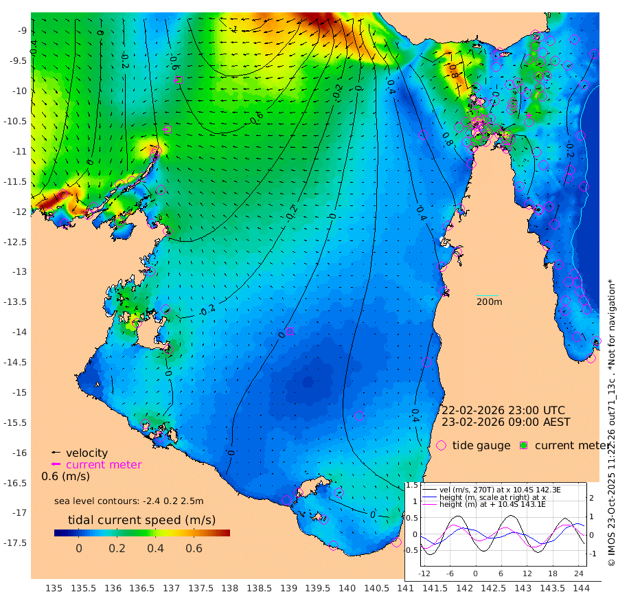 37cm/s -91T +3cm/s rms + 7cm/s -42T. ARA-GOC87 57m 4cm/s -102T +3cm/s rms + 2cm/s -2T. ARA-GOC87 60m 35cm/s -103T +2cm/s rms + 3cm/s 61T. ARA-GOC87 47m -31cm Daru -33cm Bobo Island -14cm Meer Island Barge -16cm Bramble Cay -18cm Unnamed Cay -21cm Pearce Cay -22cm Stephens Island -18cm Merrie England Shoals -18cm Mutacomal Reef -27cm Darnley Island Barge -9cm East Cay -28cm Yorke Island Barge -15cm Rennel Island -23cm Aureed Island -14cm Dungeness Reef -23cm Zagai Island -12cm Yam Island -1cm Dauan Island -5cm Saibai Island 3cm Phipi Reef -21cm Warrior Reef - West 32cm Mabuiag Island Barge -22cm Half Way Island -17cm Coconut Island -16cm Dugong Islet -9cm Poll Island -13cm Kirkcaldie Reef 22cm Suarji Island -14cm Sue Islet 99cm Hawkesbury Island 29cm Alert Patches 16cm Twin Island 79cm Badu Island 13cm St Pauls (Moa Island) 66cm Kubin (Moa Island) 37cm Ince Point 52cm Thursday Island 48cm Nardana Patches 72cm Turtle Head 85cm Round Island 101cm Goods Island 118cm Booby Island 122cm White Rocks Area 95cm Carpentaria 10cm Papou Point 130cm Bampfield Head 85cm Crab Island 109cm Red Wallis Island 83cm Packe Island -14cm Harrington Reef 106cm Herald Camp -4cm Sharp Point 59cm Red Island Point 46cm Possession Island 9cm Alpha Rock 1cm Frederick Point -18cm Wyborn Reef Light -16cm Tetley Island -5cm Triangle Reef -19cm Turtle Head Island -3cm Maclennan Cay 0cm Raine Island -18cm Mcsweeny Reef -16cm Collette Reef -8cm Shadwell Reef -20cm Hannibal Island -10cm Round Point 75cm Vrilya Point -5cm Cape Grenville -9cm Hicks Island -3cm Sir Charles Hardy Island -4cm Harvey Island 0cm Kay Reef 1cm Rocky Island 8cm Chapman Island 3cm Ham Reef -4cm Jubilee Reef -4cm Night Island 4cm Unnamed Reef No. 3 0cm Morris Island 3cm 1st 3 Mile Opening -1cm Creech Reef -8cm Fife Island -3cm Eden Reef 0cm Stanley Island -3cm Normanby River 2cm Yabooma Island -16cm Hutchison River -8cm Elcho Island -4cm North West Crocodile Island -46cm Cape Wessel -35cm Stevens Island -94cm Guluwuru Island -18cm Hopeful Bay -32cm Auster Point -48cm Two Island Bay -84cm Cadell Strait -228cm Mallison Island -68cm Melville Bay (Gove Harbour) -74cm Truant Island -57cm Cape Arnhem -34cm Cape Grey -23cm Hawk Island -9cm Milner Bay (Groote Eylandt) -2cm Cape Beatrice 17cm West Island 18cm Centre Island 3cm Mornington Island 12cm West Wellesley Islands 30cm Bountiful Island 5cm Albert River Mouth 11cm Sweers Island 12cm Karumba 15cm Nassau River Offshore 24cm Christmas Creek 47cm Archer River 51cm Boyd Point 66cm Weipa (Humbug Point) 43cm Pennefather River 75cm Cullen Point