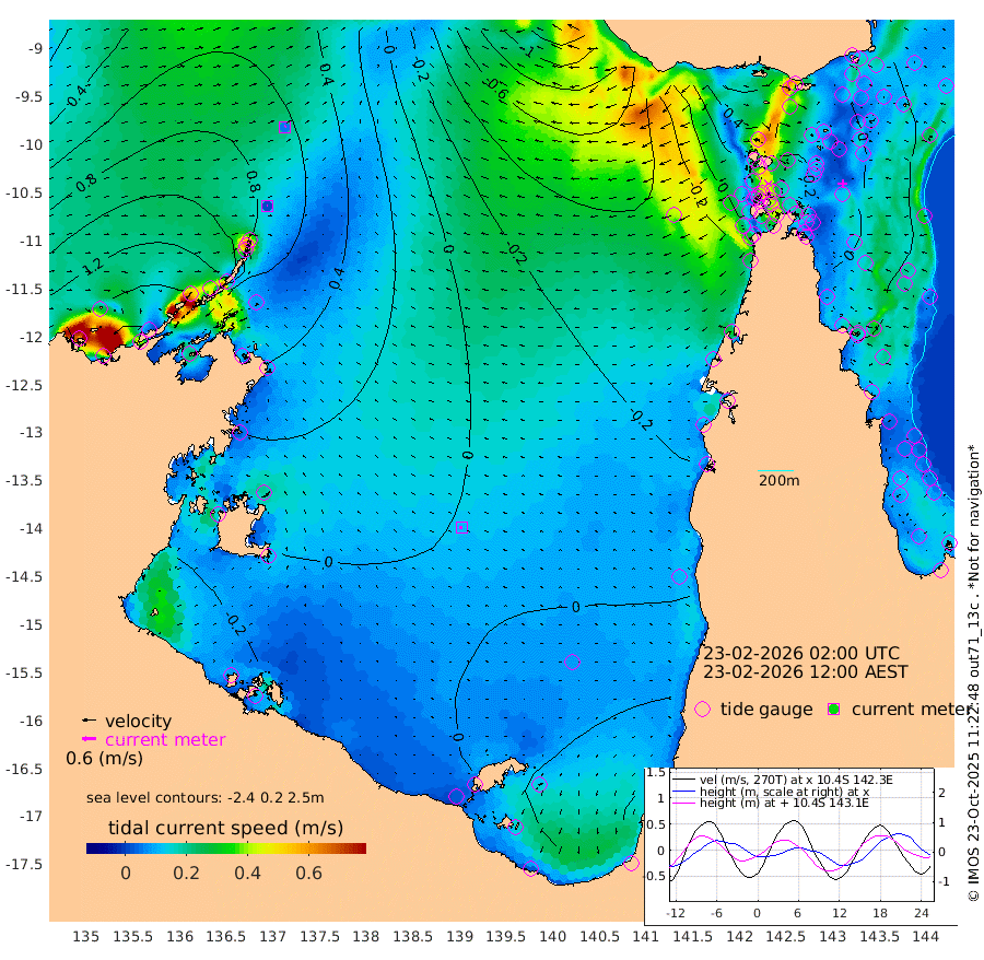 1cm/s -114T +3cm/s rms + 7cm/s -42T. ARA-GOC87 57m 11cm/s -106T +3cm/s rms + 2cm/s -2T. ARA-GOC87 60m 5cm/s 54T +2cm/s rms + 3cm/s 61T. ARA-GOC87 47m 22cm Daru 27cm Bobo Island 21cm Meer Island Barge 23cm Bramble Cay 19cm Unnamed Cay 34cm Pearce Cay 24cm Stephens Island 9cm Merrie England Shoals 13cm Mutacomal Reef 19cm Darnley Island Barge 27cm East Cay 19cm Yorke Island Barge 26cm Rennel Island 26cm Aureed Island 28cm Dungeness Reef 24cm Zagai Island 25cm Yam Island 47cm Dauan Island 30cm Saibai Island 46cm Phipi Reef 36cm Warrior Reef - West 22cm Mabuiag Island Barge 15cm Half Way Island 18cm Coconut Island 20cm Dugong Islet 22cm Poll Island 13cm Kirkcaldie Reef 31cm Suarji Island 12cm Sue Islet 32cm Hawkesbury Island 15cm Alert Patches 16cm Twin Island 32cm Badu Island 19cm St Pauls (Moa Island) 31cm Kubin (Moa Island) 17cm Ince Point 14cm Thursday Island 16cm Nardana Patches 26cm Turtle Head 29cm Round Island 28cm Goods Island 10cm Booby Island 21cm White Rocks Area -38cm Carpentaria 18cm Papou Point 20cm Bampfield Head -6cm Crab Island 7cm Red Wallis Island 20cm Packe Island 17cm Harrington Reef 27cm Herald Camp -5cm Sharp Point 19cm Red Island Point 21cm Possession Island 7cm Alpha Rock 17cm Frederick Point 18cm Wyborn Reef Light 17cm Tetley Island 22cm Triangle Reef 20cm Turtle Head Island 24cm Maclennan Cay 22cm Raine Island 19cm Mcsweeny Reef 15cm Collette Reef 15cm Shadwell Reef 15cm Hannibal Island 25cm Round Point -34cm Vrilya Point 15cm Cape Grenville 26cm Hicks Island 30cm Sir Charles Hardy Island 6cm Harvey Island 14cm Kay Reef 25cm Rocky Island 24cm Chapman Island 20cm Ham Reef 20cm Jubilee Reef 16cm Night Island 18cm Unnamed Reef No. 3 24cm Morris Island 22cm 1st 3 Mile Opening 20cm Creech Reef 26cm Fife Island 27cm Eden Reef 16cm Stanley Island 26cm Normanby River 172cm Yabooma Island 203cm Hutchison River 167cm Elcho Island 164cm North West Crocodile Island 96cm Cape Wessel 135cm Stevens Island 84cm Guluwuru Island 126cm Hopeful Bay 111cm Auster Point 113cm Two Island Bay 156cm Cadell Strait -35cm Mallison Island 86cm Melville Bay (Gove Harbour) 87cm Truant Island 52cm Cape Arnhem 39cm Cape Grey 30cm Hawk Island 0cm Milner Bay (Groote Eylandt) 0cm Cape Beatrice -34cm West Island -43cm Centre Island 0cm Mornington Island -1cm West Wellesley Islands 44cm Bountiful Island 48cm Albert River Mouth 42cm Sweers Island 45cm Karumba 6cm Nassau River Offshore 2cm Christmas Creek -4cm Archer River -4cm Boyd Point 10cm Weipa (Humbug Point) -36cm Pennefather River -17cm Cullen Point