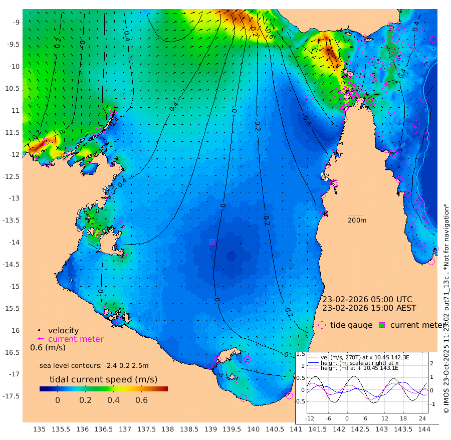 18cm/s 47T +3cm/s rms + 7cm/s -42T. ARA-GOC87 57m 4cm/s -149T +3cm/s rms + 2cm/s -2T. ARA-GOC87 60m 22cm/s 35T +2cm/s rms + 3cm/s 61T. ARA-GOC87 47m 41cm Daru 43cm Bobo Island 21cm Meer Island Barge 24cm Bramble Cay 31cm Unnamed Cay 28cm Pearce Cay 31cm Stephens Island 23cm Merrie England Shoals 29cm Mutacomal Reef 36cm Darnley Island Barge 19cm East Cay 40cm Yorke Island Barge 28cm Rennel Island 34cm Aureed Island 27cm Dungeness Reef 39cm Zagai Island 32cm Yam Island 27cm Dauan Island 35cm Saibai Island 18cm Phipi Reef 43cm Warrior Reef - West -13cm Mabuiag Island Barge 27cm Half Way Island 23cm Coconut Island 30cm Dugong Islet 21cm Poll Island 22cm Kirkcaldie Reef 2cm Suarji Island 32cm Sue Islet -89cm Hawkesbury Island -17cm Alert Patches -6cm Twin Island -79cm Badu Island 0cm St Pauls (Moa Island) -59cm Kubin (Moa Island) -28cm Ince Point -47cm Thursday Island -41cm Nardana Patches -66cm Turtle Head -74cm Round Island -101cm Goods Island -126cm Booby Island -124cm White Rocks Area -109cm Carpentaria 1cm Papou Point -122cm Bampfield Head -106cm Crab Island -118cm Red Wallis Island -87cm Packe Island 24cm Harrington Reef -88cm Herald Camp 7cm Sharp Point -55cm Red Island Point -34cm Possession Island 6cm Alpha Rock 10cm Frederick Point 28cm Wyborn Reef Light 27cm Tetley Island 13cm Triangle Reef 22cm Turtle Head Island 15cm Maclennan Cay 3cm Raine Island 27cm Mcsweeny Reef 25cm Collette Reef 15cm Shadwell Reef 27cm Hannibal Island 16cm Round Point -108cm Vrilya Point 14cm Cape Grenville 20cm Hicks Island 24cm Sir Charles Hardy Island 7cm Harvey Island 10cm Kay Reef 10cm Rocky Island 1cm Chapman Island 8cm Ham Reef 12cm Jubilee Reef 6cm Night Island 2cm Unnamed Reef No. 3 8cm Morris Island 3cm 1st 3 Mile Opening 7cm Creech Reef 12cm Fife Island 11cm Eden Reef 7cm Stanley Island 14cm Normanby River 7cm Yabooma Island 25cm Hutchison River 13cm Elcho Island 13cm North West Crocodile Island 45cm Cape Wessel 27cm Stevens Island 92cm Guluwuru Island 19cm Hopeful Bay 30cm Auster Point 46cm Two Island Bay 72cm Cadell Strait 177cm Mallison Island 67cm Melville Bay (Gove Harbour) 69cm Truant Island 53cm Cape Arnhem 43cm Cape Grey 32cm Hawk Island 15cm Milner Bay (Groote Eylandt) 14cm Cape Beatrice 0cm West Island -7cm Centre Island 21cm Mornington Island 18cm West Wellesley Islands 28cm Bountiful Island 36cm Albert River Mouth 30cm Sweers Island 30cm Karumba -1cm Nassau River Offshore -16cm Christmas Creek -51cm Archer River -53cm Boyd Point -64cm Weipa (Humbug Point) -77cm Pennefather River -89cm Cullen Point