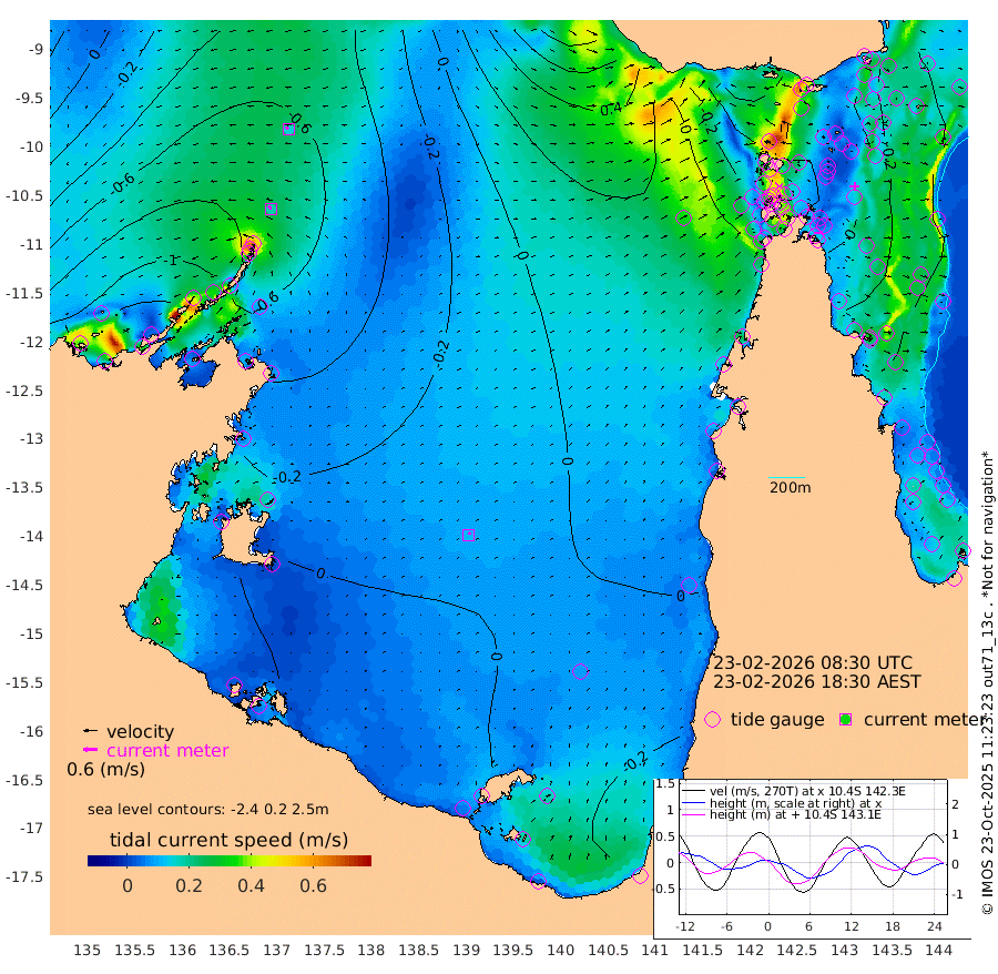 18cm/s -50T +3cm/s rms + 7cm/s -42T. ARA-GOC87 57m 12cm/s 28T +3cm/s rms + 2cm/s -2T. ARA-GOC87 60m 15cm/s -66T +2cm/s rms + 3cm/s 61T. ARA-GOC87 47m -38cm Daru -43cm Bobo Island -42cm Meer Island Barge -40cm Bramble Cay -35cm Unnamed Cay -53cm Pearce Cay -42cm Stephens Island -27cm Merrie England Shoals -26cm Mutacomal Reef -40cm Darnley Island Barge -42cm East Cay -38cm Yorke Island Barge -39cm Rennel Island -45cm Aureed Island -46cm Dungeness Reef -38cm Zagai Island -27cm Yam Island -57cm Dauan Island -34cm Saibai Island -64cm Phipi Reef -46cm Warrior Reef - West -29cm Mabuiag Island Barge -31cm Half Way Island -39cm Coconut Island -32cm Dugong Islet -35cm Poll Island -24cm Kirkcaldie Reef -48cm Suarji Island -23cm Sue Islet -38cm Hawkesbury Island -35cm Alert Patches -31cm Twin Island -53cm Badu Island -34cm St Pauls (Moa Island) -45cm Kubin (Moa Island) -32cm Ince Point -32cm Thursday Island -34cm Nardana Patches -47cm Turtle Head -44cm Round Island -51cm Goods Island -38cm Booby Island -39cm White Rocks Area 7cm Carpentaria -25cm Papou Point -53cm Bampfield Head -19cm Crab Island -28cm Red Wallis Island -41cm Packe Island -33cm Harrington Reef -37cm Herald Camp 4cm Sharp Point -24cm Red Island Point -39cm Possession Island -15cm Alpha Rock -32cm Frederick Point -34cm Wyborn Reef Light -32cm Tetley Island -40cm Triangle Reef -44cm Turtle Head Island -39cm Maclennan Cay -41cm Raine Island -39cm Mcsweeny Reef -35cm Collette Reef -36cm Shadwell Reef -38cm Hannibal Island -43cm Round Point 4cm Vrilya Point -32cm Cape Grenville -42cm Hicks Island -43cm Sir Charles Hardy Island -11cm Harvey Island -31cm Kay Reef -41cm Rocky Island -42cm Chapman Island -35cm Ham Reef -38cm Jubilee Reef -36cm Night Island -35cm Unnamed Reef No. 3 -42cm Morris Island -47cm 1st 3 Mile Opening -40cm Creech Reef -45cm Fife Island -49cm Eden Reef -35cm Stanley Island -38cm Normanby River -132cm Yabooma Island -169cm Hutchison River -134cm Elcho Island -121cm North West Crocodile Island -80cm Cape Wessel -112cm Stevens Island -89cm Guluwuru Island -104cm Hopeful Bay -97cm Auster Point -91cm Two Island Bay -136cm Cadell Strait -20cm Mallison Island -91cm Melville Bay (Gove Harbour) -93cm Truant Island -62cm Cape Arnhem -38cm Cape Grey -28cm Hawk Island 9cm Milner Bay (Groote Eylandt) 15cm Cape Beatrice 54cm West Island 57cm Centre Island 17cm Mornington Island 21cm West Wellesley Islands -11cm Bountiful Island -5cm Albert River Mouth -11cm Sweers Island -4cm Karumba 0cm Nassau River Offshore -10cm Christmas Creek -16cm Archer River -17cm Boyd Point -31cm Weipa (Humbug Point) 1cm Pennefather River -6cm Cullen Point