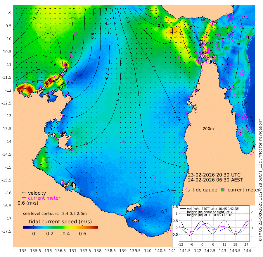 20cm/s -84T +3cm/s rms + 7cm/s -42T. ARA-GOC87 57m 18cm/s 149T +3cm/s rms + 2cm/s -2T. ARA-GOC87 60m 28cm/s -95T +2cm/s rms + 3cm/s 61T. ARA-GOC87 47m 45cm Daru 36cm Bobo Island 32cm Meer Island Barge 37cm Bramble Cay 53cm Unnamed Cay 33cm Pearce Cay 43cm Stephens Island 59cm Merrie England Shoals 57cm Mutacomal Reef 45cm Darnley Island Barge 29cm East Cay 47cm Yorke Island Barge 44cm Rennel Island 42cm Aureed Island 43cm Dungeness Reef 30cm Zagai Island 31cm Yam Island 8cm Dauan Island 18cm Saibai Island 16cm Phipi Reef 25cm Warrior Reef - West 25cm Mabuiag Island Barge 48cm Half Way Island 46cm Coconut Island 52cm Dugong Islet 41cm Poll Island 48cm Kirkcaldie Reef 46cm Suarji Island 50cm Sue Islet 22cm Hawkesbury Island 56cm Alert Patches 47cm Twin Island 17cm Badu Island 43cm St Pauls (Moa Island) 23cm Kubin (Moa Island) 42cm Ince Point 42cm Thursday Island 41cm Nardana Patches 36cm Turtle Head 31cm Round Island 29cm Goods Island 39cm Booby Island 32cm White Rocks Area 72cm Carpentaria 30cm Papou Point 53cm Bampfield Head 28cm Crab Island 36cm Red Wallis Island 33cm Packe Island 55cm Harrington Reef 36cm Herald Camp 17cm Sharp Point 21cm Red Island Point 42cm Possession Island 52cm Alpha Rock 48cm Frederick Point 51cm Wyborn Reef Light 50cm Tetley Island 30cm Triangle Reef 49cm Turtle Head Island 32cm Maclennan Cay 22cm Raine Island 48cm Mcsweeny Reef 49cm Collette Reef 38cm Shadwell Reef 53cm Hannibal Island 38cm Round Point 46cm Vrilya Point 47cm Cape Grenville 31cm Hicks Island 38cm Sir Charles Hardy Island 13cm Harvey Island 44cm Kay Reef 29cm Rocky Island 26cm Chapman Island 28cm Ham Reef 29cm Jubilee Reef 30cm Night Island 30cm Unnamed Reef No. 3 31cm Morris Island 33cm 1st 3 Mile Opening 33cm Creech Reef 22cm Fife Island 30cm Eden Reef 39cm Stanley Island 30cm Normanby River -203cm Yabooma Island -231cm Hutchison River -201cm Elcho Island -202cm North West Crocodile Island -123cm Cape Wessel -176cm Stevens Island -99cm Guluwuru Island -156cm Hopeful Bay -137cm Auster Point -148cm Two Island Bay -205cm Cadell Strait -7cm Mallison Island -98cm Melville Bay (Gove Harbour) -100cm Truant Island -60cm Cape Arnhem -39cm Cape Grey -29cm Hawk Island -12cm Milner Bay (Groote Eylandt) -6cm Cape Beatrice 31cm West Island 36cm Centre Island 11cm Mornington Island 18cm West Wellesley Islands -10cm Bountiful Island -53cm Albert River Mouth -44cm Sweers Island -47cm Karumba 14cm Nassau River Offshore 29cm Christmas Creek 33cm Archer River 40cm Boyd Point 31cm Weipa (Humbug Point) 44cm Pennefather River 41cm Cullen Point