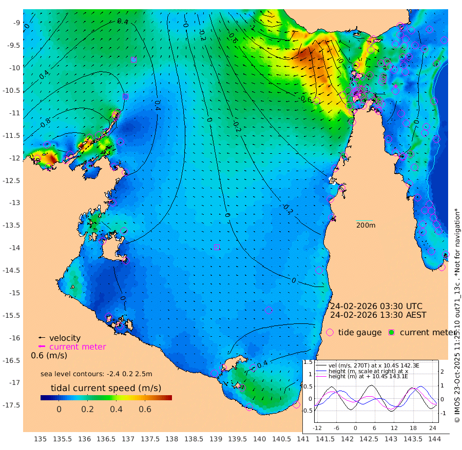 6cm/s 4T +3cm/s rms + 7cm/s -42T. ARA-GOC87 57m 13cm/s -100T +3cm/s rms + 2cm/s -2T. ARA-GOC87 60m 12cm/s 24T +2cm/s rms + 3cm/s 61T. ARA-GOC87 47m -1cm Daru 3cm Bobo Island 3cm Meer Island Barge -3cm Bramble Cay -10cm Unnamed Cay 2cm Pearce Cay -4cm Stephens Island -23cm Merrie England Shoals -17cm Mutacomal Reef -2cm Darnley Island Barge 4cm East Cay -2cm Yorke Island Barge -5cm Rennel Island 2cm Aureed Island 1cm Dungeness Reef 15cm Zagai Island 8cm Yam Island 45cm Dauan Island 34cm Saibai Island 41cm Phipi Reef 28cm Warrior Reef - West 1cm Mabuiag Island Barge -15cm Half Way Island -9cm Coconut Island -11cm Dugong Islet -5cm Poll Island -14cm Kirkcaldie Reef 3cm Suarji Island -7cm Sue Islet -29cm Hawkesbury Island -21cm Alert Patches -18cm Twin Island -18cm Badu Island -10cm St Pauls (Moa Island) -16cm Kubin (Moa Island) -19cm Ince Point -27cm Thursday Island -22cm Nardana Patches -21cm Turtle Head -19cm Round Island -31cm Goods Island -52cm Booby Island -48cm White Rocks Area -83cm Carpentaria -10cm Papou Point -44cm Bampfield Head -52cm Crab Island -53cm Red Wallis Island -33cm Packe Island -18cm Harrington Reef -23cm Herald Camp -6cm Sharp Point -24cm Red Island Point -16cm Possession Island -21cm Alpha Rock -15cm Frederick Point -13cm Wyborn Reef Light -13cm Tetley Island 3cm Triangle Reef -19cm Turtle Head Island 2cm Maclennan Cay 3cm Raine Island -8cm Mcsweeny Reef -9cm Collette Reef -3cm Shadwell Reef -11cm Hannibal Island -6cm Round Point -77cm Vrilya Point -12cm Cape Grenville 3cm Hicks Island 8cm Sir Charles Hardy Island -1cm Harvey Island -11cm Kay Reef 5cm Rocky Island 3cm Chapman Island 2cm Ham Reef 1cm Jubilee Reef -2cm Night Island -3cm Unnamed Reef No. 3 1cm Morris Island 1cm 1st 3 Mile Opening -1cm Creech Reef 6cm Fife Island 4cm Eden Reef -7cm Stanley Island -1cm Normanby River 121cm Yabooma Island 152cm Hutchison River 124cm Elcho Island 121cm North West Crocodile Island 77cm Cape Wessel 100cm Stevens Island 87cm Guluwuru Island 96cm Hopeful Bay 84cm Auster Point 90cm Two Island Bay 132cm Cadell Strait 29cm Mallison Island 83cm Melville Bay (Gove Harbour) 82cm Truant Island 57cm Cape Arnhem 45cm Cape Grey 40cm Hawk Island 15cm Milner Bay (Groote Eylandt) 16cm Cape Beatrice -13cm West Island -19cm Centre Island 35cm Mornington Island 30cm West Wellesley Islands 77cm Bountiful Island 95cm Albert River Mouth 92cm Sweers Island 91cm Karumba 25cm Nassau River Offshore 9cm Christmas Creek -17cm Archer River -23cm Boyd Point -14cm Weipa (Humbug Point) -60cm Pennefather River -50cm Cullen Point