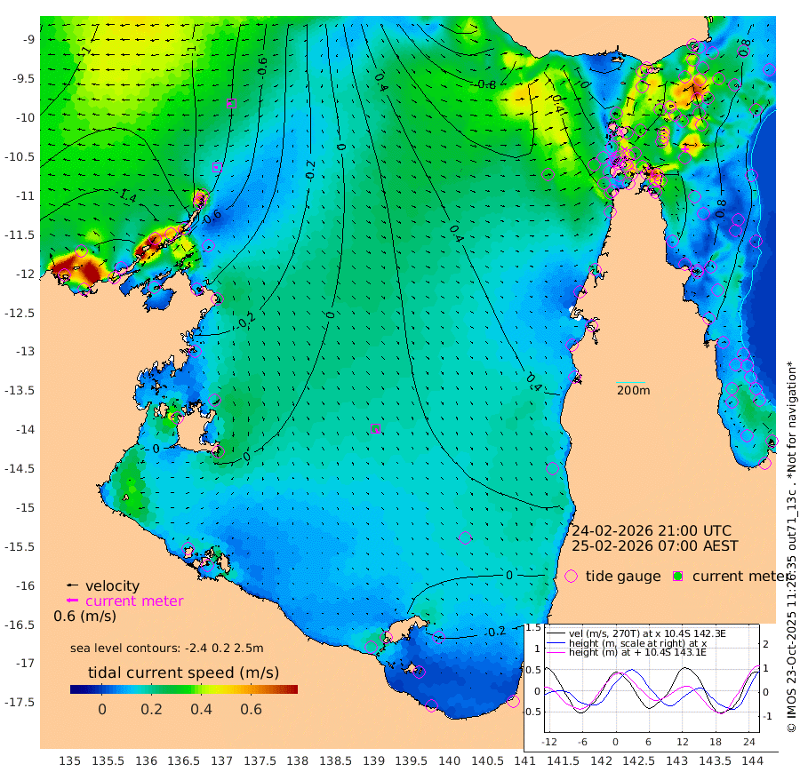 15cm/s -96T +3cm/s rms + 7cm/s -42T. ARA-GOC87 57m 25cm/s 158T +3cm/s rms + 2cm/s -2T. ARA-GOC87 60m 25cm/s -101T +2cm/s rms + 3cm/s 61T. ARA-GOC87 47m 87cm Daru 79cm Bobo Island 67cm Meer Island Barge 80cm Bramble Cay 98cm Unnamed Cay 81cm Pearce Cay 89cm Stephens Island 105cm Merrie England Shoals 100cm Mutacomal Reef 87cm Darnley Island Barge 68cm East Cay 88cm Yorke Island Barge 89cm Rennel Island 83cm Aureed Island 82cm Dungeness Reef 53cm Zagai Island 57cm Yam Island 18cm Dauan Island 22cm Saibai Island 29cm Phipi Reef 50cm Warrior Reef - West 33cm Mabuiag Island Barge 93cm Half Way Island 84cm Coconut Island 96cm Dugong Islet 74cm Poll Island 85cm Kirkcaldie Reef 69cm Suarji Island 78cm Sue Islet 42cm Hawkesbury Island 81cm Alert Patches 74cm Twin Island 32cm Badu Island 66cm St Pauls (Moa Island) 44cm Kubin (Moa Island) 63cm Ince Point 62cm Thursday Island 61cm Nardana Patches 57cm Turtle Head 44cm Round Island 49cm Goods Island 54cm Booby Island 50cm White Rocks Area 76cm Carpentaria 51cm Papou Point 63cm Bampfield Head 40cm Crab Island 52cm Red Wallis Island 56cm Packe Island 101cm Harrington Reef 50cm Herald Camp 20cm Sharp Point 39cm Red Island Point 59cm Possession Island 77cm Alpha Rock 82cm Frederick Point 92cm Wyborn Reef Light 88cm Tetley Island 60cm Triangle Reef 98cm Turtle Head Island 68cm Maclennan Cay 52cm Raine Island 91cm Mcsweeny Reef 88cm Collette Reef 71cm Shadwell Reef 97cm Hannibal Island 82cm Round Point 56cm Vrilya Point 87cm Cape Grenville 70cm Hicks Island 77cm Sir Charles Hardy Island 25cm Harvey Island 81cm Kay Reef 62cm Rocky Island 57cm Chapman Island 57cm Ham Reef 61cm Jubilee Reef 60cm Night Island 61cm Unnamed Reef No. 3 66cm Morris Island 65cm 1st 3 Mile Opening 66cm Creech Reef 58cm Fife Island 69cm Eden Reef 75cm Stanley Island 70cm Normanby River -182cm Yabooma Island -203cm Hutchison River -183cm Elcho Island -184cm North West Crocodile Island -108cm Cape Wessel -157cm Stevens Island -77cm Guluwuru Island -143cm Hopeful Bay -121cm Auster Point -130cm Two Island Bay -174cm Cadell Strait 18cm Mallison Island -81cm Melville Bay (Gove Harbour) -83cm Truant Island -50cm Cape Arnhem -38cm Cape Grey -33cm Hawk Island -29cm Milner Bay (Groote Eylandt) -19cm Cape Beatrice 8cm West Island 10cm Centre Island -5cm Mornington Island 4cm West Wellesley Islands -29cm Bountiful Island -78cm Albert River Mouth -78cm Sweers Island -71cm Karumba 14cm Nassau River Offshore 38cm Christmas Creek 43cm Archer River 50cm Boyd Point 42cm Weipa (Humbug Point) 54cm Pennefather River 48cm Cullen Point
