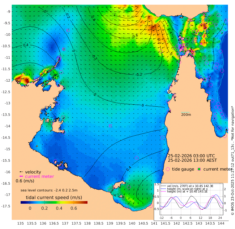 21cm/s -80T +3cm/s rms + 7cm/s -42T. ARA-GOC87 57m 16cm/s -106T +3cm/s rms + 2cm/s -2T. ARA-GOC87 60m 17cm/s -74T +2cm/s rms + 3cm/s 61T. ARA-GOC87 47m -31cm Daru -34cm Bobo Island -33cm Meer Island Barge -42cm Bramble Cay -47cm Unnamed Cay -35cm Pearce Cay -44cm Stephens Island -59cm Merrie England Shoals -44cm Mutacomal Reef -44cm Darnley Island Barge -33cm East Cay -39cm Yorke Island Barge -34cm Rennel Island -29cm Aureed Island -16cm Dungeness Reef 12cm Zagai Island 9cm Yam Island 77cm Dauan Island 58cm Saibai Island 72cm Phipi Reef 31cm Warrior Reef - West 38cm Mabuiag Island Barge -47cm Half Way Island -27cm Coconut Island -38cm Dugong Islet -11cm Poll Island -24cm Kirkcaldie Reef 22cm Suarji Island -16cm Sue Islet 31cm Hawkesbury Island 3cm Alert Patches -2cm Twin Island 44cm Badu Island 10cm St Pauls (Moa Island) 31cm Kubin (Moa Island) 13cm Ince Point 14cm Thursday Island 17cm Nardana Patches 31cm Turtle Head 36cm Round Island 34cm Goods Island 22cm Booby Island 24cm White Rocks Area -24cm Carpentaria 4cm Papou Point 28cm Bampfield Head 11cm Crab Island 19cm Red Wallis Island 26cm Packe Island -43cm Harrington Reef 41cm Herald Camp 0cm Sharp Point 18cm Red Island Point 14cm Possession Island -13cm Alpha Rock -17cm Frederick Point -38cm Wyborn Reef Light -33cm Tetley Island -20cm Triangle Reef -52cm Turtle Head Island -28cm Maclennan Cay -22cm Raine Island -41cm Mcsweeny Reef -41cm Collette Reef -31cm Shadwell Reef -50cm Hannibal Island -43cm Round Point -19cm Vrilya Point -45cm Cape Grenville -32cm Hicks Island -26cm Sir Charles Hardy Island -13cm Harvey Island -44cm Kay Reef -25cm Rocky Island -21cm Chapman Island -25cm Ham Reef -29cm Jubilee Reef -27cm Night Island -28cm Unnamed Reef No. 3 -30cm Morris Island -25cm 1st 3 Mile Opening -30cm Creech Reef -26cm Fife Island -35cm Eden Reef -39cm Stanley Island -41cm Normanby River 79cm Yabooma Island 97cm Hutchison River 81cm Elcho Island 81cm North West Crocodile Island 19cm Cape Wessel 46cm Stevens Island 9cm Guluwuru Island 51cm Hopeful Bay 32cm Auster Point 28cm Two Island Bay 51cm Cadell Strait -102cm Mallison Island 22cm Melville Bay (Gove Harbour) 16cm Truant Island 12cm Cape Arnhem 13cm Cape Grey 22cm Hawk Island 9cm Milner Bay (Groote Eylandt) 16cm Cape Beatrice 3cm West Island 0cm Centre Island 55cm Mornington Island 49cm West Wellesley Islands 100cm Bountiful Island 121cm Albert River Mouth 113cm Sweers Island 120cm Karumba 53cm Nassau River Offshore 40cm Christmas Creek 21cm Archer River 14cm Boyd Point 32cm Weipa (Humbug Point) -20cm Pennefather River 5cm Cullen Point