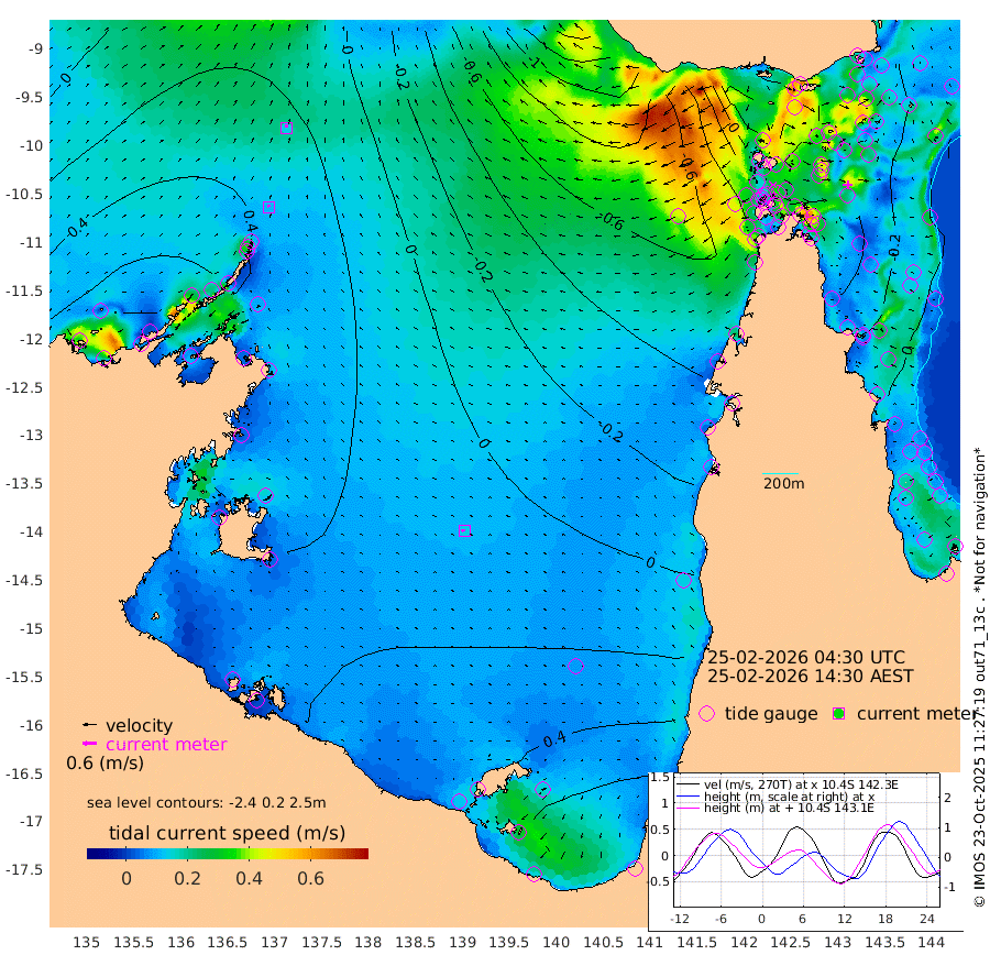 11cm/s -24T +3cm/s rms + 7cm/s -42T. ARA-GOC87 57m 14cm/s -90T +3cm/s rms + 2cm/s -2T. ARA-GOC87 60m 14cm/s 3T +2cm/s rms + 3cm/s 61T. ARA-GOC87 47m -39cm Daru -34cm Bobo Island -14cm Meer Island Barge -29cm Bramble Cay -45cm Unnamed Cay -37cm Pearce Cay -36cm Stephens Island -55cm Merrie England Shoals -56cm Mutacomal Reef -28cm Darnley Island Barge -17cm East Cay -33cm Yorke Island Barge -42cm Rennel Island -32cm Aureed Island -37cm Dungeness Reef -18cm Zagai Island -28cm Yam Island 19cm Dauan Island 12cm Saibai Island 15cm Phipi Reef -6cm Warrior Reef - West -29cm Mabuiag Island Barge -51cm Half Way Island -48cm Coconut Island -51cm Dugong Islet -44cm Poll Island -53cm Kirkcaldie Reef -37cm Suarji Island -41cm Sue Islet -66cm Hawkesbury Island -60cm Alert Patches -58cm Twin Island -52cm Badu Island -50cm St Pauls (Moa Island) -52cm Kubin (Moa Island) -56cm Ince Point -63cm Thursday Island -58cm Nardana Patches -55cm Turtle Head -50cm Round Island -62cm Goods Island -79cm Booby Island -81cm White Rocks Area -97cm Carpentaria -47cm Papou Point -74cm Bampfield Head -71cm Crab Island -80cm Red Wallis Island -65cm Packe Island -62cm Harrington Reef -50cm Herald Camp -14cm Sharp Point -54cm Red Island Point -50cm Possession Island -57cm Alpha Rock -57cm Frederick Point -55cm Wyborn Reef Light -56cm Tetley Island -16cm Triangle Reef -67cm Turtle Head Island -17cm Maclennan Cay -9cm Raine Island -41cm Mcsweeny Reef -35cm Collette Reef -19cm Shadwell Reef -39cm Hannibal Island -34cm Round Point -90cm Vrilya Point -34cm Cape Grenville -19cm Hicks Island -12cm Sir Charles Hardy Island -8cm Harvey Island -28cm Kay Reef -9cm Rocky Island -9cm Chapman Island -8cm Ham Reef -12cm Jubilee Reef -14cm Night Island -14cm Unnamed Reef No. 3 -14cm Morris Island -12cm 1st 3 Mile Opening -14cm Creech Reef -10cm Fife Island -9cm Eden Reef -20cm Stanley Island -18cm Normanby River 77cm Yabooma Island 102cm Hutchison River 86cm Elcho Island 83cm North West Crocodile Island 48cm Cape Wessel 63cm Stevens Island 65cm Guluwuru Island 67cm Hopeful Bay 52cm Auster Point 58cm Two Island Bay 92cm Cadell Strait 37cm Mallison Island 61cm Melville Bay (Gove Harbour) 57cm Truant Island 44cm Cape Arnhem 39cm Cape Grey 41cm Hawk Island 26cm Milner Bay (Groote Eylandt) 28cm Cape Beatrice 9cm West Island 7cm Centre Island 65cm Mornington Island 58cm West Wellesley Islands 105cm Bountiful Island 135cm Albert River Mouth 133cm Sweers Island 129cm Karumba 46cm Nassau River Offshore 21cm Christmas Creek -15cm Archer River -27cm Boyd Point -18cm Weipa (Humbug Point) -65cm Pennefather River -59cm Cullen Point