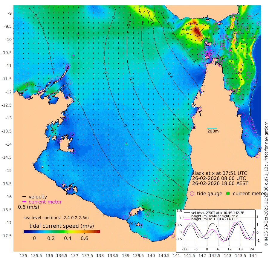 21cm/s 14T +3cm/s rms + 7cm/s -42T. ARA-GOC87 57m 17cm/s -24T +3cm/s rms + 2cm/s -2T. ARA-GOC87 60m 26cm/s 23T +2cm/s rms + 3cm/s 61T. ARA-GOC87 47m -9cm Daru 3cm Bobo Island 32cm Meer Island Barge 30cm Bramble Cay 14cm Unnamed Cay 3cm Pearce Cay 21cm Stephens Island 21cm Merrie England Shoals -6cm Mutacomal Reef 28cm Darnley Island Barge 34cm East Cay 11cm Yorke Island Barge -3cm Rennel Island 0cm Aureed Island -29cm Dungeness Reef -61cm Zagai Island -66cm Yam Island -117cm Dauan Island -100cm Saibai Island -101cm Phipi Reef -70cm Warrior Reef - West -126cm Mabuiag Island Barge 0cm Half Way Island -31cm Coconut Island -13cm Dugong Islet -53cm Poll Island -44cm Kirkcaldie Reef -89cm Suarji Island -46cm Sue Islet -177cm Hawkesbury Island -104cm Alert Patches -95cm Twin Island -182cm Badu Island -107cm St Pauls (Moa Island) -152cm Kubin (Moa Island) -122cm Ince Point -137cm Thursday Island -133cm Nardana Patches -151cm Turtle Head -148cm Round Island -174cm Goods Island -189cm Booby Island -182cm White Rocks Area -151cm Carpentaria -91cm Papou Point -181cm Bampfield Head -157cm Crab Island -182cm Red Wallis Island -162cm Packe Island -21cm Harrington Reef -158cm Herald Camp -24cm Sharp Point -128cm Red Island Point -107cm Possession Island -71cm Alpha Rock -64cm Frederick Point -22cm Wyborn Reef Light -33cm Tetley Island 7cm Triangle Reef -24cm Turtle Head Island 21cm Maclennan Cay 22cm Raine Island 8cm Mcsweeny Reef 18cm Collette Reef 23cm Shadwell Reef 27cm Hannibal Island 25cm Round Point -145cm Vrilya Point 30cm Cape Grenville 29cm Hicks Island 27cm Sir Charles Hardy Island 10cm Harvey Island 36cm Kay Reef 30cm Rocky Island 25cm Chapman Island 29cm Ham Reef 29cm Jubilee Reef 25cm Night Island 26cm Unnamed Reef No. 3 32cm Morris Island 23cm 1st 3 Mile Opening 29cm Creech Reef 31cm Fife Island 47cm Eden Reef 39cm Stanley Island 48cm Normanby River -10cm Yabooma Island -8cm Hutchison River -4cm Elcho Island -4cm North West Crocodile Island 17cm Cape Wessel 7cm Stevens Island 43cm Guluwuru Island 15cm Hopeful Bay 11cm Auster Point 19cm Two Island Bay 21cm Cadell Strait 126cm Mallison Island 29cm Melville Bay (Gove Harbour) 26cm Truant Island 25cm Cape Arnhem 36cm Cape Grey 42cm Hawk Island 55cm Milner Bay (Groote Eylandt) 55cm Cape Beatrice 65cm West Island 67cm Centre Island 85cm Mornington Island 85cm West Wellesley Islands 97cm Bountiful Island 124cm Albert River Mouth 141cm Sweers Island 115cm Karumba 37cm Nassau River Offshore -6cm Christmas Creek -55cm Archer River -79cm Boyd Point -86cm Weipa (Humbug Point) -93cm Pennefather River -124cm Cullen Point