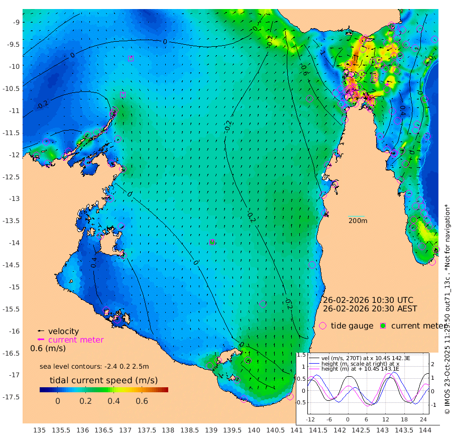 17cm/s 6T +3cm/s rms + 7cm/s -42T. ARA-GOC87 57m 29cm/s 5T +3cm/s rms + 2cm/s -2T. ARA-GOC87 60m 17cm/s 23T +2cm/s rms + 3cm/s 61T. ARA-GOC87 47m 32cm Daru 34cm Bobo Island 3cm Meer Island Barge 23cm Bramble Cay 39cm Unnamed Cay 26cm Pearce Cay 31cm Stephens Island 49cm Merrie England Shoals 47cm Mutacomal Reef 24cm Darnley Island Barge 9cm East Cay 28cm Yorke Island Barge 32cm Rennel Island 24cm Aureed Island 15cm Dungeness Reef -8cm Zagai Island -1cm Yam Island -84cm Dauan Island -65cm Saibai Island -66cm Phipi Reef -25cm Warrior Reef - West -55cm Mabuiag Island Barge 39cm Half Way Island 24cm Coconut Island 35cm Dugong Islet 13cm Poll Island 22cm Kirkcaldie Reef -10cm Suarji Island 14cm Sue Islet -103cm Hawkesbury Island -16cm Alert Patches -7cm Twin Island -112cm Badu Island -16cm St Pauls (Moa Island) -81cm Kubin (Moa Island) -38cm Ince Point -51cm Thursday Island -50cm Nardana Patches -83cm Turtle Head -79cm Round Island -114cm Goods Island -124cm Booby Island -106cm White Rocks Area -87cm Carpentaria -10cm Papou Point -114cm Bampfield Head -100cm Crab Island -112cm Red Wallis Island -93cm Packe Island 45cm Harrington Reef -104cm Herald Camp 5cm Sharp Point -59cm Red Island Point -30cm Possession Island 11cm Alpha Rock 13cm Frederick Point 39cm Wyborn Reef Light 35cm Tetley Island -5cm Triangle Reef 40cm Turtle Head Island 1cm Maclennan Cay -15cm Raine Island 30cm Mcsweeny Reef 27cm Collette Reef 3cm Shadwell Reef 34cm Hannibal Island 24cm Round Point -84cm Vrilya Point 24cm Cape Grenville 11cm Hicks Island -4cm Sir Charles Hardy Island 7cm Harvey Island 15cm Kay Reef -5cm Rocky Island -14cm Chapman Island -11cm Ham Reef -7cm Jubilee Reef -3cm Night Island -10cm Unnamed Reef No. 3 -3cm Morris Island -15cm 1st 3 Mile Opening -8cm Creech Reef -3cm Fife Island -9cm Eden Reef 3cm Stanley Island 13cm Normanby River -37cm Yabooma Island -57cm Hutchison River -43cm Elcho Island -35cm North West Crocodile Island -10cm Cape Wessel -17cm Stevens Island -22cm Guluwuru Island -20cm Hopeful Bay -14cm Auster Point -12cm Two Island Bay -40cm Cadell Strait 7cm Mallison Island -20cm Melville Bay (Gove Harbour) -21cm Truant Island -14cm Cape Arnhem 11cm Cape Grey 19cm Hawk Island 54cm Milner Bay (Groote Eylandt) 49cm Cape Beatrice 80cm West Island 82cm Centre Island 42cm Mornington Island 47cm West Wellesley Islands 32cm Bountiful Island 43cm Albert River Mouth 68cm Sweers Island 41cm Karumba -6cm Nassau River Offshore -43cm Christmas Creek -68cm Archer River -78cm Boyd Point -94cm Weipa (Humbug Point) -60cm Pennefather River -88cm Cullen Point