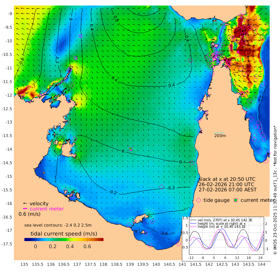 21cm/s 125T +3cm/s rms + 7cm/s -42T. ARA-GOC87 57m 33cm/s 161T +3cm/s rms + 2cm/s -2T. ARA-GOC87 60m 12cm/s 146T +2cm/s rms + 3cm/s 61T. ARA-GOC87 47m 111cm Daru 118cm Bobo Island 127cm Meer Island Barge 139cm Bramble Cay 138cm Unnamed Cay 134cm Pearce Cay 142cm Stephens Island 148cm Merrie England Shoals 121cm Mutacomal Reef 140cm Darnley Island Barge 133cm East Cay 126cm Yorke Island Barge 123cm Rennel Island 117cm Aureed Island 98cm Dungeness Reef 36cm Zagai Island 41cm Yam Island -19cm Dauan Island -17cm Saibai Island -12cm Phipi Reef 32cm Warrior Reef - West -8cm Mabuiag Island Barge 129cm Half Way Island 98cm Coconut Island 122cm Dugong Islet 72cm Poll Island 87cm Kirkcaldie Reef 35cm Suarji Island 70cm Sue Islet 38cm Hawkesbury Island 52cm Alert Patches 53cm Twin Island 17cm Badu Island 34cm St Pauls (Moa Island) 33cm Kubin (Moa Island) 36cm Ince Point 35cm Thursday Island 32cm Nardana Patches 37cm Turtle Head 20cm Round Island 43cm Goods Island 44cm Booby Island 41cm White Rocks Area 54cm Carpentaria 33cm Papou Point 43cm Bampfield Head 30cm Crab Island 42cm Red Wallis Island 45cm Packe Island 121cm Harrington Reef 30cm Herald Camp -1cm Sharp Point 28cm Red Island Point 33cm Possession Island 54cm Alpha Rock 79cm Frederick Point 111cm Wyborn Reef Light 99cm Tetley Island 105cm Triangle Reef 133cm Turtle Head Island 121cm Maclennan Cay 110cm Raine Island 131cm Mcsweeny Reef 129cm Collette Reef 118cm Shadwell Reef 146cm Hannibal Island 143cm Round Point 45cm Vrilya Point 139cm Cape Grenville 129cm Hicks Island 136cm Sir Charles Hardy Island 42cm Harvey Island 140cm Kay Reef 121cm Rocky Island 118cm Chapman Island 116cm Ham Reef 121cm Jubilee Reef 112cm Night Island 120cm Unnamed Reef No. 3 129cm Morris Island 122cm 1st 3 Mile Opening 127cm Creech Reef 123cm Fife Island 150cm Eden Reef 137cm Stanley Island 146cm Normanby River -43cm Yabooma Island -38cm Hutchison River -47cm Elcho Island -55cm North West Crocodile Island 4cm Cape Wessel -26cm Stevens Island 41cm Guluwuru Island -27cm Hopeful Bay -8cm Auster Point -6cm Two Island Bay 0cm Cadell Strait 151cm Mallison Island 18cm Melville Bay (Gove Harbour) 25cm Truant Island 14cm Cape Arnhem -9cm Cape Grey -25cm Hawk Island -58cm Milner Bay (Groote Eylandt) -53cm Cape Beatrice -70cm West Island -73cm Centre Island -72cm Mornington Island -63cm West Wellesley Islands -99cm Bountiful Island -153cm Albert River Mouth -166cm Sweers Island -148cm Karumba -27cm Nassau River Offshore 15cm Christmas Creek 36cm Archer River 44cm Boyd Point 38cm Weipa (Humbug Point) 44cm Pennefather River 33cm Cullen Point