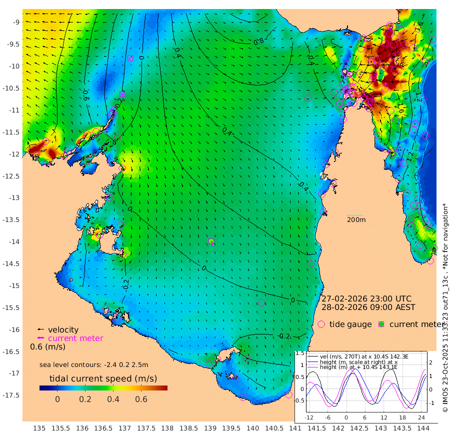 10cm/s 169T +3cm/s rms + 7cm/s -42T. ARA-GOC87 57m 38cm/s 165T +3cm/s rms + 2cm/s -2T. ARA-GOC87 60m 13cm/s -131T +2cm/s rms + 3cm/s 61T. ARA-GOC87 47m 185cm Daru 181cm Bobo Island 129cm Meer Island Barge 163cm Bramble Cay 190cm Unnamed Cay 191cm Pearce Cay 185cm Stephens Island 197cm Merrie England Shoals 197cm Mutacomal Reef 170cm Darnley Island Barge 142cm East Cay 175cm Yorke Island Barge 189cm Rennel Island 176cm Aureed Island 176cm Dungeness Reef 121cm Zagai Island 134cm Yam Island 67cm Dauan Island 59cm Saibai Island 80cm Phipi Reef 126cm Warrior Reef - West 72cm Mabuiag Island Barge 191cm Half Way Island 177cm Coconut Island 196cm Dugong Islet 162cm Poll Island 174cm Kirkcaldie Reef 139cm Suarji Island 151cm Sue Islet 99cm Hawkesbury Island 149cm Alert Patches 150cm Twin Island 81cm Badu Island 137cm St Pauls (Moa Island) 104cm Kubin (Moa Island) 124cm Ince Point 117cm Thursday Island 116cm Nardana Patches 109cm Turtle Head 83cm Round Island 94cm Goods Island 81cm Booby Island 90cm White Rocks Area 66cm Carpentaria 120cm Papou Point 81cm Bampfield Head 59cm Crab Island 86cm Red Wallis Island 109cm Packe Island 207cm Harrington Reef 82cm Herald Camp 31cm Sharp Point 93cm Red Island Point 112cm Possession Island 143cm Alpha Rock 171cm Frederick Point 190cm Wyborn Reef Light 184cm Tetley Island 121cm Triangle Reef 209cm Turtle Head Island 132cm Maclennan Cay 101cm Raine Island 180cm Mcsweeny Reef 166cm Collette Reef 126cm Shadwell Reef 182cm Hannibal Island 171cm Round Point 62cm Vrilya Point 158cm Cape Grenville 144cm Hicks Island 146cm Sir Charles Hardy Island 48cm Harvey Island 144cm Kay Reef 117cm Rocky Island 109cm Chapman Island 105cm Ham Reef 115cm Jubilee Reef 112cm Night Island 112cm Unnamed Reef No. 3 125cm Morris Island 113cm 1st 3 Mile Opening 121cm Creech Reef 124cm Fife Island 132cm Eden Reef 130cm Stanley Island 142cm Normanby River -69cm Yabooma Island -68cm Hutchison River -80cm Elcho Island -80cm North West Crocodile Island -28cm Cape Wessel -57cm Stevens Island 1cm Guluwuru Island -62cm Hopeful Bay -39cm Auster Point -40cm Two Island Bay -40cm Cadell Strait 58cm Mallison Island -12cm Melville Bay (Gove Harbour) -8cm Truant Island -8cm Cape Arnhem -21cm Cape Grey -31cm Hawk Island -63cm Milner Bay (Groote Eylandt) -50cm Cape Beatrice -57cm West Island -65cm Centre Island -55cm Mornington Island -44cm West Wellesley Islands -80cm Bountiful Island -141cm Albert River Mouth -160cm Sweers Island -127cm Karumba -5cm Nassau River Offshore 35cm Christmas Creek 46cm Archer River 56cm Boyd Point 49cm Weipa (Humbug Point) 54cm Pennefather River 50cm Cullen Point