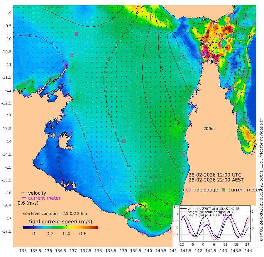 20cm/s 33T +3cm/s rms + 7cm/s -42T. ARA-GOC87 57m 32cm/s 2T +3cm/s rms + 2cm/s -2T. ARA-GOC87 60m 24cm/s 42T +2cm/s rms + 3cm/s 61T. ARA-GOC87 47m 79cm Daru 81cm Bobo Island 17cm Meer Island Barge 46cm Bramble Cay 73cm Unnamed Cay 69cm Pearce Cay 65cm Stephens Island 78cm Merrie England Shoals 86cm Mutacomal Reef 52cm Darnley Island Barge 25cm East Cay 64cm Yorke Island Barge 72cm Rennel Island 70cm Aureed Island 62cm Dungeness Reef 43cm Zagai Island 41cm Yam Island -43cm Dauan Island -34cm Saibai Island -17cm Phipi Reef 28cm Warrior Reef - West -34cm Mabuiag Island Barge 75cm Half Way Island 72cm Coconut Island 74cm Dugong Islet 60cm Poll Island 61cm Kirkcaldie Reef 45cm Suarji Island 53cm Sue Islet -125cm Hawkesbury Island 21cm Alert Patches 32cm Twin Island -114cm Badu Island 27cm St Pauls (Moa Island) -77cm Kubin (Moa Island) -12cm Ince Point -35cm Thursday Island -30cm Nardana Patches -75cm Turtle Head -80cm Round Island -128cm Goods Island -154cm Booby Island -128cm White Rocks Area -127cm Carpentaria 23cm Papou Point -133cm Bampfield Head -129cm Crab Island -139cm Red Wallis Island -97cm Packe Island 94cm Harrington Reef -125cm Herald Camp 17cm Sharp Point -62cm Red Island Point -5cm Possession Island 44cm Alpha Rock 57cm Frederick Point 84cm Wyborn Reef Light 80cm Tetley Island 12cm Triangle Reef 85cm Turtle Head Island 15cm Maclennan Cay -10cm Raine Island 64cm Mcsweeny Reef 54cm Collette Reef 15cm Shadwell Reef 63cm Hannibal Island 48cm Round Point -123cm Vrilya Point 39cm Cape Grenville 29cm Hicks Island 9cm Sir Charles Hardy Island 13cm Harvey Island 22cm Kay Reef 2cm Rocky Island -11cm Chapman Island -11cm Ham Reef -2cm Jubilee Reef 6cm Night Island -9cm Unnamed Reef No. 3 5cm Morris Island -7cm 1st 3 Mile Opening -2cm Creech Reef 11cm Fife Island -4cm Eden Reef 6cm Stanley Island 19cm Normanby River -10cm Yabooma Island -13cm Hutchison River -11cm Elcho Island -8cm North West Crocodile Island 18cm Cape Wessel 17cm Stevens Island 17cm Guluwuru Island 6cm Hopeful Bay 17cm Auster Point 14cm Two Island Bay 3cm Cadell Strait 28cm Mallison Island 20cm Melville Bay (Gove Harbour) 21cm Truant Island 19cm Cape Arnhem 38cm Cape Grey 43cm Hawk Island 72cm Milner Bay (Groote Eylandt) 62cm Cape Beatrice 85cm West Island 85cm Centre Island 60cm Mornington Island 62cm West Wellesley Islands 56cm Bountiful Island 73cm Albert River Mouth 107cm Sweers Island 68cm Karumba 0cm Nassau River Offshore -46cm Christmas Creek -86cm Archer River -97cm Boyd Point -114cm Weipa (Humbug Point) -85cm Pennefather River -120cm Cullen Point