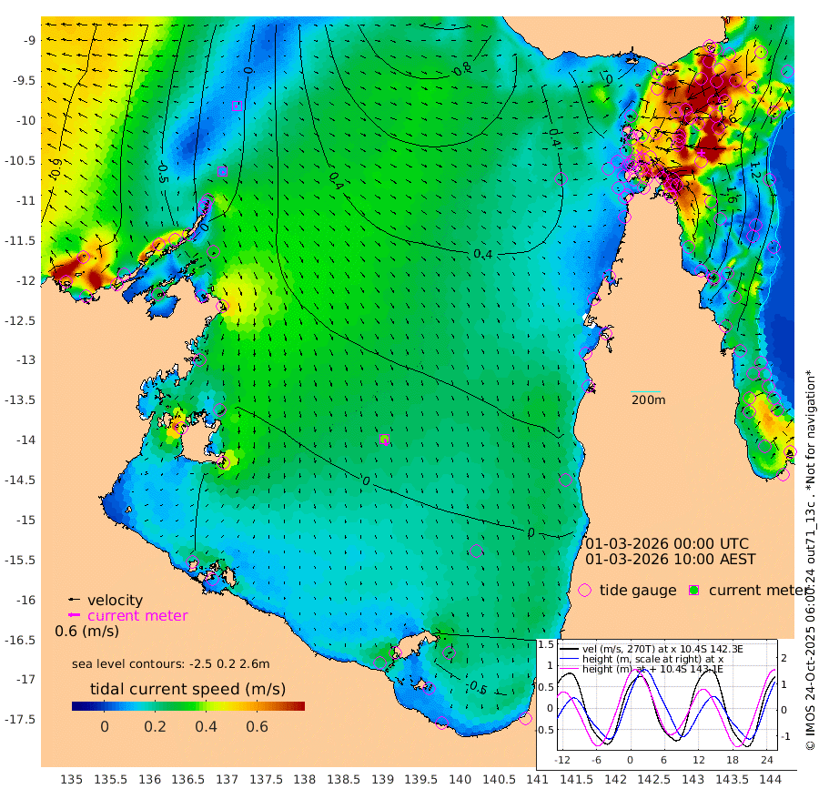 9cm/s 162T +3cm/s rms + 7cm/s -42T. ARA-GOC87 57m 38cm/s 167T +3cm/s rms + 2cm/s -2T. ARA-GOC87 60m 11cm/s -127T +2cm/s rms + 3cm/s 61T. ARA-GOC87 47m 203cm Daru 198cm Bobo Island 120cm Meer Island Barge 159cm Bramble Cay 194cm Unnamed Cay 202cm Pearce Cay 188cm Stephens Island 197cm Merrie England Shoals 210cm Mutacomal Reef 170cm Darnley Island Barge 135cm East Cay 183cm Yorke Island Barge 200cm Rennel Island 189cm Aureed Island 195cm Dungeness Reef 153cm Zagai Island 165cm Yam Island 107cm Dauan Island 95cm Saibai Island 117cm Phipi Reef 163cm Warrior Reef - West 100cm Mabuiag Island Barge 201cm Half Way Island 196cm Coconut Island 211cm Dugong Islet 187cm Poll Island 196cm Kirkcaldie Reef 170cm Suarji Island 175cm Sue Islet 110cm Hawkesbury Island 174cm Alert Patches 178cm Twin Island 96cm Badu Island 170cm St Pauls (Moa Island) 121cm Kubin (Moa Island) 148cm Ince Point 136cm Thursday Island 137cm Nardana Patches 124cm Turtle Head 95cm Round Island 98cm Goods Island 76cm Booby Island 89cm White Rocks Area 53cm Carpentaria 148cm Papou Point 77cm Bampfield Head 56cm Crab Island 86cm Red Wallis Island 119cm Packe Island 226cm Harrington Reef 88cm Herald Camp 42cm Sharp Point 108cm Red Island Point 132cm Possession Island 166cm Alpha Rock 196cm Frederick Point 208cm Wyborn Reef Light 205cm Tetley Island 119cm Triangle Reef 224cm Turtle Head Island 126cm Maclennan Cay 88cm Raine Island 185cm Mcsweeny Reef 167cm Collette Reef 118cm Shadwell Reef 180cm Hannibal Island 168cm Round Point 52cm Vrilya Point 150cm Cape Grenville 138cm Hicks Island 138cm Sir Charles Hardy Island 47cm Harvey Island 130cm Kay Reef 105cm Rocky Island 94cm Chapman Island 91cm Ham Reef 102cm Jubilee Reef 101cm Night Island 98cm Unnamed Reef No. 3 111cm Morris Island 98cm 1st 3 Mile Opening 106cm Creech Reef 115cm Fife Island 112cm Eden Reef 113cm Stanley Island 127cm Normanby River -53cm Yabooma Island -47cm Hutchison River -64cm Elcho Island -62cm North West Crocodile Island -15cm Cape Wessel -41cm Stevens Island 13cm Guluwuru Island -52cm Hopeful Bay -26cm Auster Point -25cm Two Island Bay -17cm Cadell Strait 52cm Mallison Island 1cm Melville Bay (Gove Harbour) 6cm Truant Island 1cm Cape Arnhem -16cm Cape Grey -26cm Hawk Island -64cm Milner Bay (Groote Eylandt) -51cm Cape Beatrice -62cm West Island -72cm Centre Island -55cm Mornington Island -47cm West Wellesley Islands -79cm Bountiful Island -138cm Albert River Mouth -159cm Sweers Island -122cm Karumba -7cm Nassau River Offshore 31cm Christmas Creek 37cm Archer River 49cm Boyd Point 41cm Weipa (Humbug Point) 43cm Pennefather River 43cm Cullen Point