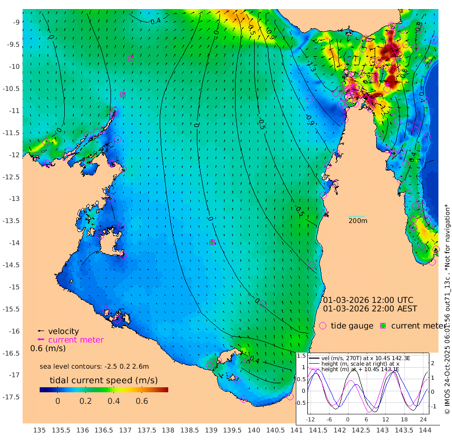 23cm/s 47T +3cm/s rms + 7cm/s -42T. ARA-GOC87 57m 27cm/s -5T +3cm/s rms + 2cm/s -2T. ARA-GOC87 60m 29cm/s 48T +2cm/s rms + 3cm/s 61T. ARA-GOC87 47m 97cm Daru 105cm Bobo Island 48cm Meer Island Barge 77cm Bramble Cay 96cm Unnamed Cay 98cm Pearce Cay 94cm Stephens Island 103cm Merrie England Shoals 102cm Mutacomal Reef 81cm Darnley Island Barge 58cm East Cay 87cm Yorke Island Barge 93cm Rennel Island 94cm Aureed Island 78cm Dungeness Reef 44cm Zagai Island 37cm Yam Island -49cm Dauan Island -45cm Saibai Island -16cm Phipi Reef 32cm Warrior Reef - West -54cm Mabuiag Island Barge 94cm Half Way Island 87cm Coconut Island 89cm Dugong Islet 64cm Poll Island 66cm Kirkcaldie Reef 43cm Suarji Island 53cm Sue Islet -150cm Hawkesbury Island 13cm Alert Patches 25cm Twin Island -132cm Badu Island 15cm St Pauls (Moa Island) -93cm Kubin (Moa Island) -26cm Ince Point -52cm Thursday Island -46cm Nardana Patches -87cm Turtle Head -100cm Round Island -143cm Goods Island -177cm Booby Island -148cm White Rocks Area -158cm Carpentaria 11cm Papou Point -158cm Bampfield Head -149cm Crab Island -161cm Red Wallis Island -111cm Packe Island 108cm Harrington Reef -148cm Herald Camp 10cm Sharp Point -77cm Red Island Point -18cm Possession Island 36cm Alpha Rock 58cm Frederick Point 97cm Wyborn Reef Light 88cm Tetley Island 36cm Triangle Reef 99cm Turtle Head Island 42cm Maclennan Cay 20cm Raine Island 89cm Mcsweeny Reef 79cm Collette Reef 42cm Shadwell Reef 92cm Hannibal Island 80cm Round Point -148cm Vrilya Point 68cm Cape Grenville 59cm Hicks Island 40cm Sir Charles Hardy Island 22cm Harvey Island 52cm Kay Reef 34cm Rocky Island 22cm Chapman Island 18cm Ham Reef 28cm Jubilee Reef 35cm Night Island 22cm Unnamed Reef No. 3 38cm Morris Island 23cm 1st 3 Mile Opening 30cm Creech Reef 46cm Fife Island 36cm Eden Reef 38cm Stanley Island 55cm Normanby River 15cm Yabooma Island 25cm Hutchison River 18cm Elcho Island 16cm North West Crocodile Island 39cm Cape Wessel 43cm Stevens Island 51cm Guluwuru Island 31cm Hopeful Bay 38cm Auster Point 34cm Two Island Bay 42cm Cadell Strait 76cm Mallison Island 50cm Melville Bay (Gove Harbour) 50cm Truant Island 41cm Cape Arnhem 52cm Cape Grey 56cm Hawk Island 73cm Milner Bay (Groote Eylandt) 66cm Cape Beatrice 77cm West Island 77cm Centre Island 79cm Mornington Island 81cm West Wellesley Islands 83cm Bountiful Island 106cm Albert River Mouth 138cm Sweers Island 98cm Karumba 23cm Nassau River Offshore -27cm Christmas Creek -79cm Archer River -98cm Boyd Point -111cm Weipa (Humbug Point) -96cm Pennefather River -139cm Cullen Point
