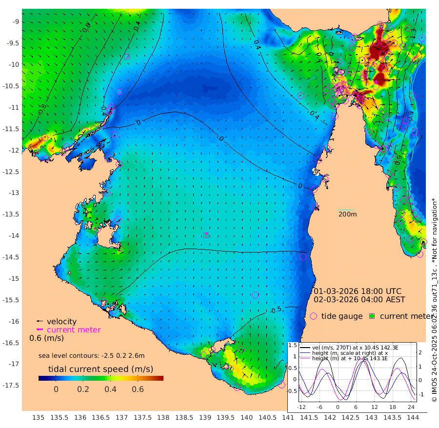 10cm/s 140T +3cm/s rms + 7cm/s -42T. ARA-GOC87 57m 20cm/s 22T +3cm/s rms + 2cm/s -2T. ARA-GOC87 60m 16cm/s 136T +2cm/s rms + 3cm/s 61T. ARA-GOC87 47m -171cm Daru -169cm Bobo Island -99cm Meer Island Barge -135cm Bramble Cay -160cm Unnamed Cay -170cm Pearce Cay -159cm Stephens Island -166cm Merrie England Shoals -172cm Mutacomal Reef -141cm Darnley Island Barge -115cm East Cay -150cm Yorke Island Barge -166cm Rennel Island -161cm Aureed Island -159cm Dungeness Reef -115cm Zagai Island -119cm Yam Island -63cm Dauan Island -47cm Saibai Island -96cm Phipi Reef -129cm Warrior Reef - West -28cm Mabuiag Island Barge -162cm Half Way Island -157cm Coconut Island -166cm Dugong Islet -141cm Poll Island -149cm Kirkcaldie Reef -122cm Suarji Island -124cm Sue Islet 22cm Hawkesbury Island -104cm Alert Patches -110cm Twin Island 12cm Badu Island -101cm St Pauls (Moa Island) -17cm Kubin (Moa Island) -68cm Ince Point -46cm Thursday Island -51cm Nardana Patches -30cm Turtle Head 5cm Round Island 18cm Goods Island 58cm Booby Island 37cm White Rocks Area 85cm Carpentaria -84cm Papou Point 65cm Bampfield Head 47cm Crab Island 41cm Red Wallis Island -12cm Packe Island -180cm Harrington Reef 30cm Herald Camp -31cm Sharp Point -27cm Red Island Point -59cm Possession Island -103cm Alpha Rock -138cm Frederick Point -160cm Wyborn Reef Light -153cm Tetley Island -92cm Triangle Reef -163cm Turtle Head Island -99cm Maclennan Cay -71cm Raine Island -152cm Mcsweeny Reef -140cm Collette Reef -96cm Shadwell Reef -153cm Hannibal Island -141cm Round Point 57cm Vrilya Point -124cm Cape Grenville -116cm Hicks Island -107cm Sir Charles Hardy Island -39cm Harvey Island -105cm Kay Reef -86cm Rocky Island -75cm Chapman Island -69cm Ham Reef -80cm Jubilee Reef -84cm Night Island -76cm Unnamed Reef No. 3 -91cm Morris Island -75cm 1st 3 Mile Opening -85cm Creech Reef -101cm Fife Island -94cm Eden Reef -92cm Stanley Island -107cm Normanby River 62cm Yabooma Island 50cm Hutchison River 61cm Elcho Island 56cm North West Crocodile Island 37cm Cape Wessel 46cm Stevens Island 0cm Guluwuru Island 49cm Hopeful Bay 41cm Auster Point 45cm Two Island Bay 21cm Cadell Strait -33cm Mallison Island 4cm Melville Bay (Gove Harbour) 9cm Truant Island -1cm Cape Arnhem -7cm Cape Grey -16cm Hawk Island -2cm Milner Bay (Groote Eylandt) -22cm Cape Beatrice -26cm West Island -21cm Centre Island -90cm Mornington Island -91cm West Wellesley Islands -91cm Bountiful Island -93cm Albert River Mouth -83cm Sweers Island -102cm Karumba -93cm Nassau River Offshore -74cm Christmas Creek -20cm Archer River 4cm Boyd Point 5cm Weipa (Humbug Point) 19cm Pennefather River 48cm Cullen Point