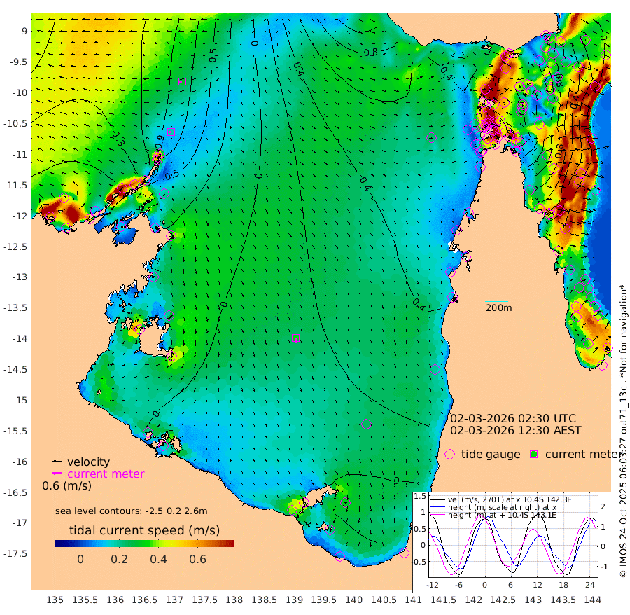19cm/s -94T +3cm/s rms + 7cm/s -42T. ARA-GOC87 57m 33cm/s 170T +3cm/s rms + 2cm/s -2T. ARA-GOC87 60m 30cm/s -95T +2cm/s rms + 3cm/s 61T. ARA-GOC87 47m 133cm Daru 113cm Bobo Island 15cm Meer Island Barge 39cm Bramble Cay 87cm Unnamed Cay 97cm Pearce Cay 75cm Stephens Island 77cm Merrie England Shoals 123cm Mutacomal Reef 64cm Darnley Island Barge 17cm East Cay 97cm Yorke Island Barge 111cm Rennel Island 109cm Aureed Island 141cm Dungeness Reef 170cm Zagai Island 178cm Yam Island 192cm Dauan Island 176cm Saibai Island 186cm Phipi Reef 190cm Warrior Reef - West 159cm Mabuiag Island Barge 110cm Half Way Island 138cm Coconut Island 134cm Dugong Islet 161cm Poll Island 162cm Kirkcaldie Reef 182cm Suarji Island 158cm Sue Islet 120cm Hawkesbury Island 177cm Alert Patches 178cm Twin Island 128cm Badu Island 194cm St Pauls (Moa Island) 137cm Kubin (Moa Island) 167cm Ince Point 156cm Thursday Island 160cm Nardana Patches 139cm Turtle Head 113cm Round Island 103cm Goods Island 85cm Booby Island 85cm White Rocks Area 65cm Carpentaria 162cm Papou Point 76cm Bampfield Head 74cm Crab Island 94cm Red Wallis Island 125cm Packe Island 147cm Harrington Reef 108cm Herald Camp 64cm Sharp Point 123cm Red Island Point 142cm Possession Island 158cm Alpha Rock 165cm Frederick Point 131cm Wyborn Reef Light 143cm Tetley Island 37cm Triangle Reef 132cm Turtle Head Island 27cm Maclennan Cay -9cm Raine Island 86cm Mcsweeny Reef 66cm Collette Reef 22cm Shadwell Reef 62cm Hannibal Island 40cm Round Point 66cm Vrilya Point 32cm Cape Grenville 27cm Hicks Island 28cm Sir Charles Hardy Island 12cm Harvey Island 5cm Kay Reef -2cm Rocky Island -14cm Chapman Island -10cm Ham Reef -2cm Jubilee Reef 5cm Night Island -8cm Unnamed Reef No. 3 -4cm Morris Island -5cm 1st 3 Mile Opening -1cm Creech Reef 4cm Fife Island -24cm Eden Reef -8cm Stanley Island -10cm Normanby River -159cm Yabooma Island -166cm Hutchison River -161cm Elcho Island -149cm North West Crocodile Island -100cm Cape Wessel -143cm Stevens Island -69cm Guluwuru Island -147cm Hopeful Bay -115cm Auster Point -111cm Two Island Bay -125cm Cadell Strait -69cm Mallison Island -71cm Melville Bay (Gove Harbour) -73cm Truant Island -44cm Cape Arnhem -39cm Cape Grey -35cm Hawk Island -49cm Milner Bay (Groote Eylandt) -31cm Cape Beatrice -15cm West Island -22cm Centre Island -4cm Mornington Island -5cm West Wellesley Islands -29cm Bountiful Island -64cm Albert River Mouth -89cm Sweers Island -44cm Karumba 25cm Nassau River Offshore 49cm Christmas Creek 38cm Archer River 54cm Boyd Point 43cm Weipa (Humbug Point) 48cm Pennefather River 61cm Cullen Point