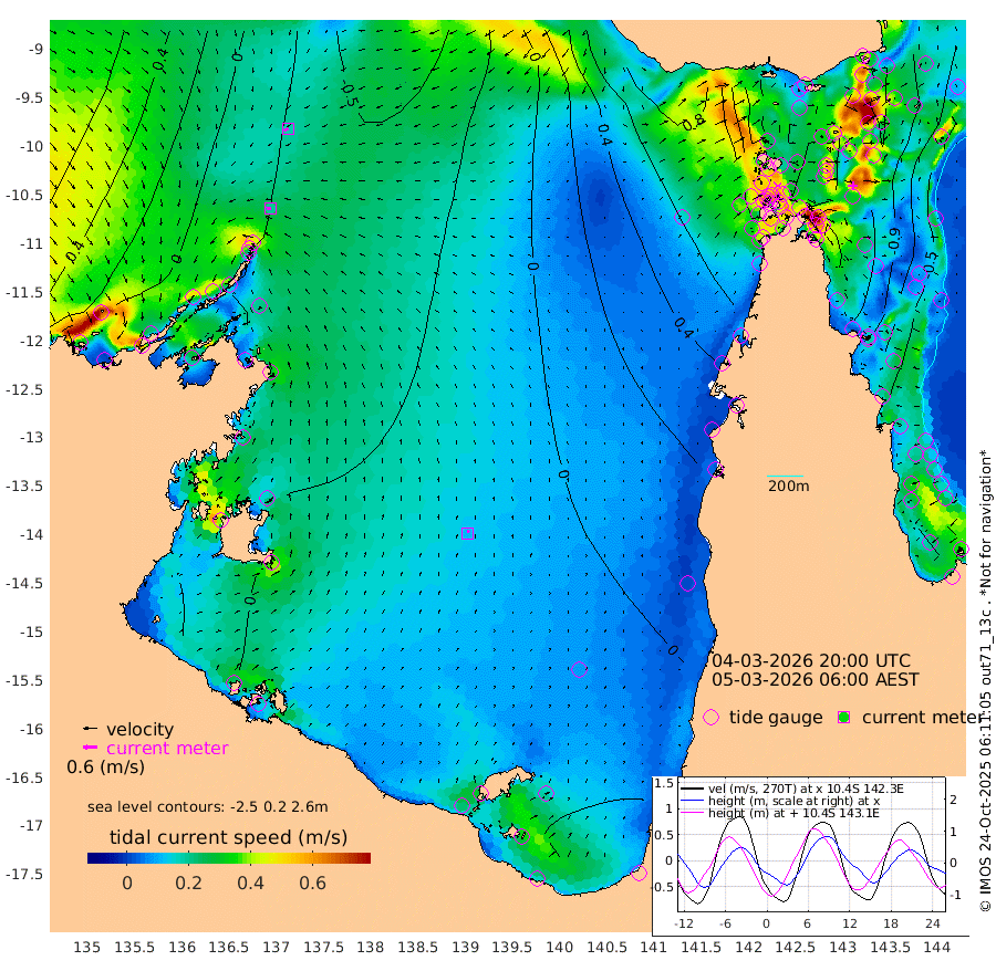 19cm/s -96T +3cm/s rms + 7cm/s -42T. ARA-GOC87 57m 12cm/s 18T +3cm/s rms + 2cm/s -2T. ARA-GOC87 60m 18cm/s -122T +2cm/s rms + 3cm/s 61T. ARA-GOC87 47m -125cm Daru -130cm Bobo Island -55cm Meer Island Barge -83cm Bramble Cay -100cm Unnamed Cay -123cm Pearce Cay -102cm Stephens Island -100cm Merrie England Shoals -116cm Mutacomal Reef -91cm Darnley Island Barge -67cm East Cay -105cm Yorke Island Barge -111cm Rennel Island -118cm Aureed Island -113cm Dungeness Reef -107cm Zagai Island -99cm Yam Island -77cm Dauan Island -68cm Saibai Island -95cm Phipi Reef -120cm Warrior Reef - West -33cm Mabuiag Island Barge -106cm Half Way Island -119cm Coconut Island -109cm Dugong Islet -108cm Poll Island -106cm Kirkcaldie Reef -92cm Suarji Island -97cm Sue Islet 34cm Hawkesbury Island -72cm Alert Patches -83cm Twin Island 14cm Badu Island -82cm St Pauls (Moa Island) -3cm Kubin (Moa Island) -47cm Ince Point -25cm Thursday Island -31cm Nardana Patches -6cm Turtle Head 19cm Round Island 41cm Goods Island 79cm Booby Island 65cm White Rocks Area 99cm Carpentaria -71cm Papou Point 84cm Bampfield Head 58cm Crab Island 62cm Red Wallis Island 11cm Packe Island -124cm Harrington Reef 51cm Herald Camp -27cm Sharp Point -14cm Red Island Point -39cm Possession Island -75cm Alpha Rock -103cm Frederick Point -116cm Wyborn Reef Light -115cm Tetley Island -59cm Triangle Reef -115cm Turtle Head Island -53cm Maclennan Cay -32cm Raine Island -99cm Mcsweeny Reef -88cm Collette Reef -53cm Shadwell Reef -94cm Hannibal Island -86cm Round Point 69cm Vrilya Point -66cm Cape Grenville -67cm Hicks Island -56cm Sir Charles Hardy Island -22cm Harvey Island -50cm Kay Reef -42cm Rocky Island -36cm Chapman Island -31cm Ham Reef -38cm Jubilee Reef -42cm Night Island -36cm Unnamed Reef No. 3 -43cm Morris Island -27cm 1st 3 Mile Opening -38cm Creech Reef -59cm Fife Island -41cm Eden Reef -37cm Stanley Island -51cm Normanby River -5cm Yabooma Island -32cm Hutchison River -12cm Elcho Island -12cm North West Crocodile Island -33cm Cape Wessel -30cm Stevens Island -68cm Guluwuru Island -17cm Hopeful Bay -25cm Auster Point -28cm Two Island Bay -76cm Cadell Strait -129cm Mallison Island -57cm Melville Bay (Gove Harbour) -58cm Truant Island -45cm Cape Arnhem -28cm Cape Grey -29cm Hawk Island 3cm Milner Bay (Groote Eylandt) -3cm Cape Beatrice 18cm West Island 21cm Centre Island -38cm Mornington Island -28cm West Wellesley Islands -26cm Bountiful Island -37cm Albert River Mouth -33cm Sweers Island -48cm Karumba -39cm Nassau River Offshore -26cm Christmas Creek 10cm Archer River 26cm Boyd Point 33cm Weipa (Humbug Point) 35cm Pennefather River 61cm Cullen Point