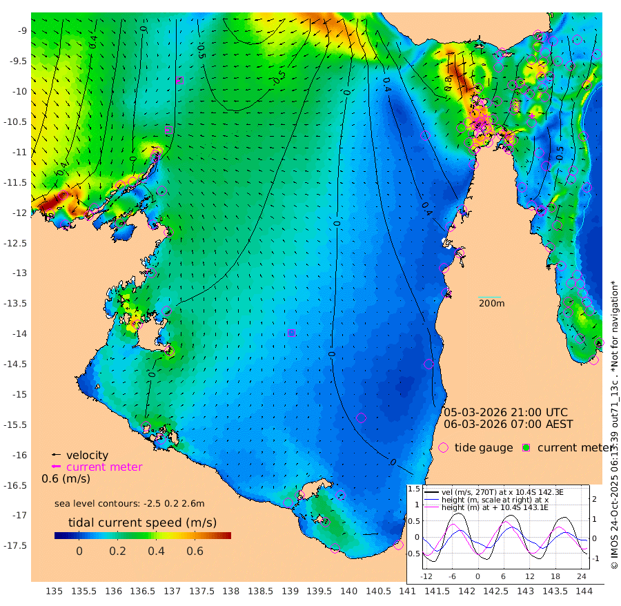 23cm/s -97T +3cm/s rms + 7cm/s -42T. ARA-GOC87 57m 6cm/s 7T +3cm/s rms + 2cm/s -2T. ARA-GOC87 60m 23cm/s -118T +2cm/s rms + 3cm/s 61T. ARA-GOC87 47m -84cm Daru -90cm Bobo Island -24cm Meer Island Barge -42cm Bramble Cay -55cm Unnamed Cay -77cm Pearce Cay -58cm Stephens Island -52cm Merrie England Shoals -71cm Mutacomal Reef -54cm Darnley Island Barge -30cm East Cay -68cm Yorke Island Barge -66cm Rennel Island -79cm Aureed Island -73cm Dungeness Reef -87cm Zagai Island -74cm Yam Island -67cm Dauan Island -66cm Saibai Island -76cm Phipi Reef -96cm Warrior Reef - West -23cm Mabuiag Island Barge -63cm Half Way Island -81cm Coconut Island -66cm Dugong Islet -74cm Poll Island -69cm Kirkcaldie Reef -63cm Suarji Island -70cm Sue Islet 56cm Hawkesbury Island -42cm Alert Patches -54cm Twin Island 32cm Badu Island -58cm St Pauls (Moa Island) 19cm Kubin (Moa Island) -24cm Ince Point -3cm Thursday Island -9cm Nardana Patches 19cm Turtle Head 37cm Round Island 64cm Goods Island 95cm Booby Island 88cm White Rocks Area 97cm Carpentaria -49cm Papou Point 96cm Bampfield Head 69cm Crab Island 79cm Red Wallis Island 35cm Packe Island -78cm Harrington Reef 67cm Herald Camp -24cm Sharp Point 7cm Red Island Point -17cm Possession Island -50cm Alpha Rock -68cm Frederick Point -76cm Wyborn Reef Light -77cm Tetley Island -31cm Triangle Reef -70cm Turtle Head Island -21cm Maclennan Cay -5cm Raine Island -58cm Mcsweeny Reef -49cm Collette Reef -22cm Shadwell Reef -52cm Hannibal Island -43cm Round Point 75cm Vrilya Point -27cm Cape Grenville -30cm Hicks Island -21cm Sir Charles Hardy Island -11cm Harvey Island -13cm Kay Reef -11cm Rocky Island -7cm Chapman Island -5cm Ham Reef -9cm Jubilee Reef -14cm Night Island -7cm Unnamed Reef No. 3 -10cm Morris Island 2cm 1st 3 Mile Opening -8cm Creech Reef -25cm Fife Island -6cm Eden Reef -4cm Stanley Island -12cm Normanby River 18cm Yabooma Island -5cm Hutchison River 7cm Elcho Island 7cm North West Crocodile Island -30cm Cape Wessel -16cm Stevens Island -66cm Guluwuru Island -5cm Hopeful Bay -17cm Auster Point -22cm Two Island Bay -61cm Cadell Strait -152cm Mallison Island -53cm Melville Bay (Gove Harbour) -56cm Truant Island -46cm Cape Arnhem -27cm Cape Grey -29cm Hawk Island -3cm Milner Bay (Groote Eylandt) -3cm Cape Beatrice 15cm West Island 15cm Centre Island -27cm Mornington Island -15cm West Wellesley Islands -8cm Bountiful Island -20cm Albert River Mouth -22cm Sweers Island -30cm Karumba -18cm Nassau River Offshore -6cm Christmas Creek 26cm Archer River 36cm Boyd Point 48cm Weipa (Humbug Point) 41cm Pennefather River 65cm Cullen Point