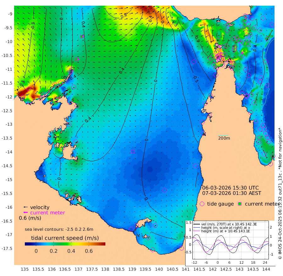 31cm/s 91T +3cm/s rms + 7cm/s -42T. ARA-GOC87 57m 5cm/s 85T +3cm/s rms + 2cm/s -2T. ARA-GOC87 60m 29cm/s 79T +2cm/s rms + 3cm/s 61T. ARA-GOC87 47m 65cm Daru 74cm Bobo Island 24cm Meer Island Barge 33cm Bramble Cay 43cm Unnamed Cay 62cm Pearce Cay 46cm Stephens Island 39cm Merrie England Shoals 50cm Mutacomal Reef 47cm Darnley Island Barge 24cm East Cay 57cm Yorke Island Barge 47cm Rennel Island 69cm Aureed Island 56cm Dungeness Reef 75cm Zagai Island 51cm Yam Island 48cm Dauan Island 54cm Saibai Island 57cm Phipi Reef 74cm Warrior Reef - West 15cm Mabuiag Island Barge 45cm Half Way Island 68cm Coconut Island 46cm Dugong Islet 56cm Poll Island 47cm Kirkcaldie Reef 57cm Suarji Island 56cm Sue Islet -80cm Hawkesbury Island 31cm Alert Patches 38cm Twin Island -38cm Badu Island 42cm St Pauls (Moa Island) -39cm Kubin (Moa Island) 10cm Ince Point -8cm Thursday Island -3cm Nardana Patches -30cm Turtle Head -53cm Round Island -70cm Goods Island -94cm Booby Island -89cm White Rocks Area -78cm Carpentaria 33cm Papou Point -89cm Bampfield Head -77cm Crab Island -88cm Red Wallis Island -55cm Packe Island 60cm Harrington Reef -91cm Herald Camp 17cm Sharp Point -26cm Red Island Point 4cm Possession Island 34cm Alpha Rock 50cm Frederick Point 59cm Wyborn Reef Light 59cm Tetley Island 27cm Triangle Reef 53cm Turtle Head Island 18cm Maclennan Cay 8cm Raine Island 48cm Mcsweeny Reef 42cm Collette Reef 22cm Shadwell Reef 44cm Hannibal Island 32cm Round Point -78cm Vrilya Point 20cm Cape Grenville 23cm Hicks Island 19cm Sir Charles Hardy Island 7cm Harvey Island 12cm Kay Reef 12cm Rocky Island 11cm Chapman Island 7cm Ham Reef 12cm Jubilee Reef 13cm Night Island 9cm Unnamed Reef No. 3 11cm Morris Island 6cm 1st 3 Mile Opening 10cm Creech Reef 20cm Fife Island 10cm Eden Reef 4cm Stanley Island 8cm Normanby River -33cm Yabooma Island -7cm Hutchison River -17cm Elcho Island -25cm North West Crocodile Island 34cm Cape Wessel 9cm Stevens Island 78cm Guluwuru Island -1cm Hopeful Bay 18cm Auster Point 11cm Two Island Bay 44cm Cadell Strait 172cm Mallison Island 63cm Melville Bay (Gove Harbour) 68cm Truant Island 58cm Cape Arnhem 44cm Cape Grey 34cm Hawk Island 20cm Milner Bay (Groote Eylandt) 10cm Cape Beatrice -2cm West Island -1cm Centre Island 17cm Mornington Island 10cm West Wellesley Islands 11cm Bountiful Island 9cm Albert River Mouth 26cm Sweers Island 6cm Karumba 1cm Nassau River Offshore -11cm Christmas Creek -33cm Archer River -39cm Boyd Point -52cm Weipa (Humbug Point) -44cm Pennefather River -72cm Cullen Point