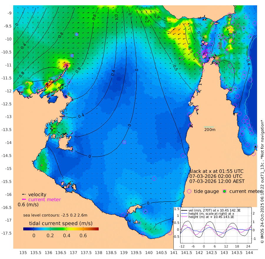 11cm/s 84T +3cm/s rms + 7cm/s -42T. ARA-GOC87 57m 11cm/s -148T +3cm/s rms + 2cm/s -2T. ARA-GOC87 60m 13cm/s 60T +2cm/s rms + 3cm/s 61T. ARA-GOC87 47m 77cm Daru 77cm Bobo Island 37cm Meer Island Barge 58cm Bramble Cay 69cm Unnamed Cay 72cm Pearce Cay 62cm Stephens Island 65cm Merrie England Shoals 78cm Mutacomal Reef 54cm Darnley Island Barge 44cm East Cay 62cm Yorke Island Barge 70cm Rennel Island 68cm Aureed Island 66cm Dungeness Reef 71cm Zagai Island 68cm Yam Island 70cm Dauan Island 62cm Saibai Island 60cm Phipi Reef 82cm Warrior Reef - West 36cm Mabuiag Island Barge 58cm Half Way Island 70cm Coconut Island 64cm Dugong Islet 67cm Poll Island 54cm Kirkcaldie Reef 61cm Suarji Island 58cm Sue Islet 0cm Hawkesbury Island 43cm Alert Patches 50cm Twin Island 11cm Badu Island 51cm St Pauls (Moa Island) 21cm Kubin (Moa Island) 34cm Ince Point 19cm Thursday Island 25cm Nardana Patches 15cm Turtle Head 8cm Round Island -6cm Goods Island -36cm Booby Island -20cm White Rocks Area -66cm Carpentaria 42cm Papou Point -25cm Bampfield Head -44cm Crab Island -26cm Red Wallis Island 9cm Packe Island 67cm Harrington Reef -12cm Herald Camp 10cm Sharp Point 1cm Red Island Point 23cm Possession Island 56cm Alpha Rock 61cm Frederick Point 82cm Wyborn Reef Light 81cm Tetley Island 44cm Triangle Reef 63cm Turtle Head Island 36cm Maclennan Cay 25cm Raine Island 63cm Mcsweeny Reef 56cm Collette Reef 37cm Shadwell Reef 60cm Hannibal Island 61cm Round Point -67cm Vrilya Point 44cm Cape Grenville 44cm Hicks Island 50cm Sir Charles Hardy Island 13cm Harvey Island 38cm Kay Reef 34cm Rocky Island 33cm Chapman Island 27cm Ham Reef 30cm Jubilee Reef 28cm Night Island 28cm Unnamed Reef No. 3 33cm Morris Island 22cm 1st 3 Mile Opening 26cm Creech Reef 41cm Fife Island 34cm Eden Reef 27cm Stanley Island 38cm Normanby River 136cm Yabooma Island 171cm Hutchison River 138cm Elcho Island 131cm North West Crocodile Island 110cm Cape Wessel 138cm Stevens Island 120cm Guluwuru Island 119cm Hopeful Bay 107cm Auster Point 110cm Two Island Bay 155cm Cadell Strait 152cm Mallison Island 110cm Melville Bay (Gove Harbour) 115cm Truant Island 75cm Cape Arnhem 43cm Cape Grey 37cm Hawk Island -3cm Milner Bay (Groote Eylandt) -4cm Cape Beatrice -45cm West Island -56cm Centre Island -14cm Mornington Island -14cm West Wellesley Islands 5cm Bountiful Island 15cm Albert River Mouth 1cm Sweers Island 4cm Karumba -9cm Nassau River Offshore -11cm Christmas Creek -26cm Archer River -24cm Boyd Point -21cm Weipa (Humbug Point) -55cm Pennefather River -46cm Cullen Point
