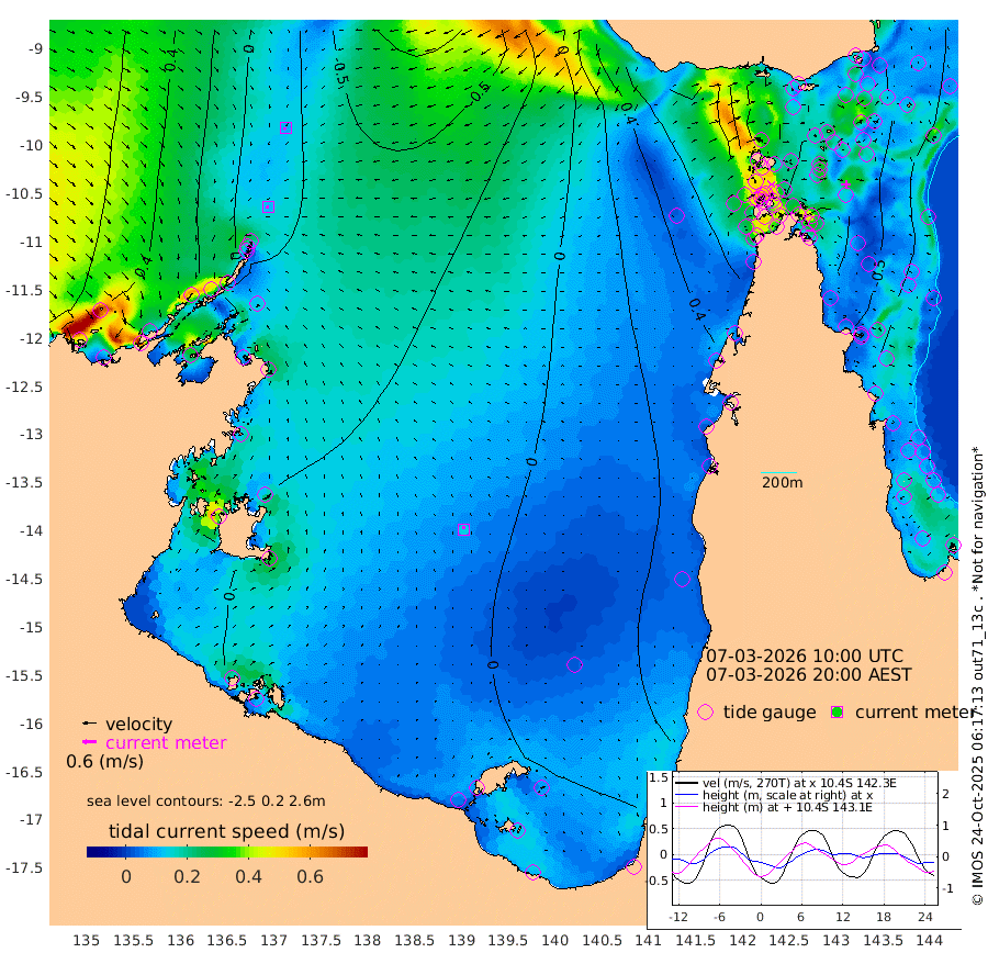 11cm/s -114T +3cm/s rms + 7cm/s -42T. ARA-GOC87 57m 14cm/s -12T +3cm/s rms + 2cm/s -2T. ARA-GOC87 60m 10cm/s -142T +2cm/s rms + 3cm/s 61T. ARA-GOC87 47m -64cm Daru -68cm Bobo Island -26cm Meer Island Barge -34cm Bramble Cay -47cm Unnamed Cay -55cm Pearce Cay -45cm Stephens Island -38cm Merrie England Shoals -56cm Mutacomal Reef -48cm Darnley Island Barge -25cm East Cay -59cm Yorke Island Barge -50cm Rennel Island -68cm Aureed Island -59cm Dungeness Reef -84cm Zagai Island -67cm Yam Island -78cm Dauan Island -84cm Saibai Island -65cm Phipi Reef -90cm Warrior Reef - West -37cm Mabuiag Island Barge -45cm Half Way Island -64cm Coconut Island -54cm Dugong Islet -62cm Poll Island -49cm Kirkcaldie Reef -71cm Suarji Island -66cm Sue Islet 53cm Hawkesbury Island -41cm Alert Patches -48cm Twin Island 20cm Badu Island -56cm St Pauls (Moa Island) 13cm Kubin (Moa Island) -27cm Ince Point -9cm Thursday Island -16cm Nardana Patches 8cm Turtle Head 32cm Round Island 44cm Goods Island 67cm Booby Island 61cm White Rocks Area 48cm Carpentaria -40cm Papou Point 59cm Bampfield Head 70cm Crab Island 59cm Red Wallis Island 29cm Packe Island -58cm Harrington Reef 56cm Herald Camp -19cm Sharp Point 21cm Red Island Point -11cm Possession Island -52cm Alpha Rock -55cm Frederick Point -62cm Wyborn Reef Light -63cm Tetley Island -33cm Triangle Reef -43cm Turtle Head Island -25cm Maclennan Cay -10cm Raine Island -49cm Mcsweeny Reef -42cm Collette Reef -25cm Shadwell Reef -44cm Hannibal Island -30cm Round Point 76cm Vrilya Point -24cm Cape Grenville -24cm Hicks Island -37cm Sir Charles Hardy Island -8cm Harvey Island -18cm Kay Reef -18cm Rocky Island -16cm Chapman Island -15cm Ham Reef -17cm Jubilee Reef -15cm Night Island -14cm Unnamed Reef No. 3 -16cm Morris Island -12cm 1st 3 Mile Opening -15cm Creech Reef -21cm Fife Island -15cm Eden Reef -9cm Stanley Island -12cm Normanby River 45cm Yabooma Island 22cm Hutchison River 31cm Elcho Island 38cm North West Crocodile Island -27cm Cape Wessel 12cm Stevens Island -72cm Guluwuru Island 18cm Hopeful Bay -1cm Auster Point 2cm Two Island Bay -13cm Cadell Strait -164cm Mallison Island -54cm Melville Bay (Gove Harbour) -58cm Truant Island -50cm Cape Arnhem -34cm Cape Grey -24cm Hawk Island -7cm Milner Bay (Groote Eylandt) -5cm Cape Beatrice 4cm West Island 11cm Centre Island -8cm Mornington Island -10cm West Wellesley Islands -16cm Bountiful Island -1cm Albert River Mouth 2cm Sweers Island 13cm Karumba 1cm Nassau River Offshore 4cm Christmas Creek 28cm Archer River 22cm Boyd Point 32cm Weipa (Humbug Point) 55cm Pennefather River 55cm Cullen Point