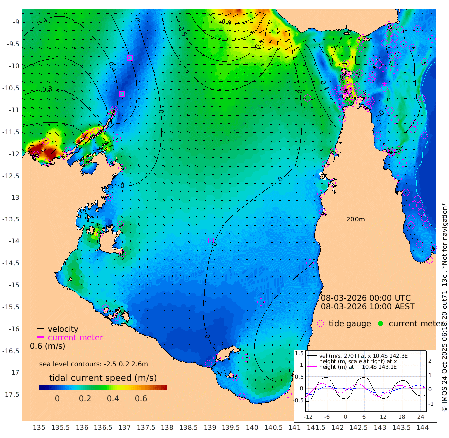 15cm/s -106T +3cm/s rms + 7cm/s -42T. ARA-GOC87 57m 9cm/s -121T +3cm/s rms + 2cm/s -2T. ARA-GOC87 60m 14cm/s -116T +2cm/s rms + 3cm/s 61T. ARA-GOC87 47m 30cm Daru 21cm Bobo Island 20cm Meer Island Barge 32cm Bramble Cay 38cm Unnamed Cay 30cm Pearce Cay 30cm Stephens Island 38cm Merrie England Shoals 39cm Mutacomal Reef 19cm Darnley Island Barge 25cm East Cay 20cm Yorke Island Barge 37cm Rennel Island 19cm Aureed Island 35cm Dungeness Reef 16cm Zagai Island 30cm Yam Island 33cm Dauan Island 15cm Saibai Island 37cm Phipi Reef 24cm Warrior Reef - West 39cm Mabuiag Island Barge 30cm Half Way Island 27cm Coconut Island 34cm Dugong Islet 32cm Poll Island 32cm Kirkcaldie Reef 40cm Suarji Island 21cm Sue Islet 81cm Hawkesbury Island 44cm Alert Patches 37cm Twin Island 76cm Badu Island 36cm St Pauls (Moa Island) 67cm Kubin (Moa Island) 47cm Ince Point 52cm Thursday Island 51cm Nardana Patches 68cm Turtle Head 66cm Round Island 83cm Goods Island 77cm Booby Island 89cm White Rocks Area 25cm Carpentaria 31cm Papou Point 75cm Bampfield Head 51cm Crab Island 71cm Red Wallis Island 69cm Packe Island 32cm Harrington Reef 69cm Herald Camp 0cm Sharp Point 50cm Red Island Point 41cm Possession Island 32cm Alpha Rock 33cm Frederick Point 36cm Wyborn Reef Light 34cm Tetley Island 20cm Triangle Reef 36cm Turtle Head Island 25cm Maclennan Cay 24cm Raine Island 30cm Mcsweeny Reef 27cm Collette Reef 23cm Shadwell Reef 29cm Hannibal Island 35cm Round Point 31cm Vrilya Point 29cm Cape Grenville 28cm Hicks Island 31cm Sir Charles Hardy Island 7cm Harvey Island 29cm Kay Reef 27cm Rocky Island 24cm Chapman Island 20cm Ham Reef 23cm Jubilee Reef 20cm Night Island 21cm Unnamed Reef No. 3 29cm Morris Island 30cm 1st 3 Mile Opening 23cm Creech Reef 22cm Fife Island 28cm Eden Reef 27cm Stanley Island 30cm Normanby River 125cm Yabooma Island 137cm Hutchison River 115cm Elcho Island 115cm North West Crocodile Island 36cm Cape Wessel 86cm Stevens Island 15cm Guluwuru Island 77cm Hopeful Bay 57cm Auster Point 51cm Two Island Bay 69cm Cadell Strait -99cm Mallison Island 25cm Melville Bay (Gove Harbour) 21cm Truant Island 5cm Cape Arnhem 8cm Cape Grey 2cm Hawk Island -6cm Milner Bay (Groote Eylandt) 1cm Cape Beatrice -14cm West Island -23cm Centre Island -2cm Mornington Island 6cm West Wellesley Islands 37cm Bountiful Island 41cm Albert River Mouth 24cm Sweers Island 32cm Karumba 16cm Nassau River Offshore 19cm Christmas Creek 26cm Archer River 26cm Boyd Point 43cm Weipa (Humbug Point) 13cm Pennefather River 30cm Cullen Point