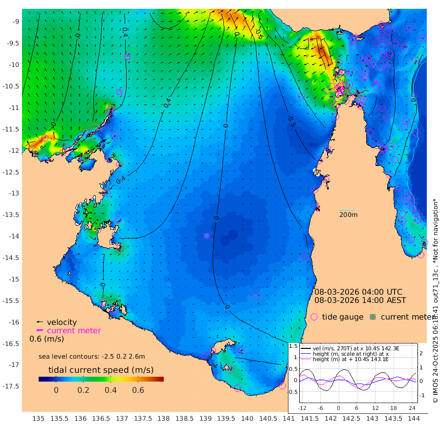 13cm/s 37T +3cm/s rms + 7cm/s -42T. ARA-GOC87 57m 7cm/s -146T +3cm/s rms + 2cm/s -2T. ARA-GOC87 60m 16cm/s 24T +2cm/s rms + 3cm/s 61T. ARA-GOC87 47m 28cm Daru 29cm Bobo Island -3cm Meer Island Barge 4cm Bramble Cay 11cm Unnamed Cay 13cm Pearce Cay 8cm Stephens Island 5cm Merrie England Shoals 22cm Mutacomal Reef 10cm Darnley Island Barge -4cm East Cay 19cm Yorke Island Barge 14cm Rennel Island 24cm Aureed Island 17cm Dungeness Reef 48cm Zagai Island 37cm Yam Island 54cm Dauan Island 58cm Saibai Island 35cm Phipi Reef 57cm Warrior Reef - West 8cm Mabuiag Island Barge 7cm Half Way Island 22cm Coconut Island 13cm Dugong Islet 24cm Poll Island 11cm Kirkcaldie Reef 20cm Suarji Island 27cm Sue Islet -75cm Hawkesbury Island -5cm Alert Patches 6cm Twin Island -54cm Badu Island 13cm St Pauls (Moa Island) -40cm Kubin (Moa Island) -11cm Ince Point -29cm Thursday Island -22cm Nardana Patches -44cm Turtle Head -55cm Round Island -77cm Goods Island -103cm Booby Island -95cm White Rocks Area -91cm Carpentaria 6cm Papou Point -99cm Bampfield Head -91cm Crab Island -88cm Red Wallis Island -55cm Packe Island 11cm Harrington Reef -74cm Herald Camp 11cm Sharp Point -49cm Red Island Point -25cm Possession Island 19cm Alpha Rock 13cm Frederick Point 25cm Wyborn Reef Light 28cm Tetley Island 6cm Triangle Reef -3cm Turtle Head Island -5cm Maclennan Cay -14cm Raine Island 11cm Mcsweeny Reef 8cm Collette Reef -3cm Shadwell Reef 7cm Hannibal Island 0cm Round Point -101cm Vrilya Point -6cm Cape Grenville -5cm Hicks Island 5cm Sir Charles Hardy Island -2cm Harvey Island -11cm Kay Reef -9cm Rocky Island -10cm Chapman Island -9cm Ham Reef -10cm Jubilee Reef -9cm Night Island -11cm Unnamed Reef No. 3 -12cm Morris Island -20cm 1st 3 Mile Opening -14cm Creech Reef -2cm Fife Island -14cm Eden Reef -17cm Stanley Island -14cm Normanby River 10cm Yabooma Island 33cm Hutchison River 24cm Elcho Island 20cm North West Crocodile Island 51cm Cape Wessel 38cm Stevens Island 82cm Guluwuru Island 30cm Hopeful Bay 31cm Auster Point 38cm Two Island Bay 60cm Cadell Strait 184cm Mallison Island 65cm Melville Bay (Gove Harbour) 69cm Truant Island 54cm Cape Arnhem 32cm Cape Grey 34cm Hawk Island 13cm Milner Bay (Groote Eylandt) 14cm Cape Beatrice -3cm West Island -9cm Centre Island 23cm Mornington Island 21cm West Wellesley Islands 25cm Bountiful Island 46cm Albert River Mouth 34cm Sweers Island 32cm Karumba 5cm Nassau River Offshore -10cm Christmas Creek -44cm Archer River -44cm Boyd Point -52cm Weipa (Humbug Point) -75cm Pennefather River -74cm Cullen Point