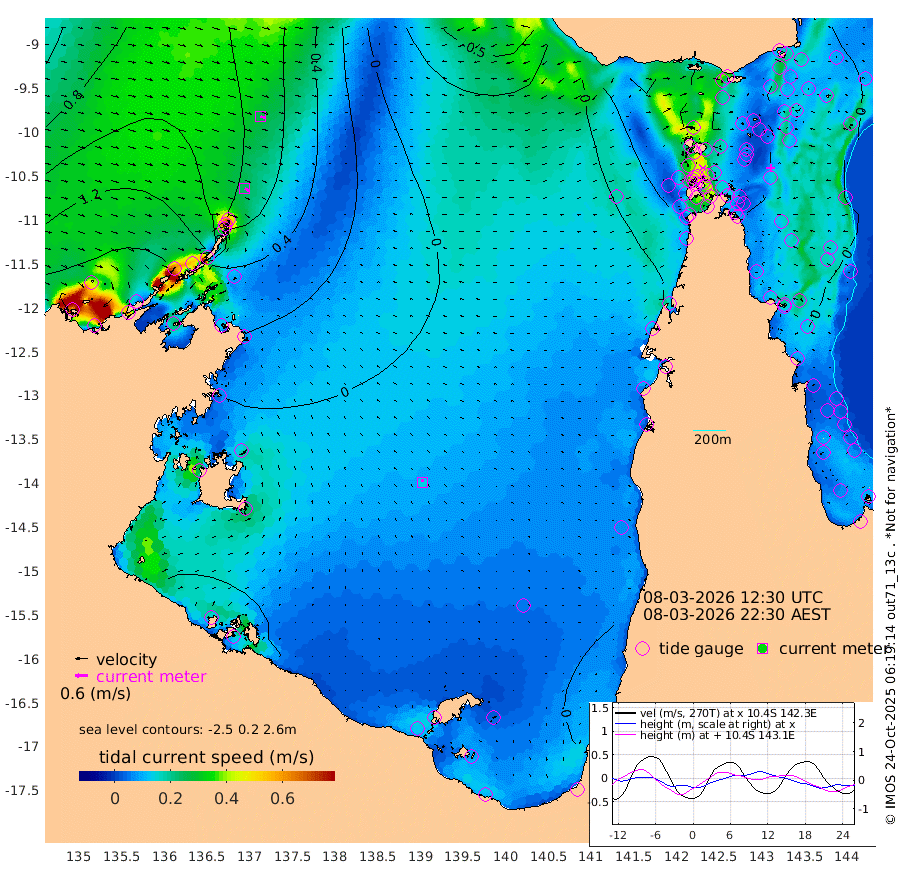 24cm/s 122T +3cm/s rms + 7cm/s -42T. ARA-GOC87 57m 14cm/s -11T +3cm/s rms + 2cm/s -2T. ARA-GOC87 60m 26cm/s 112T +2cm/s rms + 3cm/s 61T. ARA-GOC87 47m 4cm Daru 2cm Bobo Island -1cm Meer Island Barge 8cm Bramble Cay 6cm Unnamed Cay 8cm Pearce Cay 3cm Stephens Island 11cm Merrie England Shoals 6cm Mutacomal Reef -6cm Darnley Island Barge 3cm East Cay -7cm Yorke Island Barge 5cm Rennel Island -9cm Aureed Island 2cm Dungeness Reef -12cm Zagai Island -6cm Yam Island -10cm Dauan Island -25cm Saibai Island 7cm Phipi Reef -14cm Warrior Reef - West 7cm Mabuiag Island Barge 3cm Half Way Island 4cm Coconut Island -4cm Dugong Islet 1cm Poll Island 3cm Kirkcaldie Reef -6cm Suarji Island -10cm Sue Islet 60cm Hawkesbury Island 10cm Alert Patches 6cm Twin Island 52cm Badu Island 3cm St Pauls (Moa Island) 39cm Kubin (Moa Island) 14cm Ince Point 21cm Thursday Island 19cm Nardana Patches 32cm Turtle Head 51cm Round Island 49cm Goods Island 49cm Booby Island 52cm White Rocks Area 3cm Carpentaria 10cm Papou Point 56cm Bampfield Head 50cm Crab Island 42cm Red Wallis Island 40cm Packe Island 2cm Harrington Reef 45cm Herald Camp -7cm Sharp Point 37cm Red Island Point 27cm Possession Island -3cm Alpha Rock 5cm Frederick Point 10cm Wyborn Reef Light 9cm Tetley Island -2cm Triangle Reef 25cm Turtle Head Island -4cm Maclennan Cay 6cm Raine Island 2cm Mcsweeny Reef 2cm Collette Reef 1cm Shadwell Reef 3cm Hannibal Island 14cm Round Point 39cm Vrilya Point 2cm Cape Grenville 6cm Hicks Island -11cm Sir Charles Hardy Island 0cm Harvey Island 2cm Kay Reef 1cm Rocky Island 1cm Chapman Island -4cm Ham Reef -1cm Jubilee Reef 0cm Night Island -3cm Unnamed Reef No. 3 3cm Morris Island 3cm 1st 3 Mile Opening -2cm Creech Reef 2cm Fife Island 1cm Eden Reef 1cm Stanley Island 4cm Normanby River 170cm Yabooma Island 184cm Hutchison River 160cm Elcho Island 158cm North West Crocodile Island 77cm Cape Wessel 146cm Stevens Island 47cm Guluwuru Island 131cm Hopeful Bay 108cm Auster Point 107cm Two Island Bay 142cm Cadell Strait -27cm Mallison Island 58cm Melville Bay (Gove Harbour) 60cm Truant Island 28cm Cape Arnhem 16cm Cape Grey 12cm Hawk Island -5cm Milner Bay (Groote Eylandt) -15cm Cape Beatrice -47cm West Island -44cm Centre Island -41cm Mornington Island -50cm West Wellesley Islands -39cm Bountiful Island -20cm Albert River Mouth -12cm Sweers Island -10cm Karumba -28cm Nassau River Offshore -22cm Christmas Creek 5cm Archer River 0cm Boyd Point 11cm Weipa (Humbug Point) 28cm Pennefather River 22cm Cullen Point