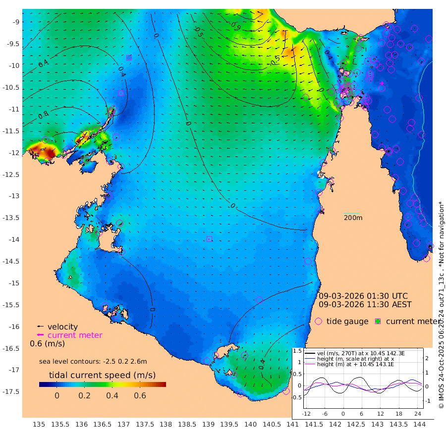9cm/s -95T +3cm/s rms + 7cm/s -42T. ARA-GOC87 57m 12cm/s -123T +3cm/s rms + 2cm/s -2T. ARA-GOC87 60m 7cm/s -89T +2cm/s rms + 3cm/s 61T. ARA-GOC87 47m 43cm Daru 32cm Bobo Island 7cm Meer Island Barge 21cm Bramble Cay 33cm Unnamed Cay 31cm Pearce Cay 24cm Stephens Island 27cm Merrie England Shoals 42cm Mutacomal Reef 15cm Darnley Island Barge 10cm East Cay 24cm Yorke Island Barge 37cm Rennel Island 27cm Aureed Island 46cm Dungeness Reef 52cm Zagai Island 56cm Yam Island 80cm Dauan Island 61cm Saibai Island 81cm Phipi Reef 65cm Warrior Reef - West 57cm Mabuiag Island Barge 28cm Half Way Island 39cm Coconut Island 36cm Dugong Islet 48cm Poll Island 43cm Kirkcaldie Reef 59cm Suarji Island 39cm Sue Islet 50cm Hawkesbury Island 51cm Alert Patches 48cm Twin Island 64cm Badu Island 55cm St Pauls (Moa Island) 54cm Kubin (Moa Island) 51cm Ince Point 46cm Thursday Island 50cm Nardana Patches 55cm Turtle Head 45cm Round Island 50cm Goods Island 30cm Booby Island 41cm White Rocks Area -23cm Carpentaria 45cm Papou Point 24cm Bampfield Head 15cm Crab Island 28cm Red Wallis Island 44cm Packe Island 35cm Harrington Reef 34cm Herald Camp 11cm Sharp Point 39cm Red Island Point 38cm Possession Island 42cm Alpha Rock 44cm Frederick Point 42cm Wyborn Reef Light 44cm Tetley Island 13cm Triangle Reef 35cm Turtle Head Island 10cm Maclennan Cay 6cm Raine Island 27cm Mcsweeny Reef 21cm Collette Reef 11cm Shadwell Reef 21cm Hannibal Island 20cm Round Point -11cm Vrilya Point 11cm Cape Grenville 14cm Hicks Island 16cm Sir Charles Hardy Island 3cm Harvey Island 6cm Kay Reef 8cm Rocky Island 4cm Chapman Island 0cm Ham Reef 5cm Jubilee Reef 3cm Night Island 0cm Unnamed Reef No. 3 8cm Morris Island 8cm 1st 3 Mile Opening 3cm Creech Reef 6cm Fife Island 3cm Eden Reef 2cm Stanley Island 4cm Normanby River 116cm Yabooma Island 141cm Hutchison River 115cm Elcho Island 115cm North West Crocodile Island 45cm Cape Wessel 92cm Stevens Island 46cm Guluwuru Island 77cm Hopeful Bay 61cm Auster Point 57cm Two Island Bay 94cm Cadell Strait -35cm Mallison Island 50cm Melville Bay (Gove Harbour) 45cm Truant Island 27cm Cape Arnhem 25cm Cape Grey 19cm Hawk Island 3cm Milner Bay (Groote Eylandt) 10cm Cape Beatrice -11cm West Island -22cm Centre Island 22cm Mornington Island 24cm West Wellesley Islands 62cm Bountiful Island 81cm Albert River Mouth 61cm Sweers Island 70cm Karumba 29cm Nassau River Offshore 22cm Christmas Creek 10cm Archer River 6cm Boyd Point 20cm Weipa (Humbug Point) -14cm Pennefather River -4cm Cullen Point