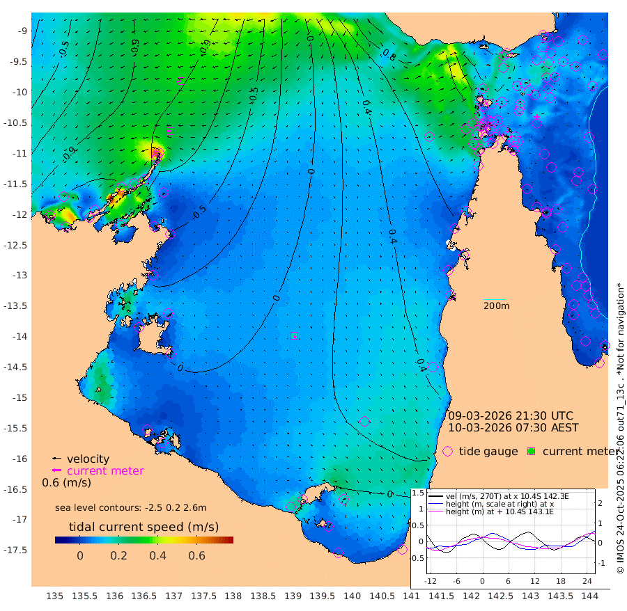 29cm/s -93T +3cm/s rms + 7cm/s -42T. ARA-GOC87 57m 17cm/s 165T +3cm/s rms + 2cm/s -2T. ARA-GOC87 60m 34cm/s -104T +2cm/s rms + 3cm/s 61T. ARA-GOC87 47m 28cm Daru 29cm Bobo Island 39cm Meer Island Barge 37cm Bramble Cay 39cm Unnamed Cay 43cm Pearce Cay 44cm Stephens Island 42cm Merrie England Shoals 34cm Mutacomal Reef 41cm Darnley Island Barge 44cm East Cay 37cm Yorke Island Barge 42cm Rennel Island 40cm Aureed Island 39cm Dungeness Reef 7cm Zagai Island 17cm Yam Island -6cm Dauan Island -5cm Saibai Island 4cm Phipi Reef 8cm Warrior Reef - West 20cm Mabuiag Island Barge 45cm Half Way Island 33cm Coconut Island 49cm Dugong Islet 31cm Poll Island 40cm Kirkcaldie Reef 40cm Suarji Island 30cm Sue Islet 68cm Hawkesbury Island 49cm Alert Patches 42cm Twin Island 48cm Badu Island 34cm St Pauls (Moa Island) 51cm Kubin (Moa Island) 45cm Ince Point 54cm Thursday Island 49cm Nardana Patches 61cm Turtle Head 51cm Round Island 74cm Goods Island 89cm Booby Island 87cm White Rocks Area 92cm Carpentaria 29cm Papou Point 83cm Bampfield Head 66cm Crab Island 83cm Red Wallis Island 66cm Packe Island 51cm Harrington Reef 73cm Herald Camp 5cm Sharp Point 57cm Red Island Point 47cm Possession Island 31cm Alpha Rock 41cm Frederick Point 28cm Wyborn Reef Light 26cm Tetley Island 34cm Triangle Reef 44cm Turtle Head Island 46cm Maclennan Cay 37cm Raine Island 41cm Mcsweeny Reef 39cm Collette Reef 36cm Shadwell Reef 42cm Hannibal Island 42cm Round Point 75cm Vrilya Point 48cm Cape Grenville 42cm Hicks Island 47cm Sir Charles Hardy Island 15cm Harvey Island 48cm Kay Reef 42cm Rocky Island 42cm Chapman Island 42cm Ham Reef 41cm Jubilee Reef 39cm Night Island 45cm Unnamed Reef No. 3 45cm Morris Island 46cm 1st 3 Mile Opening 47cm Creech Reef 40cm Fife Island 48cm Eden Reef 49cm Stanley Island 50cm Normanby River -122cm Yabooma Island -148cm Hutchison River -131cm Elcho Island -125cm North West Crocodile Island -99cm Cape Wessel -136cm Stevens Island -108cm Guluwuru Island -117cm Hopeful Bay -102cm Auster Point -111cm Two Island Bay -150cm Cadell Strait -168cm Mallison Island -98cm Melville Bay (Gove Harbour) -103cm Truant Island -70cm Cape Arnhem -45cm Cape Grey -42cm Hawk Island -27cm Milner Bay (Groote Eylandt) -14cm Cape Beatrice 20cm West Island 19cm Centre Island 5cm Mornington Island 15cm West Wellesley Islands 7cm Bountiful Island -44cm Albert River Mouth -42cm Sweers Island -31cm Karumba 28cm Nassau River Offshore 45cm Christmas Creek 55cm Archer River 59cm Boyd Point 61cm Weipa (Humbug Point) 56cm Pennefather River 66cm Cullen Point