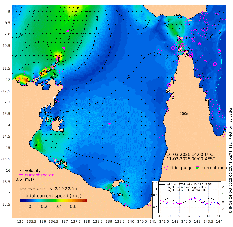 31cm/s 116T +3cm/s rms + 7cm/s -42T. ARA-GOC87 57m 14cm/s 7T +3cm/s rms + 2cm/s -2T. ARA-GOC87 60m 32cm/s 108T +2cm/s rms + 3cm/s 61T. ARA-GOC87 47m -3cm Daru -8cm Bobo Island -20cm Meer Island Barge -19cm Bramble Cay -14cm Unnamed Cay -10cm Pearce Cay -16cm Stephens Island -17cm Merrie England Shoals -11cm Mutacomal Reef -21cm Darnley Island Barge -24cm East Cay -15cm Yorke Island Barge -10cm Rennel Island -16cm Aureed Island -1cm Dungeness Reef 12cm Zagai Island 11cm Yam Island 25cm Dauan Island 10cm Saibai Island 27cm Phipi Reef 7cm Warrior Reef - West 27cm Mabuiag Island Barge -9cm Half Way Island 0cm Coconut Island -11cm Dugong Islet 6cm Poll Island 3cm Kirkcaldie Reef 9cm Suarji Island -2cm Sue Islet 48cm Hawkesbury Island 15cm Alert Patches 15cm Twin Island 52cm Badu Island 23cm St Pauls (Moa Island) 44cm Kubin (Moa Island) 24cm Ince Point 28cm Thursday Island 28cm Nardana Patches 31cm Turtle Head 51cm Round Island 40cm Goods Island 41cm Booby Island 38cm White Rocks Area 12cm Carpentaria 23cm Papou Point 55cm Bampfield Head 40cm Crab Island 33cm Red Wallis Island 35cm Packe Island -7cm Harrington Reef 42cm Herald Camp 1cm Sharp Point 26cm Red Island Point 32cm Possession Island 6cm Alpha Rock 7cm Frederick Point 2cm Wyborn Reef Light 6cm Tetley Island -17cm Triangle Reef 15cm Turtle Head Island -23cm Maclennan Cay -18cm Raine Island -15cm Mcsweeny Reef -19cm Collette Reef -20cm Shadwell Reef -21cm Hannibal Island -17cm Round Point 29cm Vrilya Point -26cm Cape Grenville -18cm Hicks Island -32cm Sir Charles Hardy Island -7cm Harvey Island -31cm Kay Reef -25cm Rocky Island -28cm Chapman Island -29cm Ham Reef -24cm Jubilee Reef -21cm Night Island -31cm Unnamed Reef No. 3 -25cm Morris Island -18cm 1st 3 Mile Opening -26cm Creech Reef -26cm Fife Island -31cm Eden Reef -29cm Stanley Island -31cm Normanby River 153cm Yabooma Island 171cm Hutchison River 148cm Elcho Island 142cm North West Crocodile Island 87cm Cape Wessel 139cm Stevens Island 71cm Guluwuru Island 119cm Hopeful Bay 110cm Auster Point 116cm Two Island Bay 145cm Cadell Strait 8cm Mallison Island 74cm Melville Bay (Gove Harbour) 81cm Truant Island 46cm Cape Arnhem 23cm Cape Grey 14cm Hawk Island -4cm Milner Bay (Groote Eylandt) -21cm Cape Beatrice -56cm West Island -53cm Centre Island -66cm Mornington Island -78cm West Wellesley Islands -74cm Bountiful Island -58cm Albert River Mouth -53cm Sweers Island -55cm Karumba -60cm Nassau River Offshore -49cm Christmas Creek -20cm Archer River -10cm Boyd Point -6cm Weipa (Humbug Point) 14cm Pennefather River 17cm Cullen Point