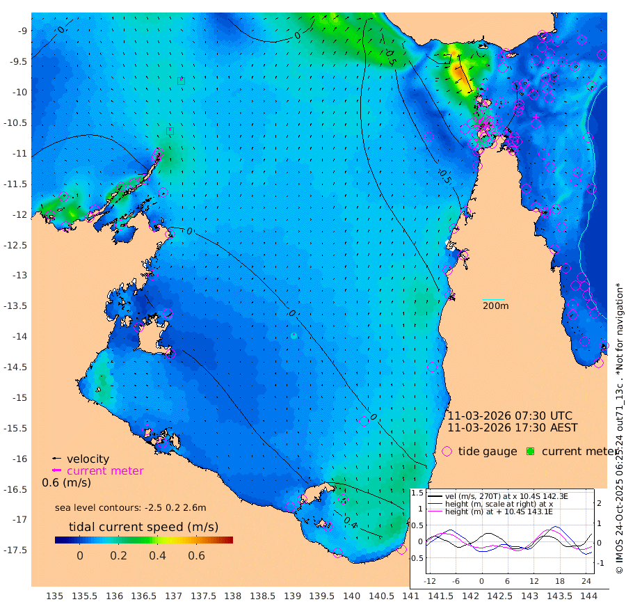 17cm/s -4T +3cm/s rms + 7cm/s -42T. ARA-GOC87 57m 14cm/s -12T +3cm/s rms + 2cm/s -2T. ARA-GOC87 60m 17cm/s 6T +2cm/s rms + 3cm/s 61T. ARA-GOC87 47m -52cm Daru -43cm Bobo Island -17cm Meer Island Barge -21cm Bramble Cay -37cm Unnamed Cay -48cm Pearce Cay -35cm Stephens Island -29cm Merrie England Shoals -43cm Mutacomal Reef -27cm Darnley Island Barge -17cm East Cay -38cm Yorke Island Barge -48cm Rennel Island -42cm Aureed Island -67cm Dungeness Reef -68cm Zagai Island -75cm Yam Island -97cm Dauan Island -73cm Saibai Island -104cm Phipi Reef -76cm Warrior Reef - West -96cm Mabuiag Island Barge -47cm Half Way Island -59cm Coconut Island -55cm Dugong Islet -71cm Poll Island -71cm Kirkcaldie Reef -93cm Suarji Island -62cm Sue Islet -146cm Hawkesbury Island -101cm Alert Patches -93cm Twin Island -140cm Badu Island -102cm St Pauls (Moa Island) -131cm Kubin (Moa Island) -106cm Ince Point -114cm Thursday Island -112cm Nardana Patches -125cm Turtle Head -133cm Round Island -138cm Goods Island -140cm Booby Island -134cm White Rocks Area -91cm Carpentaria -88cm Papou Point -150cm Bampfield Head -112cm Crab Island -127cm Red Wallis Island -128cm Packe Island -62cm Harrington Reef -140cm Herald Camp -19cm Sharp Point -107cm Red Island Point -110cm Possession Island -67cm Alpha Rock -79cm Frederick Point -55cm Wyborn Reef Light -60cm Tetley Island -24cm Triangle Reef -77cm Turtle Head Island -23cm Maclennan Cay -14cm Raine Island -37cm Mcsweeny Reef -27cm Collette Reef -17cm Shadwell Reef -26cm Hannibal Island -26cm Round Point -97cm Vrilya Point -18cm Cape Grenville -24cm Hicks Island -19cm Sir Charles Hardy Island -7cm Harvey Island -8cm Kay Reef -13cm Rocky Island -8cm Chapman Island -7cm Ham Reef -11cm Jubilee Reef -13cm Night Island -6cm Unnamed Reef No. 3 -13cm Morris Island -21cm 1st 3 Mile Opening -14cm Creech Reef -10cm Fife Island -7cm Eden Reef -9cm Stanley Island -7cm Normanby River -64cm Yabooma Island -73cm Hutchison River -52cm Elcho Island -52cm North West Crocodile Island -11cm Cape Wessel -34cm Stevens Island 0cm Guluwuru Island -28cm Hopeful Bay -31cm Auster Point -31cm Two Island Bay -43cm Cadell Strait 120cm Mallison Island -10cm Melville Bay (Gove Harbour) -12cm Truant Island -1cm Cape Arnhem 9cm Cape Grey 17cm Hawk Island 41cm Milner Bay (Groote Eylandt) 44cm Cape Beatrice 63cm West Island 64cm Centre Island 62cm Mornington Island 69cm West Wellesley Islands 57cm Bountiful Island 91cm Albert River Mouth 90cm Sweers Island 72cm Karumba 24cm Nassau River Offshore -8cm Christmas Creek -41cm Archer River -56cm Boyd Point -66cm Weipa (Humbug Point) -64cm Pennefather River -85cm Cullen Point