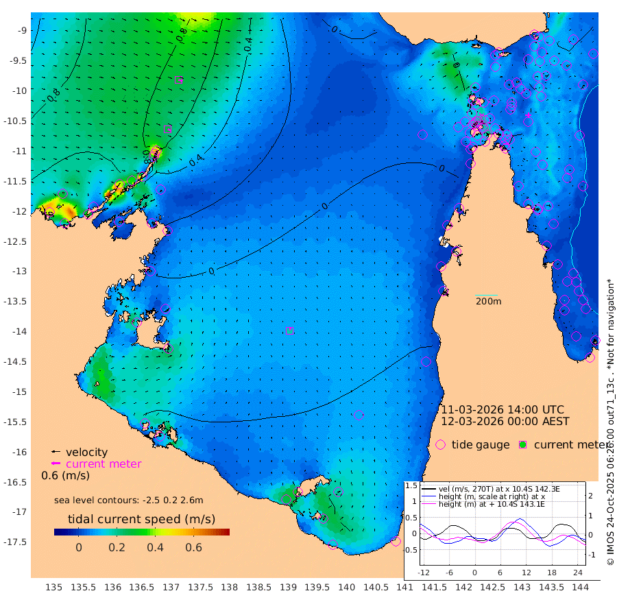 27cm/s 116T +3cm/s rms + 7cm/s -42T. ARA-GOC87 57m 19cm/s 9T +3cm/s rms + 2cm/s -2T. ARA-GOC87 60m 29cm/s 110T +2cm/s rms + 3cm/s 61T. ARA-GOC87 47m -18cm Daru -21cm Bobo Island -34cm Meer Island Barge -37cm Bramble Cay -31cm Unnamed Cay -24cm Pearce Cay -29cm Stephens Island -36cm Merrie England Shoals -27cm Mutacomal Reef -35cm Darnley Island Barge -39cm East Cay -28cm Yorke Island Barge -23cm Rennel Island -26cm Aureed Island -11cm Dungeness Reef 6cm Zagai Island 7cm Yam Island 18cm Dauan Island 2cm Saibai Island 13cm Phipi Reef 0cm Warrior Reef - West 22cm Mabuiag Island Barge -19cm Half Way Island -10cm Coconut Island -19cm Dugong Islet 0cm Poll Island -4cm Kirkcaldie Reef 8cm Suarji Island -10cm Sue Islet 37cm Hawkesbury Island 9cm Alert Patches 12cm Twin Island 42cm Badu Island 21cm St Pauls (Moa Island) 40cm Kubin (Moa Island) 21cm Ince Point 26cm Thursday Island 25cm Nardana Patches 26cm Turtle Head 43cm Round Island 34cm Goods Island 39cm Booby Island 37cm White Rocks Area 21cm Carpentaria 22cm Papou Point 49cm Bampfield Head 38cm Crab Island 33cm Red Wallis Island 31cm Packe Island -14cm Harrington Reef 37cm Herald Camp 1cm Sharp Point 19cm Red Island Point 27cm Possession Island 1cm Alpha Rock 1cm Frederick Point -13cm Wyborn Reef Light -8cm Tetley Island -29cm Triangle Reef 2cm Turtle Head Island -33cm Maclennan Cay -31cm Raine Island -29cm Mcsweeny Reef -36cm Collette Reef -36cm Shadwell Reef -39cm Hannibal Island -36cm Round Point 29cm Vrilya Point -41cm Cape Grenville -32cm Hicks Island -46cm Sir Charles Hardy Island -11cm Harvey Island -48cm Kay Reef -40cm Rocky Island -45cm Chapman Island -43cm Ham Reef -38cm Jubilee Reef -33cm Night Island -45cm Unnamed Reef No. 3 -40cm Morris Island -30cm 1st 3 Mile Opening -39cm Creech Reef -39cm Fife Island -48cm Eden Reef -44cm Stanley Island -46cm Normanby River 132cm Yabooma Island 145cm Hutchison River 127cm Elcho Island 123cm North West Crocodile Island 76cm Cape Wessel 115cm Stevens Island 53cm Guluwuru Island 95cm Hopeful Bay 94cm Auster Point 102cm Two Island Bay 118cm Cadell Strait -44cm Mallison Island 57cm Melville Bay (Gove Harbour) 64cm Truant Island 36cm Cape Arnhem 17cm Cape Grey 7cm Hawk Island 2cm Milner Bay (Groote Eylandt) -15cm Cape Beatrice -39cm West Island -37cm Centre Island -65cm Mornington Island -74cm West Wellesley Islands -77cm Bountiful Island -59cm Albert River Mouth -57cm Sweers Island -61cm Karumba -66cm Nassau River Offshore -57cm Christmas Creek -30cm Archer River -15cm Boyd Point -14cm Weipa (Humbug Point) 9cm Pennefather River 16cm Cullen Point