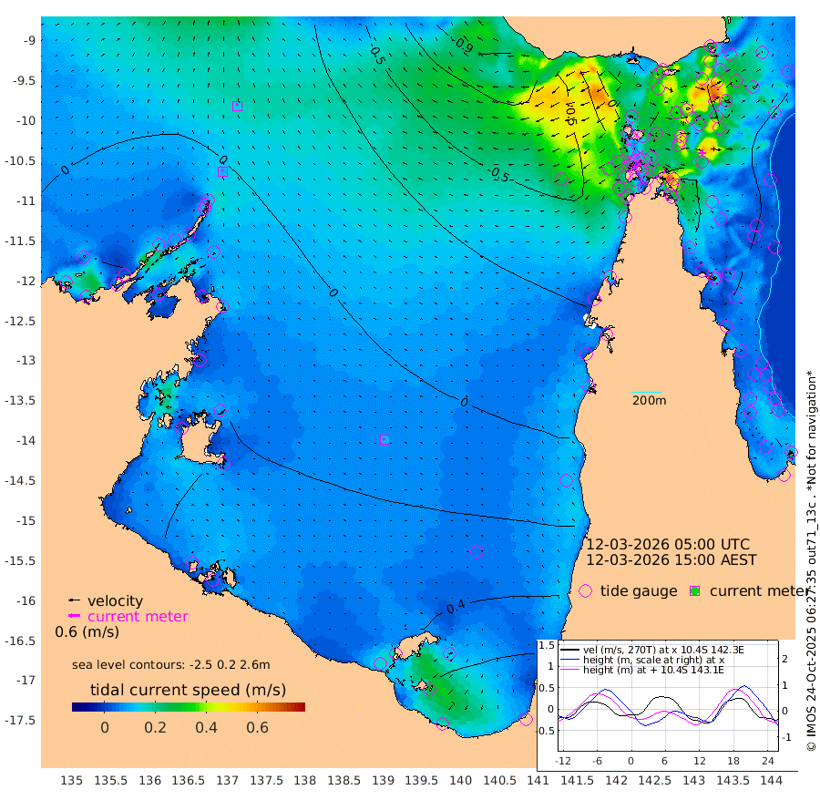 11cm/s -26T +3cm/s rms + 7cm/s -42T. ARA-GOC87 57m 12cm/s -87T +3cm/s rms + 2cm/s -2T. ARA-GOC87 60m 13cm/s -10T +2cm/s rms + 3cm/s 61T. ARA-GOC87 47m -47cm Daru -52cm Bobo Island -35cm Meer Island Barge -46cm Bramble Cay -53cm Unnamed Cay -61cm Pearce Cay -56cm Stephens Island -60cm Merrie England Shoals -58cm Mutacomal Reef -45cm Darnley Island Barge -44cm East Cay -45cm Yorke Island Barge -57cm Rennel Island -54cm Aureed Island -49cm Dungeness Reef -21cm Zagai Island -30cm Yam Island 17cm Dauan Island 18cm Saibai Island 14cm Phipi Reef -12cm Warrior Reef - West -20cm Mabuiag Island Barge -61cm Half Way Island -58cm Coconut Island -60cm Dugong Islet -51cm Poll Island -51cm Kirkcaldie Reef -49cm Suarji Island -37cm Sue Islet -69cm Hawkesbury Island -57cm Alert Patches -60cm Twin Island -47cm Badu Island -49cm St Pauls (Moa Island) -62cm Kubin (Moa Island) -55cm Ince Point -61cm Thursday Island -56cm Nardana Patches -58cm Turtle Head -65cm Round Island -68cm Goods Island -80cm Booby Island -86cm White Rocks Area -87cm Carpentaria -47cm Papou Point -97cm Bampfield Head -63cm Crab Island -83cm Red Wallis Island -77cm Packe Island -75cm Harrington Reef -72cm Herald Camp -5cm Sharp Point -50cm Red Island Point -61cm Possession Island -53cm Alpha Rock -63cm Frederick Point -63cm Wyborn Reef Light -62cm Tetley Island -37cm Triangle Reef -77cm Turtle Head Island -41cm Maclennan Cay -30cm Raine Island -55cm Mcsweeny Reef -47cm Collette Reef -32cm Shadwell Reef -51cm Hannibal Island -56cm Round Point -69cm Vrilya Point -51cm Cape Grenville -43cm Hicks Island -38cm Sir Charles Hardy Island -15cm Harvey Island -45cm Kay Reef -33cm Rocky Island -35cm Chapman Island -31cm Ham Reef -31cm Jubilee Reef -36cm Night Island -37cm Unnamed Reef No. 3 -37cm Morris Island -33cm 1st 3 Mile Opening -36cm Creech Reef -41cm Fife Island -37cm Eden Reef -40cm Stanley Island -46cm Normanby River 2cm Yabooma Island 17cm Hutchison River 15cm Elcho Island 17cm North West Crocodile Island -7cm Cape Wessel 5cm Stevens Island 26cm Guluwuru Island 6cm Hopeful Bay -5cm Auster Point -2cm Two Island Bay 25cm Cadell Strait 53cm Mallison Island 18cm Melville Bay (Gove Harbour) 10cm Truant Island 15cm Cape Arnhem 26cm Cape Grey 27cm Hawk Island 30cm Milner Bay (Groote Eylandt) 36cm Cape Beatrice 34cm West Island 31cm Centre Island 79cm Mornington Island 75cm West Wellesley Islands 109cm Bountiful Island 150cm Albert River Mouth 142cm Sweers Island 138cm Karumba 55cm Nassau River Offshore 26cm Christmas Creek -8cm Archer River -25cm Boyd Point -21cm Weipa (Humbug Point) -42cm Pennefather River -56cm Cullen Point