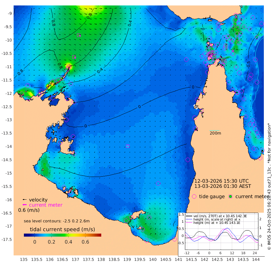 32cm/s 115T +3cm/s rms + 7cm/s -42T. ARA-GOC87 57m 13cm/s 26T +3cm/s rms + 2cm/s -2T. ARA-GOC87 60m 33cm/s 110T +2cm/s rms + 3cm/s 61T. ARA-GOC87 47m -44cm Daru -47cm Bobo Island -39cm Meer Island Barge -53cm Bramble Cay -55cm Unnamed Cay -52cm Pearce Cay -52cm Stephens Island -64cm Merrie England Shoals -58cm Mutacomal Reef -49cm Darnley Island Barge -51cm East Cay -46cm Yorke Island Barge -52cm Rennel Island -49cm Aureed Island -37cm Dungeness Reef -8cm Zagai Island -12cm Yam Island 20cm Dauan Island 9cm Saibai Island 4cm Phipi Reef -14cm Warrior Reef - West 16cm Mabuiag Island Barge -46cm Half Way Island -39cm Coconut Island -47cm Dugong Islet -26cm Poll Island -32cm Kirkcaldie Reef -19cm Suarji Island -28cm Sue Islet 27cm Hawkesbury Island -16cm Alert Patches -14cm Twin Island 35cm Badu Island -2cm St Pauls (Moa Island) 27cm Kubin (Moa Island) 2cm Ince Point 9cm Thursday Island 8cm Nardana Patches 13cm Turtle Head 29cm Round Island 27cm Goods Island 37cm Booby Island 26cm White Rocks Area 33cm Carpentaria 1cm Papou Point 45cm Bampfield Head 34cm Crab Island 27cm Red Wallis Island 18cm Packe Island -51cm Harrington Reef 30cm Herald Camp -5cm Sharp Point 3cm Red Island Point 5cm Possession Island -22cm Alpha Rock -29cm Frederick Point -43cm Wyborn Reef Light -38cm Tetley Island -36cm Triangle Reef -32cm Turtle Head Island -41cm Maclennan Cay -33cm Raine Island -51cm Mcsweeny Reef -54cm Collette Reef -42cm Shadwell Reef -59cm Hannibal Island -58cm Round Point 31cm Vrilya Point -57cm Cape Grenville -45cm Hicks Island -50cm Sir Charles Hardy Island -15cm Harvey Island -58cm Kay Reef -44cm Rocky Island -47cm Chapman Island -43cm Ham Reef -40cm Jubilee Reef -38cm Night Island -47cm Unnamed Reef No. 3 -45cm Morris Island -31cm 1st 3 Mile Opening -42cm Creech Reef -48cm Fife Island -49cm Eden Reef -49cm Stanley Island -57cm Normanby River 109cm Yabooma Island 124cm Hutchison River 109cm Elcho Island 101cm North West Crocodile Island 76cm Cape Wessel 100cm Stevens Island 71cm Guluwuru Island 83cm Hopeful Bay 86cm Auster Point 97cm Two Island Bay 114cm Cadell Strait 26cm Mallison Island 66cm Melville Bay (Gove Harbour) 74cm Truant Island 46cm Cape Arnhem 19cm Cape Grey 4cm Hawk Island -7cm Milner Bay (Groote Eylandt) -26cm Cape Beatrice -54cm West Island -52cm Centre Island -82cm Mornington Island -90cm West Wellesley Islands -95cm Bountiful Island -83cm Albert River Mouth -85cm Sweers Island -90cm Karumba -77cm Nassau River Offshore -59cm Christmas Creek -28cm Archer River -8cm Boyd Point -8cm Weipa (Humbug Point) 10cm Pennefather River 21cm Cullen Point