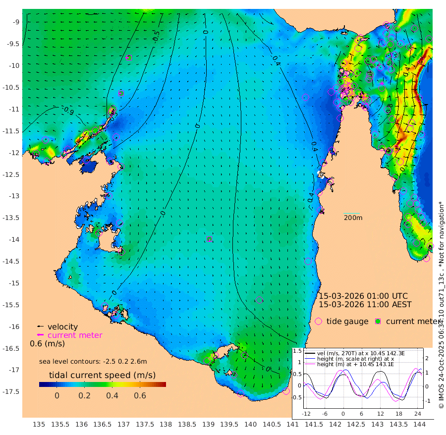 28cm/s -94T +3cm/s rms + 7cm/s -42T. ARA-GOC87 57m 28cm/s 179T +3cm/s rms + 2cm/s -2T. ARA-GOC87 60m 35cm/s -96T +2cm/s rms + 3cm/s 61T. ARA-GOC87 47m 106cm Daru 95cm Bobo Island 19cm Meer Island Barge 44cm Bramble Cay 76cm Unnamed Cay 89cm Pearce Cay 67cm Stephens Island 71cm Merrie England Shoals 107cm Mutacomal Reef 53cm Darnley Island Barge 29cm East Cay 77cm Yorke Island Barge 96cm Rennel Island 95cm Aureed Island 114cm Dungeness Reef 126cm Zagai Island 133cm Yam Island 143cm Dauan Island 127cm Saibai Island 145cm Phipi Reef 146cm Warrior Reef - West 123cm Mabuiag Island Barge 88cm Half Way Island 116cm Coconut Island 106cm Dugong Islet 130cm Poll Island 122cm Kirkcaldie Reef 155cm Suarji Island 117cm Sue Islet 115cm Hawkesbury Island 147cm Alert Patches 145cm Twin Island 114cm Badu Island 152cm St Pauls (Moa Island) 124cm Kubin (Moa Island) 138cm Ince Point 131cm Thursday Island 134cm Nardana Patches 126cm Turtle Head 114cm Round Island 105cm Goods Island 90cm Booby Island 98cm White Rocks Area 61cm Carpentaria 124cm Papou Point 96cm Bampfield Head 69cm Crab Island 102cm Red Wallis Island 129cm Packe Island 122cm Harrington Reef 113cm Herald Camp 45cm Sharp Point 105cm Red Island Point 125cm Possession Island 130cm Alpha Rock 136cm Frederick Point 113cm Wyborn Reef Light 121cm Tetley Island 44cm Triangle Reef 103cm Turtle Head Island 33cm Maclennan Cay 5cm Raine Island 76cm Mcsweeny Reef 61cm Collette Reef 27cm Shadwell Reef 60cm Hannibal Island 52cm Round Point 54cm Vrilya Point 42cm Cape Grenville 33cm Hicks Island 36cm Sir Charles Hardy Island 12cm Harvey Island 22cm Kay Reef 15cm Rocky Island 12cm Chapman Island 8cm Ham Reef 9cm Jubilee Reef 19cm Night Island 13cm Unnamed Reef No. 3 13cm Morris Island 5cm 1st 3 Mile Opening 12cm Creech Reef 23cm Fife Island -1cm Eden Reef 8cm Stanley Island 10cm Normanby River -94cm Yabooma Island -99cm Hutchison River -96cm Elcho Island -89cm North West Crocodile Island -68cm Cape Wessel -91cm Stevens Island -72cm Guluwuru Island -85cm Hopeful Bay -77cm Auster Point -81cm Two Island Bay -99cm Cadell Strait -94cm Mallison Island -58cm Melville Bay (Gove Harbour) -60cm Truant Island -39cm Cape Arnhem -40cm Cape Grey -22cm Hawk Island -40cm Milner Bay (Groote Eylandt) -24cm Cape Beatrice -13cm West Island -17cm Centre Island 8cm Mornington Island 6cm West Wellesley Islands -2cm Bountiful Island -34cm Albert River Mouth -45cm Sweers Island -13cm Karumba 38cm Nassau River Offshore 54cm Christmas Creek 47cm Archer River 55cm Boyd Point 54cm Weipa (Humbug Point) 39cm Pennefather River 62cm Cullen Point