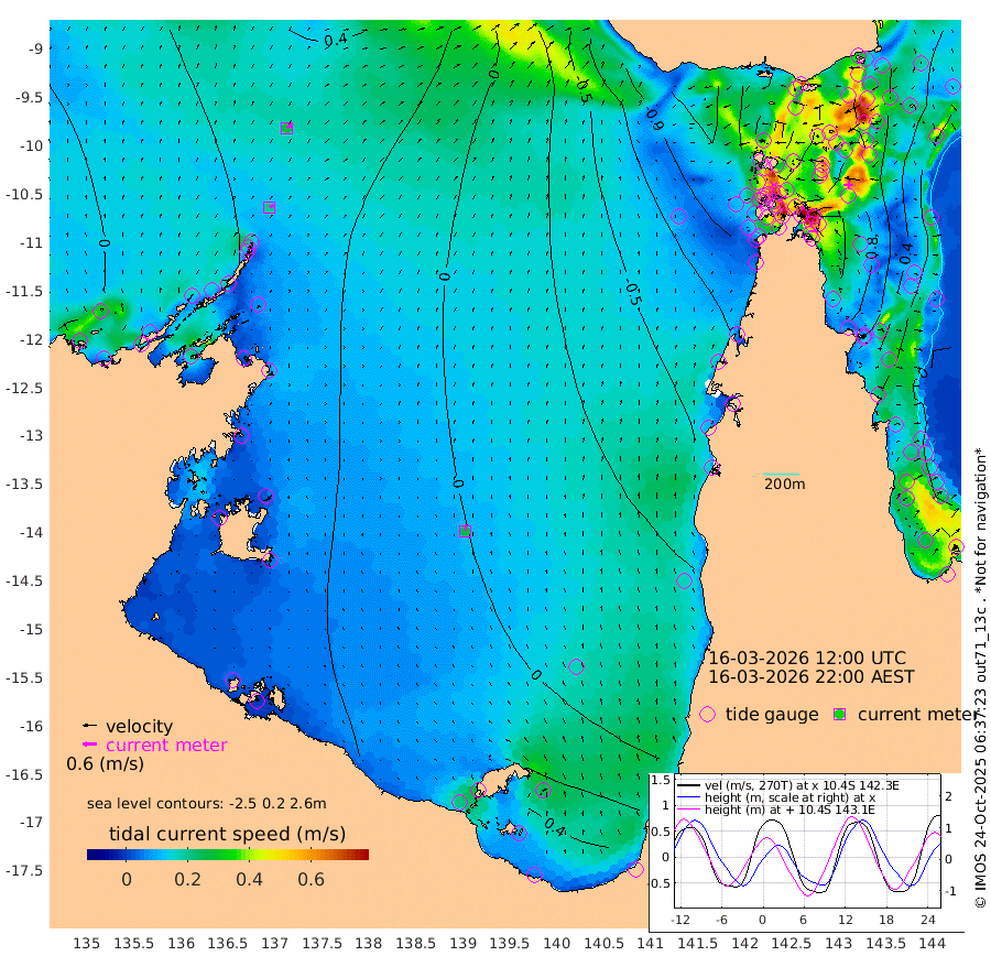 19cm/s 55T +3cm/s rms + 7cm/s -42T. ARA-GOC87 57m 26cm/s 1T +3cm/s rms + 2cm/s -2T. ARA-GOC87 60m 25cm/s 57T +2cm/s rms + 3cm/s 61T. ARA-GOC87 47m 84cm Daru 88cm Bobo Island 22cm Meer Island Barge 55cm Bramble Cay 77cm Unnamed Cay 75cm Pearce Cay 66cm Stephens Island 85cm Merrie England Shoals 93cm Mutacomal Reef 54cm Darnley Island Barge 34cm East Cay 66cm Yorke Island Barge 75cm Rennel Island 72cm Aureed Island 64cm Dungeness Reef 54cm Zagai Island 46cm Yam Island -18cm Dauan Island -3cm Saibai Island 12cm Phipi Reef 43cm Warrior Reef - West -8cm Mabuiag Island Barge 69cm Half Way Island 83cm Coconut Island 67cm Dugong Islet 63cm Poll Island 63cm Kirkcaldie Reef 53cm Suarji Island 60cm Sue Islet -88cm Hawkesbury Island 35cm Alert Patches 41cm Twin Island -67cm Badu Island 34cm St Pauls (Moa Island) -57cm Kubin (Moa Island) 2cm Ince Point -18cm Thursday Island -14cm Nardana Patches -49cm Turtle Head -56cm Round Island -94cm Goods Island -121cm Booby Island -97cm White Rocks Area -111cm Carpentaria 32cm Papou Point -101cm Bampfield Head -98cm Crab Island -110cm Red Wallis Island -74cm Packe Island 90cm Harrington Reef -106cm Herald Camp 17cm Sharp Point -29cm Red Island Point 7cm Possession Island 51cm Alpha Rock 63cm Frederick Point 93cm Wyborn Reef Light 89cm Tetley Island 23cm Triangle Reef 84cm Turtle Head Island 18cm Maclennan Cay 4cm Raine Island 69cm Mcsweeny Reef 63cm Collette Reef 27cm Shadwell Reef 70cm Hannibal Island 59cm Round Point -100cm Vrilya Point 45cm Cape Grenville 35cm Hicks Island 18cm Sir Charles Hardy Island 13cm Harvey Island 34cm Kay Reef 15cm Rocky Island 9cm Chapman Island 4cm Ham Reef 10cm Jubilee Reef 12cm Night Island 8cm Unnamed Reef No. 3 16cm Morris Island 0cm 1st 3 Mile Opening 7cm Creech Reef 21cm Fife Island 7cm Eden Reef 14cm Stanley Island 25cm Normanby River 17cm Yabooma Island 27cm Hutchison River 20cm Elcho Island 21cm North West Crocodile Island 36cm Cape Wessel 47cm Stevens Island 40cm Guluwuru Island 35cm Hopeful Bay 36cm Auster Point 21cm Two Island Bay 35cm Cadell Strait 87cm Mallison Island 41cm Melville Bay (Gove Harbour) 42cm Truant Island 32cm Cape Arnhem 45cm Cape Grey 45cm Hawk Island 55cm Milner Bay (Groote Eylandt) 46cm Cape Beatrice 51cm West Island 51cm Centre Island 48cm Mornington Island 46cm West Wellesley Islands 52cm Bountiful Island 64cm Albert River Mouth 95cm Sweers Island 63cm Karumba 3cm Nassau River Offshore -32cm Christmas Creek -58cm Archer River -75cm Boyd Point -87cm Weipa (Humbug Point) -64cm Pennefather River -102cm Cullen Point