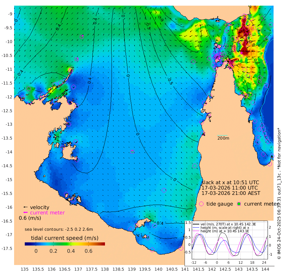 20cm/s 67T +3cm/s rms + 7cm/s -42T. ARA-GOC87 57m 19cm/s -19T +3cm/s rms + 2cm/s -2T. ARA-GOC87 60m 27cm/s 60T +2cm/s rms + 3cm/s 61T. ARA-GOC87 47m 88cm Daru 93cm Bobo Island 69cm Meer Island Barge 97cm Bramble Cay 103cm Unnamed Cay 94cm Pearce Cay 97cm Stephens Island 114cm Merrie England Shoals 97cm Mutacomal Reef 87cm Darnley Island Barge 81cm East Cay 82cm Yorke Island Barge 89cm Rennel Island 77cm Aureed Island 64cm Dungeness Reef 14cm Zagai Island 11cm Yam Island -61cm Dauan Island -58cm Saibai Island -16cm Phipi Reef 6cm Warrior Reef - West -56cm Mabuiag Island Barge 83cm Half Way Island 71cm Coconut Island 72cm Dugong Islet 40cm Poll Island 49cm Kirkcaldie Reef 9cm Suarji Island 34cm Sue Islet -90cm Hawkesbury Island 2cm Alert Patches 4cm Twin Island -85cm Badu Island -12cm St Pauls (Moa Island) -70cm Kubin (Moa Island) -32cm Ince Point -48cm Thursday Island -45cm Nardana Patches -62cm Turtle Head -61cm Round Island -92cm Goods Island -119cm Booby Island -100cm White Rocks Area -132cm Carpentaria -7cm Papou Point -98cm Bampfield Head -96cm Crab Island -116cm Red Wallis Island -81cm Packe Island 84cm Harrington Reef -98cm Herald Camp -4cm Sharp Point -46cm Red Island Point -14cm Possession Island 14cm Alpha Rock 38cm Frederick Point 87cm Wyborn Reef Light 75cm Tetley Island 50cm Triangle Reef 94cm Turtle Head Island 58cm Maclennan Cay 54cm Raine Island 90cm Mcsweeny Reef 91cm Collette Reef 68cm Shadwell Reef 105cm Hannibal Island 102cm Round Point -99cm Vrilya Point 87cm Cape Grenville 81cm Hicks Island 62cm Sir Charles Hardy Island 26cm Harvey Island 84cm Kay Reef 65cm Rocky Island 58cm Chapman Island 51cm Ham Reef 59cm Jubilee Reef 57cm Night Island 54cm Unnamed Reef No. 3 69cm Morris Island 55cm 1st 3 Mile Opening 59cm Creech Reef 70cm Fife Island 75cm Eden Reef 72cm Stanley Island 86cm Normanby River 78cm Yabooma Island 96cm Hutchison River 77cm Elcho Island 73cm North West Crocodile Island 53cm Cape Wessel 91cm Stevens Island 67cm Guluwuru Island 83cm Hopeful Bay 70cm Auster Point 60cm Two Island Bay 92cm Cadell Strait 110cm Mallison Island 66cm Melville Bay (Gove Harbour) 64cm Truant Island 44cm Cape Arnhem 52cm Cape Grey 52cm Hawk Island 48cm Milner Bay (Groote Eylandt) 42cm Cape Beatrice 30cm West Island 32cm Centre Island 62cm Mornington Island 58cm West Wellesley Islands 76cm Bountiful Island 95cm Albert River Mouth 125cm Sweers Island 98cm Karumba 29cm Nassau River Offshore -4cm Christmas Creek -33cm Archer River -61cm Boyd Point -62cm Weipa (Humbug Point) -52cm Pennefather River -98cm Cullen Point