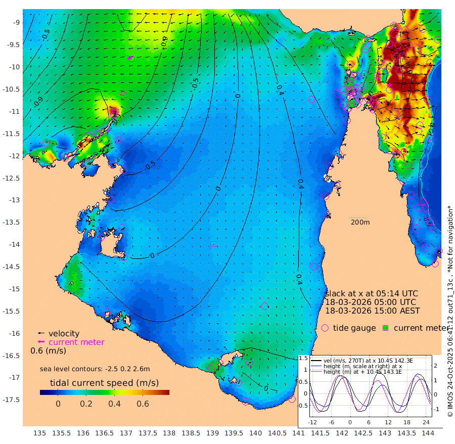 33cm/s -84T +3cm/s rms + 7cm/s -42T. ARA-GOC87 57m 13cm/s -166T +3cm/s rms + 2cm/s -2T. ARA-GOC87 60m 37cm/s -92T +2cm/s rms + 3cm/s 61T. ARA-GOC87 47m -93cm Daru -103cm Bobo Island -94cm Meer Island Barge -117cm Bramble Cay -119cm Unnamed Cay -111cm Pearce Cay -116cm Stephens Island -127cm Merrie England Shoals -104cm Mutacomal Reef -107cm Darnley Island Barge -104cm East Cay -97cm Yorke Island Barge -100cm Rennel Island -89cm Aureed Island -72cm Dungeness Reef -15cm Zagai Island -16cm Yam Island 63cm Dauan Island 57cm Saibai Island 38cm Phipi Reef 0cm Warrior Reef - West 40cm Mabuiag Island Barge -99cm Half Way Island -77cm Coconut Island -88cm Dugong Islet -47cm Poll Island -56cm Kirkcaldie Reef -13cm Suarji Island -42cm Sue Islet 38cm Hawkesbury Island -12cm Alert Patches -16cm Twin Island 42cm Badu Island 1cm St Pauls (Moa Island) 30cm Kubin (Moa Island) 13cm Ince Point 22cm Thursday Island 21cm Nardana Patches 31cm Turtle Head 30cm Round Island 40cm Goods Island 57cm Booby Island 39cm White Rocks Area 67cm Carpentaria -8cm Papou Point 36cm Bampfield Head 58cm Crab Island 62cm Red Wallis Island 43cm Packe Island -96cm Harrington Reef 56cm Herald Camp 11cm Sharp Point 22cm Red Island Point 0cm Possession Island -24cm Alpha Rock -49cm Frederick Point -99cm Wyborn Reef Light -85cm Tetley Island -70cm Triangle Reef -116cm Turtle Head Island -84cm Maclennan Cay -78cm Raine Island -106cm Mcsweeny Reef -103cm Collette Reef -85cm Shadwell Reef -120cm Hannibal Island -121cm Round Point 61cm Vrilya Point -107cm Cape Grenville -102cm Hicks Island -94cm Sir Charles Hardy Island -32cm Harvey Island -108cm Kay Reef -89cm Rocky Island -82cm Chapman Island -77cm Ham Reef -86cm Jubilee Reef -75cm Night Island -78cm Unnamed Reef No. 3 -95cm Morris Island -85cm 1st 3 Mile Opening -85cm Creech Reef -89cm Fife Island -107cm Eden Reef -98cm Stanley Island -115cm Normanby River -162cm Yabooma Island -187cm Hutchison River -152cm Elcho Island -142cm North West Crocodile Island -123cm Cape Wessel -160cm Stevens Island -128cm Guluwuru Island -140cm Hopeful Bay -136cm Auster Point -131cm Two Island Bay -170cm Cadell Strait -139cm Mallison Island -117cm Melville Bay (Gove Harbour) -123cm Truant Island -75cm Cape Arnhem -63cm Cape Grey -37cm Hawk Island -19cm Milner Bay (Groote Eylandt) -4cm Cape Beatrice 27cm West Island 34cm Centre Island 39cm Mornington Island 34cm West Wellesley Islands 17cm Bountiful Island 36cm Albert River Mouth 15cm Sweers Island 42cm Karumba 44cm Nassau River Offshore 47cm Christmas Creek 41cm Archer River 47cm Boyd Point 47cm Weipa (Humbug Point) 43cm Pennefather River 67cm Cullen Point