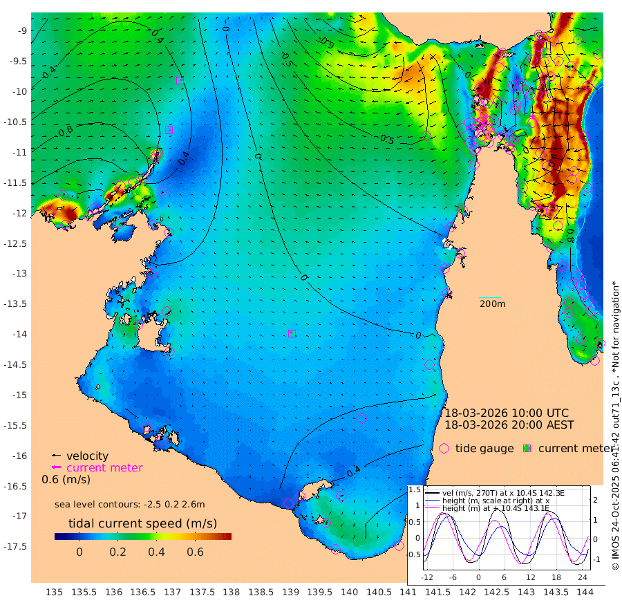 11cm/s 87T +3cm/s rms + 7cm/s -42T. ARA-GOC87 57m 16cm/s -46T +3cm/s rms + 2cm/s -2T. ARA-GOC87 60m 17cm/s 71T +2cm/s rms + 3cm/s 61T. ARA-GOC87 47m 18cm Daru 27cm Bobo Island 67cm Meer Island Barge 71cm Bramble Cay 50cm Unnamed Cay 45cm Pearce Cay 58cm Stephens Island 62cm Merrie England Shoals 23cm Mutacomal Reef 53cm Darnley Island Barge 75cm East Cay 30cm Yorke Island Barge 35cm Rennel Island 22cm Aureed Island 5cm Dungeness Reef -61cm Zagai Island -59cm Yam Island -105cm Dauan Island -116cm Saibai Island -64cm Phipi Reef -66cm Warrior Reef - West -98cm Mabuiag Island Barge 33cm Half Way Island -1cm Coconut Island 14cm Dugong Islet -29cm Poll Island -16cm Kirkcaldie Reef -63cm Suarji Island -40cm Sue Islet -59cm Hawkesbury Island -56cm Alert Patches -59cm Twin Island -72cm Badu Island -78cm St Pauls (Moa Island) -63cm Kubin (Moa Island) -70cm Ince Point -71cm Thursday Island -72cm Nardana Patches -58cm Turtle Head -48cm Round Island -51cm Goods Island -59cm Booby Island -53cm White Rocks Area -88cm Carpentaria -64cm Papou Point -50cm Bampfield Head -44cm Crab Island -65cm Red Wallis Island -57cm Packe Island 11cm Harrington Reef -52cm Herald Camp -31cm Sharp Point -49cm Red Island Point -44cm Possession Island -56cm Alpha Rock -32cm Frederick Point 9cm Wyborn Reef Light -6cm Tetley Island 38cm Triangle Reef 29cm Turtle Head Island 55cm Maclennan Cay 69cm Raine Island 43cm Mcsweeny Reef 51cm Collette Reef 59cm Shadwell Reef 64cm Hannibal Island 76cm Round Point -47cm Vrilya Point 69cm Cape Grenville 71cm Hicks Island 56cm Sir Charles Hardy Island 22cm Harvey Island 76cm Kay Reef 71cm Rocky Island 69cm Chapman Island 63cm Ham Reef 66cm Jubilee Reef 64cm Night Island 64cm Unnamed Reef No. 3 77cm Morris Island 71cm 1st 3 Mile Opening 71cm Creech Reef 76cm Fife Island 95cm Eden Reef 83cm Stanley Island 93cm Normanby River 119cm Yabooma Island 134cm Hutchison River 115cm Elcho Island 109cm North West Crocodile Island 48cm Cape Wessel 101cm Stevens Island 47cm Guluwuru Island 102cm Hopeful Bay 77cm Auster Point 75cm Two Island Bay 108cm Cadell Strait 25cm Mallison Island 52cm Melville Bay (Gove Harbour) 48cm Truant Island 29cm Cape Arnhem 30cm Cape Grey 34cm Hawk Island 25cm Milner Bay (Groote Eylandt) 25cm Cape Beatrice 6cm West Island 10cm Centre Island 54cm Mornington Island 49cm West Wellesley Islands 70cm Bountiful Island 100cm Albert River Mouth 116cm Sweers Island 105cm Karumba 43cm Nassau River Offshore 22cm Christmas Creek 7cm Archer River -23cm Boyd Point -10cm Weipa (Humbug Point) -13cm Pennefather River -47cm Cullen Point