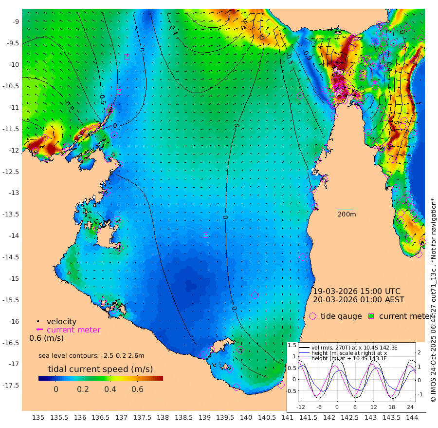 15cm/s 57T +3cm/s rms + 7cm/s -42T. ARA-GOC87 57m 13cm/s 31T +3cm/s rms + 2cm/s -2T. ARA-GOC87 60m 16cm/s 46T +2cm/s rms + 3cm/s 61T. ARA-GOC87 47m 75cm Daru 68cm Bobo Island -14cm Meer Island Barge 5cm Bramble Cay 42cm Unnamed Cay 39cm Pearce Cay 26cm Stephens Island 35cm Merrie England Shoals 68cm Mutacomal Reef 25cm Darnley Island Barge -17cm East Cay 52cm Yorke Island Barge 46cm Rennel Island 59cm Aureed Island 67cm Dungeness Reef 109cm Zagai Island 91cm Yam Island 86cm Dauan Island 98cm Saibai Island 98cm Phipi Reef 104cm Warrior Reef - West 63cm Mabuiag Island Barge 43cm Half Way Island 81cm Coconut Island 54cm Dugong Islet 82cm Poll Island 74cm Kirkcaldie Reef 102cm Suarji Island 91cm Sue Islet -58cm Hawkesbury Island 76cm Alert Patches 78cm Twin Island -19cm Badu Island 91cm St Pauls (Moa Island) -14cm Kubin (Moa Island) 50cm Ince Point 29cm Thursday Island 36cm Nardana Patches -7cm Turtle Head -12cm Round Island -63cm Goods Island -87cm Booby Island -81cm White Rocks Area -60cm Carpentaria 71cm Papou Point -55cm Bampfield Head -71cm Crab Island -81cm Red Wallis Island -39cm Packe Island 73cm Harrington Reef -56cm Herald Camp 41cm Sharp Point -7cm Red Island Point 49cm Possession Island 81cm Alpha Rock 79cm Frederick Point 80cm Wyborn Reef Light 86cm Tetley Island 1cm Triangle Reef 64cm Turtle Head Island -16cm Maclennan Cay -37cm Raine Island 38cm Mcsweeny Reef 30cm Collette Reef -5cm Shadwell Reef 29cm Hannibal Island 2cm Round Point -71cm Vrilya Point -3cm Cape Grenville -10cm Hicks Island -17cm Sir Charles Hardy Island -1cm Harvey Island -21cm Kay Reef -29cm Rocky Island -37cm Chapman Island -36cm Ham Reef -31cm Jubilee Reef -25cm Night Island -38cm Unnamed Reef No. 3 -34cm Morris Island -36cm 1st 3 Mile Opening -35cm Creech Reef -31cm Fife Island -51cm Eden Reef -38cm Stanley Island -43cm Normanby River -110cm Yabooma Island -104cm Hutchison River -98cm Elcho Island -100cm North West Crocodile Island -27cm Cape Wessel -59cm Stevens Island 11cm Guluwuru Island -63cm Hopeful Bay -40cm Auster Point -51cm Two Island Bay -62cm Cadell Strait 107cm Mallison Island 7cm Melville Bay (Gove Harbour) 9cm Truant Island 20cm Cape Arnhem 29cm Cape Grey 32cm Hawk Island 40cm Milner Bay (Groote Eylandt) 26cm Cape Beatrice 41cm West Island 47cm Centre Island 36cm Mornington Island 27cm West Wellesley Islands 27cm Bountiful Island 17cm Albert River Mouth 48cm Sweers Island 20cm Karumba -5cm Nassau River Offshore -23cm Christmas Creek -48cm Archer River -47cm Boyd Point -66cm Weipa (Humbug Point) -44cm Pennefather River -64cm Cullen Point