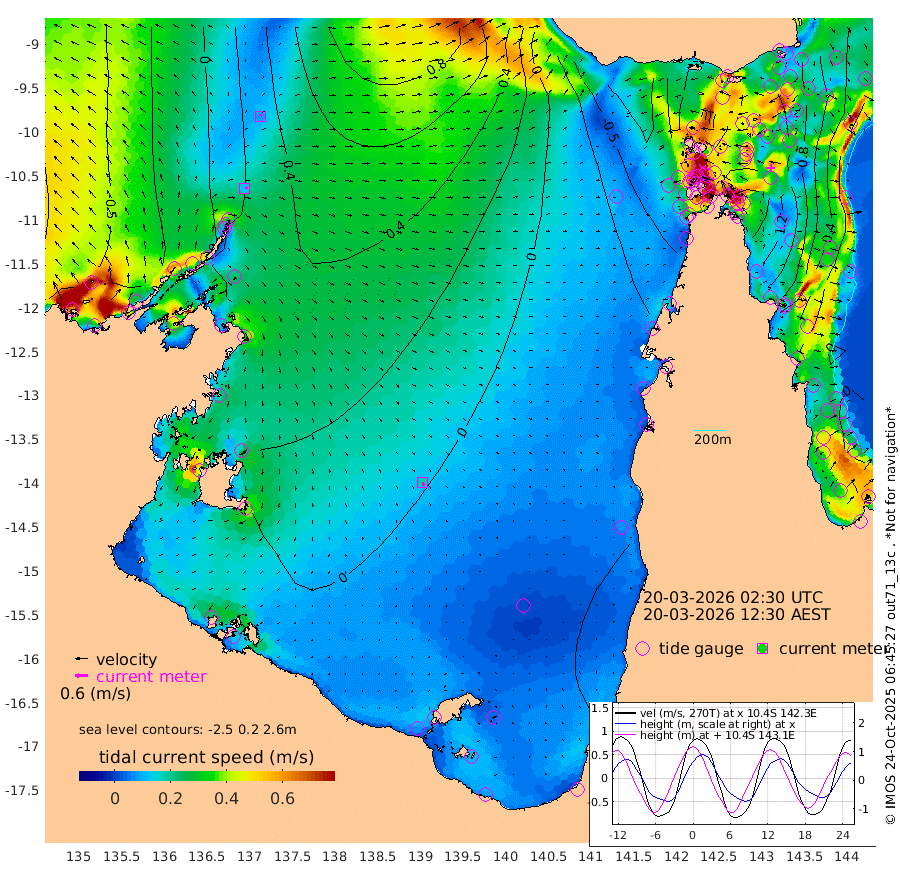 12cm/s 72T +3cm/s rms + 7cm/s -42T. ARA-GOC87 57m 18cm/s 167T +3cm/s rms + 2cm/s -2T. ARA-GOC87 60m 9cm/s 28T +2cm/s rms + 3cm/s 61T. ARA-GOC87 47m 128cm Daru 118cm Bobo Island 27cm Meer Island Barge 59cm Bramble Cay 98cm Unnamed Cay 98cm Pearce Cay 83cm Stephens Island 92cm Merrie England Shoals 126cm Mutacomal Reef 74cm Darnley Island Barge 30cm East Cay 100cm Yorke Island Barge 105cm Rennel Island 103cm Aureed Island 115cm Dungeness Reef 138cm Zagai Island 137cm Yam Island 123cm Dauan Island 122cm Saibai Island 110cm Phipi Reef 148cm Warrior Reef - West 86cm Mabuiag Island Barge 104cm Half Way Island 121cm Coconut Island 118cm Dugong Islet 128cm Poll Island 125cm Kirkcaldie Reef 118cm Suarji Island 128cm Sue Islet 3cm Hawkesbury Island 104cm Alert Patches 115cm Twin Island 21cm Badu Island 125cm St Pauls (Moa Island) 39cm Kubin (Moa Island) 86cm Ince Point 63cm Thursday Island 71cm Nardana Patches 34cm Turtle Head 8cm Round Island -15cm Goods Island -48cm Booby Island -37cm White Rocks Area -48cm Carpentaria 105cm Papou Point -56cm Bampfield Head -43cm Crab Island -31cm Red Wallis Island 15cm Packe Island 126cm Harrington Reef -23cm Herald Camp 44cm Sharp Point 28cm Red Island Point 58cm Possession Island 119cm Alpha Rock 123cm Frederick Point 130cm Wyborn Reef Light 135cm Tetley Island 39cm Triangle Reef 117cm Turtle Head Island 29cm Maclennan Cay -2cm Raine Island 89cm Mcsweeny Reef 74cm Collette Reef 31cm Shadwell Reef 77cm Hannibal Island 56cm Round Point -48cm Vrilya Point 43cm Cape Grenville 36cm Hicks Island 38cm Sir Charles Hardy Island 14cm Harvey Island 23cm Kay Reef 9cm Rocky Island -3cm Chapman Island 0cm Ham Reef 10cm Jubilee Reef 11cm Night Island 0cm Unnamed Reef No. 3 8cm Morris Island -2cm 1st 3 Mile Opening 5cm Creech Reef 15cm Fife Island -2cm Eden Reef 4cm Stanley Island 11cm Normanby River -31cm Yabooma Island -11cm Hutchison River -24cm Elcho Island -21cm North West Crocodile Island 22cm Cape Wessel 4cm Stevens Island 65cm Guluwuru Island -18cm Hopeful Bay 1cm Auster Point 11cm Two Island Bay 34cm Cadell Strait 158cm Mallison Island 44cm Melville Bay (Gove Harbour) 47cm Truant Island 36cm Cape Arnhem 19cm Cape Grey 11cm Hawk Island -14cm Milner Bay (Groote Eylandt) -8cm Cape Beatrice -21cm West Island -33cm Centre Island -15cm Mornington Island -15cm West Wellesley Islands -31cm Bountiful Island -35cm Albert River Mouth -56cm Sweers Island -39cm Karumba -13cm Nassau River Offshore -11cm Christmas Creek -34cm Archer River -25cm Boyd Point -41cm Weipa (Humbug Point) -36cm Pennefather River -44cm Cullen Point