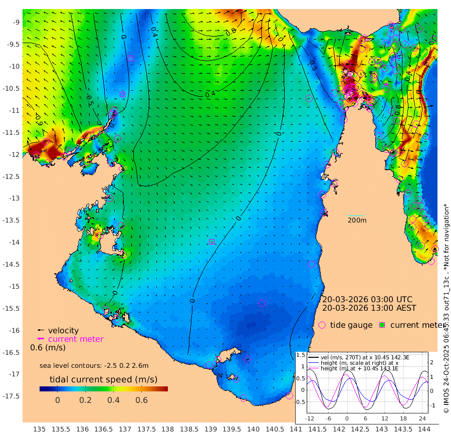 8cm/s 47T +3cm/s rms + 7cm/s -42T. ARA-GOC87 57m 18cm/s 163T +3cm/s rms + 2cm/s -2T. ARA-GOC87 60m 8cm/s -13T +2cm/s rms + 3cm/s 61T. ARA-GOC87 47m 103cm Daru 90cm Bobo Island 3cm Meer Island Barge 29cm Bramble Cay 68cm Unnamed Cay 67cm Pearce Cay 52cm Stephens Island 61cm Merrie England Shoals 100cm Mutacomal Reef 47cm Darnley Island Barge 2cm East Cay 74cm Yorke Island Barge 77cm Rennel Island 78cm Aureed Island 93cm Dungeness Reef 129cm Zagai Island 127cm Yam Island 126cm Dauan Island 128cm Saibai Island 108cm Phipi Reef 139cm Warrior Reef - West 89cm Mabuiag Island Barge 77cm Half Way Island 99cm Coconut Island 93cm Dugong Islet 111cm Poll Island 107cm Kirkcaldie Reef 109cm Suarji Island 115cm Sue Islet 1cm Hawkesbury Island 96cm Alert Patches 105cm Twin Island 21cm Badu Island 119cm St Pauls (Moa Island) 36cm Kubin (Moa Island) 82cm Ince Point 61cm Thursday Island 68cm Nardana Patches 32cm Turtle Head 6cm Round Island -16cm Goods Island -43cm Booby Island -36cm White Rocks Area -34cm Carpentaria 98cm Papou Point -54cm Bampfield Head -36cm Crab Island -26cm Red Wallis Island 14cm Packe Island 100cm Harrington Reef -21cm Herald Camp 46cm Sharp Point 26cm Red Island Point 52cm Possession Island 110cm Alpha Rock 107cm Frederick Point 105cm Wyborn Reef Light 112cm Tetley Island 20cm Triangle Reef 87cm Turtle Head Island 6cm Maclennan Cay -23cm Raine Island 62cm Mcsweeny Reef 48cm Collette Reef 9cm Shadwell Reef 48cm Hannibal Island 25cm Round Point -38cm Vrilya Point 16cm Cape Grenville 9cm Hicks Island 12cm Sir Charles Hardy Island 6cm Harvey Island -4cm Kay Reef -15cm Rocky Island -25cm Chapman Island -20cm Ham Reef -13cm Jubilee Reef -10cm Night Island -20cm Unnamed Reef No. 3 -17cm Morris Island -25cm 1st 3 Mile Opening -18cm Creech Reef -10cm Fife Island -31cm Eden Reef -21cm Stanley Island -19cm Normanby River -78cm Yabooma Island -67cm Hutchison River -69cm Elcho Island -64cm North West Crocodile Island -9cm Cape Wessel -38cm Stevens Island 33cm Guluwuru Island -55cm Hopeful Bay -34cm Auster Point -24cm Two Island Bay -15cm Cadell Strait 138cm Mallison Island 14cm Melville Bay (Gove Harbour) 17cm Truant Island 18cm Cape Arnhem 6cm Cape Grey 3cm Hawk Island -13cm Milner Bay (Groote Eylandt) -6cm Cape Beatrice -8cm West Island -18cm Centre Island -8cm Mornington Island -9cm West Wellesley Islands -31cm Bountiful Island -32cm Albert River Mouth -54cm Sweers Island -36cm Karumba -9cm Nassau River Offshore -8cm Christmas Creek -30cm Archer River -20cm Boyd Point -38cm Weipa (Humbug Point) -29cm Pennefather River -33cm Cullen Point
