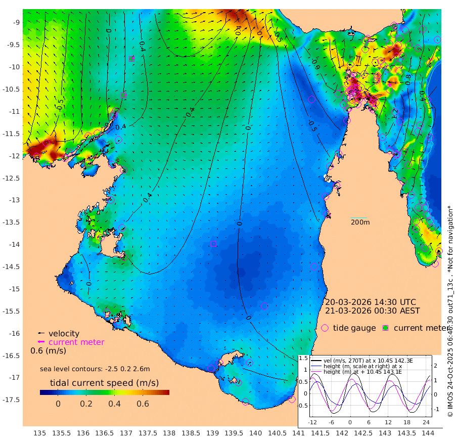 27cm/s 85T +3cm/s rms + 7cm/s -42T. ARA-GOC87 57m 5cm/s 52T +3cm/s rms + 2cm/s -2T. ARA-GOC87 60m 27cm/s 69T +2cm/s rms + 3cm/s 61T. ARA-GOC87 47m 127cm Daru 123cm Bobo Island 43cm Meer Island Barge 70cm Bramble Cay 103cm Unnamed Cay 102cm Pearce Cay 91cm Stephens Island 99cm Merrie England Shoals 118cm Mutacomal Reef 86cm Darnley Island Barge 44cm East Cay 105cm Yorke Island Barge 102cm Rennel Island 110cm Aureed Island 113cm Dungeness Reef 125cm Zagai Island 107cm Yam Island 83cm Dauan Island 82cm Saibai Island 108cm Phipi Reef 122cm Warrior Reef - West 48cm Mabuiag Island Barge 99cm Half Way Island 123cm Coconut Island 104cm Dugong Islet 112cm Poll Island 108cm Kirkcaldie Reef 112cm Suarji Island 111cm Sue Islet -57cm Hawkesbury Island 87cm Alert Patches 91cm Twin Island -20cm Badu Island 98cm St Pauls (Moa Island) -6cm Kubin (Moa Island) 54cm Ince Point 30cm Thursday Island 37cm Nardana Patches 0cm Turtle Head -10cm Round Island -57cm Goods Island -91cm Booby Island -83cm White Rocks Area -86cm Carpentaria 78cm Papou Point -59cm Bampfield Head -74cm Crab Island -86cm Red Wallis Island -31cm Packe Island 122cm Harrington Reef -56cm Herald Camp 35cm Sharp Point -7cm Red Island Point 57cm Possession Island 91cm Alpha Rock 107cm Frederick Point 126cm Wyborn Reef Light 126cm Tetley Island 45cm Triangle Reef 123cm Turtle Head Island 36cm Maclennan Cay 15cm Raine Island 95cm Mcsweeny Reef 85cm Collette Reef 47cm Shadwell Reef 92cm Hannibal Island 69cm Round Point -80cm Vrilya Point 55cm Cape Grenville 51cm Hicks Island 40cm Sir Charles Hardy Island 18cm Harvey Island 36cm Kay Reef 24cm Rocky Island 13cm Chapman Island 11cm Ham Reef 21cm Jubilee Reef 26cm Night Island 11cm Unnamed Reef No. 3 24cm Morris Island 20cm 1st 3 Mile Opening 20cm Creech Reef 27cm Fife Island 17cm Eden Reef 21cm Stanley Island 23cm Normanby River -38cm Yabooma Island -13cm Hutchison River -27cm Elcho Island -35cm North West Crocodile Island 18cm Cape Wessel 8cm Stevens Island 72cm Guluwuru Island -5cm Hopeful Bay 14cm Auster Point 7cm Two Island Bay 27cm Cadell Strait 175cm Mallison Island 60cm Melville Bay (Gove Harbour) 64cm Truant Island 55cm Cape Arnhem 46cm Cape Grey 44cm Hawk Island 28cm Milner Bay (Groote Eylandt) 16cm Cape Beatrice 5cm West Island 9cm Centre Island 28cm Mornington Island 17cm West Wellesley Islands 19cm Bountiful Island 15cm Albert River Mouth 38cm Sweers Island 18cm Karumba 2cm Nassau River Offshore -10cm Christmas Creek -39cm Archer River -44cm Boyd Point -57cm Weipa (Humbug Point) -42cm Pennefather River -73cm Cullen Point
