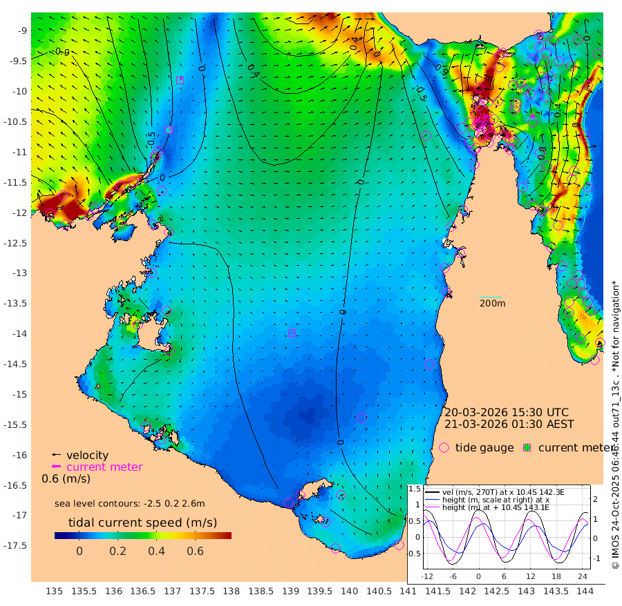 16cm/s 67T +3cm/s rms + 7cm/s -42T. ARA-GOC87 57m 8cm/s 69T +3cm/s rms + 2cm/s -2T. ARA-GOC87 60m 15cm/s 47T +2cm/s rms + 3cm/s 61T. ARA-GOC87 47m 84cm Daru 76cm Bobo Island 2cm Meer Island Barge 19cm Bramble Cay 55cm Unnamed Cay 49cm Pearce Cay 39cm Stephens Island 47cm Merrie England Shoals 76cm Mutacomal Reef 41cm Darnley Island Barge -3cm East Cay 64cm Yorke Island Barge 56cm Rennel Island 69cm Aureed Island 76cm Dungeness Reef 113cm Zagai Island 95cm Yam Island 92cm Dauan Island 101cm Saibai Island 104cm Phipi Reef 110cm Warrior Reef - West 63cm Mabuiag Island Barge 54cm Half Way Island 87cm Coconut Island 64cm Dugong Islet 87cm Poll Island 80cm Kirkcaldie Reef 102cm Suarji Island 96cm Sue Islet -53cm Hawkesbury Island 79cm Alert Patches 80cm Twin Island -15cm Badu Island 93cm St Pauls (Moa Island) -8cm Kubin (Moa Island) 53cm Ince Point 32cm Thursday Island 39cm Nardana Patches -1cm Turtle Head -8cm Round Island -54cm Goods Island -77cm Booby Island -76cm White Rocks Area -51cm Carpentaria 71cm Papou Point -46cm Bampfield Head -63cm Crab Island -73cm Red Wallis Island -31cm Packe Island 80cm Harrington Reef -46cm Herald Camp 40cm Sharp Point -7cm Red Island Point 51cm Possession Island 82cm Alpha Rock 83cm Frederick Point 86cm Wyborn Reef Light 91cm Tetley Island 13cm Triangle Reef 73cm Turtle Head Island -1cm Maclennan Cay -22cm Raine Island 50cm Mcsweeny Reef 42cm Collette Reef 10cm Shadwell Reef 43cm Hannibal Island 15cm Round Point -61cm Vrilya Point 11cm Cape Grenville 5cm Hicks Island 1cm Sir Charles Hardy Island 4cm Harvey Island -7cm Kay Reef -14cm Rocky Island -23cm Chapman Island -22cm Ham Reef -16cm Jubilee Reef -10cm Night Island -24cm Unnamed Reef No. 3 -18cm Morris Island -18cm 1st 3 Mile Opening -18cm Creech Reef -17cm Fife Island -31cm Eden Reef -21cm Stanley Island -27cm Normanby River -128cm Yabooma Island -123cm Hutchison River -117cm Elcho Island -120cm North West Crocodile Island -37cm Cape Wessel -75cm Stevens Island 14cm Guluwuru Island -77cm Hopeful Bay -52cm Auster Point -60cm Two Island Bay -71cm Cadell Strait 137cm Mallison Island 6cm Melville Bay (Gove Harbour) 8cm Truant Island 21cm Cape Arnhem 25cm Cape Grey 27cm Hawk Island 29cm Milner Bay (Groote Eylandt) 17cm Cape Beatrice 30cm West Island 35cm Centre Island 32cm Mornington Island 23cm West Wellesley Islands 18cm Bountiful Island 4cm Albert River Mouth 30cm Sweers Island 7cm Karumba 0cm Nassau River Offshore -11cm Christmas Creek -36cm Archer River -34cm Boyd Point -52cm Weipa (Humbug Point) -34cm Pennefather River -54cm Cullen Point