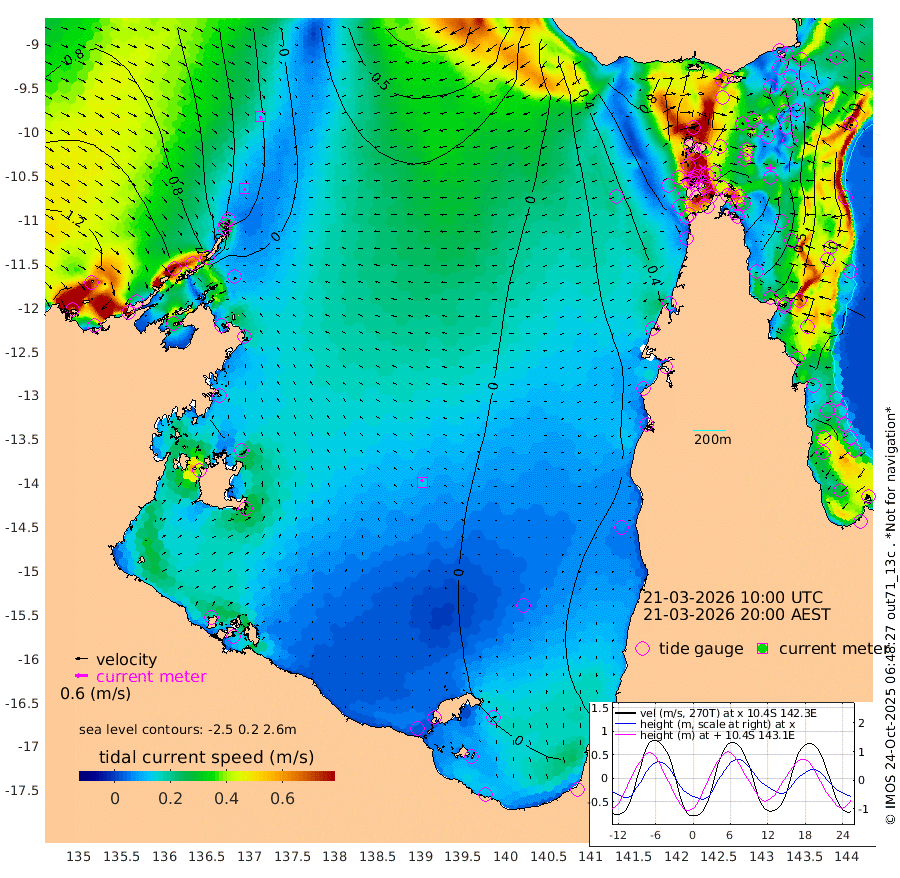 11cm/s 178T +3cm/s rms + 7cm/s -42T. ARA-GOC87 57m 12cm/s -33T +3cm/s rms + 2cm/s -2T. ARA-GOC87 60m 15cm/s 159T +2cm/s rms + 3cm/s 61T. ARA-GOC87 47m -80cm Daru -70cm Bobo Island -4cm Meer Island Barge -19cm Bramble Cay -54cm Unnamed Cay -46cm Pearce Cay -38cm Stephens Island -43cm Merrie England Shoals -74cm Mutacomal Reef -42cm Darnley Island Barge 1cm East Cay -65cm Yorke Island Barge -54cm Rennel Island -65cm Aureed Island -73cm Dungeness Reef -111cm Zagai Island -100cm Yam Island -103cm Dauan Island -117cm Saibai Island -95cm Phipi Reef -114cm Warrior Reef - West -71cm Mabuiag Island Barge -53cm Half Way Island -76cm Coconut Island -69cm Dugong Islet -84cm Poll Island -78cm Kirkcaldie Reef -97cm Suarji Island -100cm Sue Islet 38cm Hawkesbury Island -73cm Alert Patches -77cm Twin Island 15cm Badu Island -92cm St Pauls (Moa Island) 2cm Kubin (Moa Island) -53cm Ince Point -32cm Thursday Island -39cm Nardana Patches 1cm Turtle Head 14cm Round Island 51cm Goods Island 75cm Booby Island 72cm White Rocks Area 47cm Carpentaria -70cm Papou Point 59cm Bampfield Head 74cm Crab Island 69cm Red Wallis Island 31cm Packe Island -74cm Harrington Reef 40cm Herald Camp -40cm Sharp Point 6cm Red Island Point -40cm Possession Island -86cm Alpha Rock -79cm Frederick Point -81cm Wyborn Reef Light -86cm Tetley Island -15cm Triangle Reef -64cm Turtle Head Island -4cm Maclennan Cay 23cm Raine Island -48cm Mcsweeny Reef -39cm Collette Reef -9cm Shadwell Reef -39cm Hannibal Island -12cm Round Point 72cm Vrilya Point -12cm Cape Grenville -5cm Hicks Island -14cm Sir Charles Hardy Island -4cm Harvey Island 4cm Kay Reef 11cm Rocky Island 21cm Chapman Island 16cm Ham Reef 11cm Jubilee Reef 12cm Night Island 20cm Unnamed Reef No. 3 16cm Morris Island 18cm 1st 3 Mile Opening 16cm Creech Reef 17cm Fife Island 27cm Eden Reef 18cm Stanley Island 20cm Normanby River 120cm Yabooma Island 118cm Hutchison River 114cm Elcho Island 112cm North West Crocodile Island 31cm Cape Wessel 80cm Stevens Island -19cm Guluwuru Island 81cm Hopeful Bay 55cm Auster Point 53cm Two Island Bay 67cm Cadell Strait -127cm Mallison Island -5cm Melville Bay (Gove Harbour) -5cm Truant Island -16cm Cape Arnhem -22cm Cape Grey -19cm Hawk Island -16cm Milner Bay (Groote Eylandt) -13cm Cape Beatrice -29cm West Island -23cm Centre Island -19cm Mornington Island -20cm West Wellesley Islands -26cm Bountiful Island 6cm Albert River Mouth -7cm Sweers Island 8cm Karumba 3cm Nassau River Offshore 12cm Christmas Creek 41cm Archer River 31cm Boyd Point 50cm Weipa (Humbug Point) 53cm Pennefather River 56cm Cullen Point
