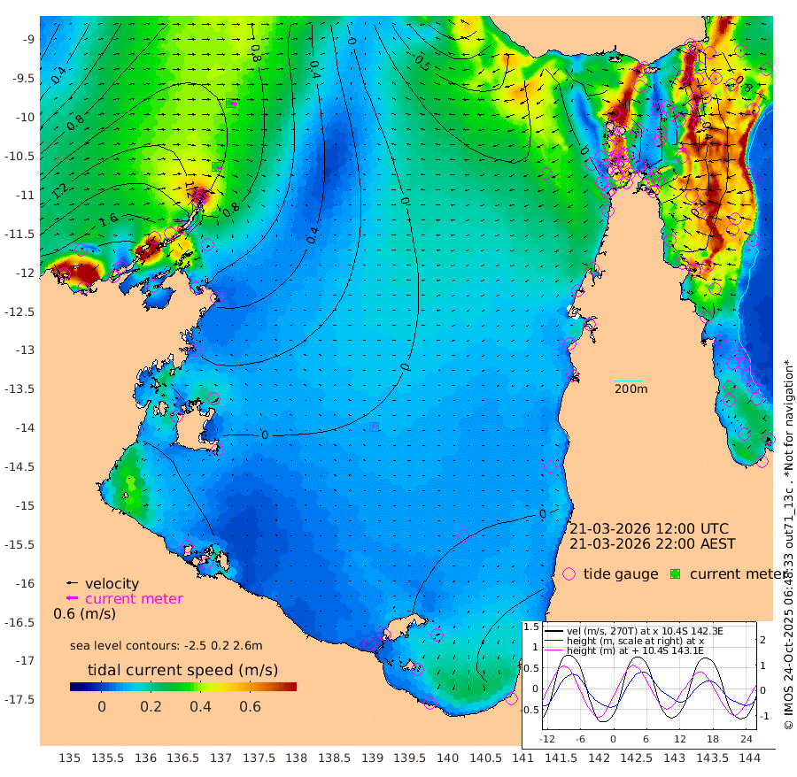 33cm/s 115T +3cm/s rms + 7cm/s -42T. ARA-GOC87 57m 8cm/s -52T +3cm/s rms + 2cm/s -2T. ARA-GOC87 60m 34cm/s 104T +2cm/s rms + 3cm/s 61T. ARA-GOC87 47m 49cm Daru 60cm Bobo Island 68cm Meer Island Barge 76cm Bramble Cay 62cm Unnamed Cay 77cm Pearce Cay 74cm Stephens Island 68cm Merrie England Shoals 46cm Mutacomal Reef 62cm Darnley Island Barge 77cm East Cay 49cm Yorke Island Barge 60cm Rennel Island 52cm Aureed Island 43cm Dungeness Reef -5cm Zagai Island -5cm Yam Island -34cm Dauan Island -58cm Saibai Island -7cm Phipi Reef -6cm Warrior Reef - West -38cm Mabuiag Island Barge 57cm Half Way Island 43cm Coconut Island 43cm Dugong Islet 21cm Poll Island 25cm Kirkcaldie Reef -3cm Suarji Island -2cm Sue Islet 8cm Hawkesbury Island -1cm Alert Patches 2cm Twin Island 8cm Badu Island -11cm St Pauls (Moa Island) 11cm Kubin (Moa Island) -6cm Ince Point -6cm Thursday Island -7cm Nardana Patches 10cm Turtle Head 11cm Round Island 20cm Goods Island 9cm Booby Island 18cm White Rocks Area -37cm Carpentaria -3cm Papou Point 14cm Bampfield Head 14cm Crab Island 6cm Red Wallis Island 17cm Packe Island 49cm Harrington Reef 3cm Herald Camp -19cm Sharp Point 7cm Red Island Point 8cm Possession Island -11cm Alpha Rock 20cm Frederick Point 44cm Wyborn Reef Light 34cm Tetley Island 51cm Triangle Reef 67cm Turtle Head Island 61cm Maclennan Cay 69cm Raine Island 60cm Mcsweeny Reef 59cm Collette Reef 58cm Shadwell Reef 69cm Hannibal Island 84cm Round Point -1cm Vrilya Point 67cm Cape Grenville 75cm Hicks Island 59cm Sir Charles Hardy Island 22cm Harvey Island 68cm Kay Reef 67cm Rocky Island 66cm Chapman Island 58cm Ham Reef 64cm Jubilee Reef 64cm Night Island 62cm Unnamed Reef No. 3 74cm Morris Island 70cm 1st 3 Mile Opening 68cm Creech Reef 78cm Fife Island 88cm Eden Reef 72cm Stanley Island 84cm Normanby River 190cm Yabooma Island 226cm Hutchison River 189cm Elcho Island 177cm North West Crocodile Island 108cm Cape Wessel 169cm Stevens Island 102cm Guluwuru Island 152cm Hopeful Bay 134cm Auster Point 133cm Two Island Bay 193cm Cadell Strait 37cm Mallison Island 101cm Melville Bay (Gove Harbour) 105cm Truant Island 63cm Cape Arnhem 34cm Cape Grey 25cm Hawk Island -7cm Milner Bay (Groote Eylandt) -12cm Cape Beatrice -60cm West Island -58cm Centre Island -19cm Mornington Island -27cm West Wellesley Islands -18cm Bountiful Island 8cm Albert River Mouth 5cm Sweers Island 10cm Karumba -2cm Nassau River Offshore 2cm Christmas Creek 11cm Archer River -3cm Boyd Point 11cm Weipa (Humbug Point) 9cm Pennefather River -9cm Cullen Point