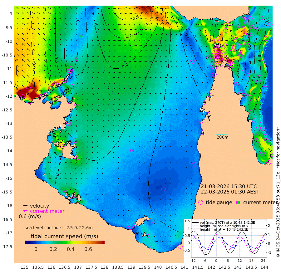 25cm/s 89T +3cm/s rms + 7cm/s -42T. ARA-GOC87 57m 9cm/s 129T +3cm/s rms + 2cm/s -2T. ARA-GOC87 60m 21cm/s 71T +2cm/s rms + 3cm/s 61T. ARA-GOC87 47m 109cm Daru 103cm Bobo Island 38cm Meer Island Barge 55cm Bramble Cay 86cm Unnamed Cay 83cm Pearce Cay 75cm Stephens Island 79cm Merrie England Shoals 98cm Mutacomal Reef 76cm Darnley Island Barge 34cm East Cay 93cm Yorke Island Barge 84cm Rennel Island 95cm Aureed Island 99cm Dungeness Reef 118cm Zagai Island 100cm Yam Island 91cm Dauan Island 91cm Saibai Island 105cm Phipi Reef 117cm Warrior Reef - West 52cm Mabuiag Island Barge 84cm Half Way Island 106cm Coconut Island 90cm Dugong Islet 99cm Poll Island 96cm Kirkcaldie Reef 101cm Suarji Island 103cm Sue Islet -47cm Hawkesbury Island 81cm Alert Patches 84cm Twin Island -12cm Badu Island 93cm St Pauls (Moa Island) 0cm Kubin (Moa Island) 53cm Ince Point 33cm Thursday Island 39cm Nardana Patches 6cm Turtle Head -6cm Round Island -44cm Goods Island -70cm Booby Island -70cm White Rocks Area -55cm Carpentaria 72cm Papou Point -44cm Bampfield Head -57cm Crab Island -68cm Red Wallis Island -21cm Packe Island 102cm Harrington Reef -41cm Herald Camp 35cm Sharp Point -5cm Red Island Point 52cm Possession Island 83cm Alpha Rock 94cm Frederick Point 106cm Wyborn Reef Light 107cm Tetley Island 40cm Triangle Reef 102cm Turtle Head Island 31cm Maclennan Cay 12cm Raine Island 80cm Mcsweeny Reef 72cm Collette Reef 41cm Shadwell Reef 77cm Hannibal Island 52cm Round Point -57cm Vrilya Point 44cm Cape Grenville 40cm Hicks Island 36cm Sir Charles Hardy Island 15cm Harvey Island 27cm Kay Reef 19cm Rocky Island 9cm Chapman Island 9cm Ham Reef 19cm Jubilee Reef 22cm Night Island 8cm Unnamed Reef No. 3 19cm Morris Island 18cm 1st 3 Mile Opening 18cm Creech Reef 20cm Fife Island 13cm Eden Reef 17cm Stanley Island 13cm Normanby River -88cm Yabooma Island -71cm Hutchison River -77cm Elcho Island -85cm North West Crocodile Island -9cm Cape Wessel -39cm Stevens Island 55cm Guluwuru Island -46cm Hopeful Bay -21cm Auster Point -24cm Two Island Bay -15cm Cadell Strait 186cm Mallison Island 39cm Melville Bay (Gove Harbour) 43cm Truant Island 43cm Cape Arnhem 32cm Cape Grey 29cm Hawk Island 14cm Milner Bay (Groote Eylandt) 3cm Cape Beatrice -2cm West Island 3cm Centre Island 16cm Mornington Island 7cm West Wellesley Islands -1cm Bountiful Island -14cm Albert River Mouth 3cm Sweers Island -12cm Karumba 0cm Nassau River Offshore -2cm Christmas Creek -26cm Archer River -25cm Boyd Point -40cm Weipa (Humbug Point) -26cm Pennefather River -50cm Cullen Point